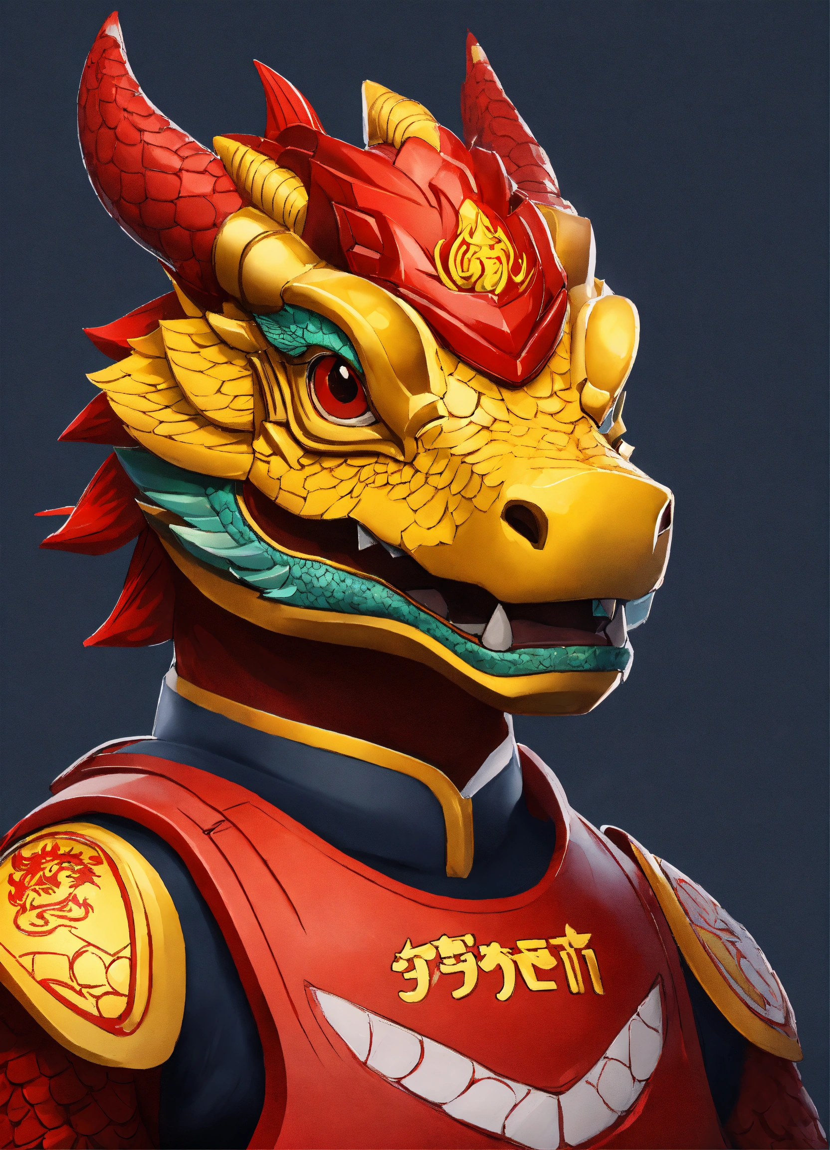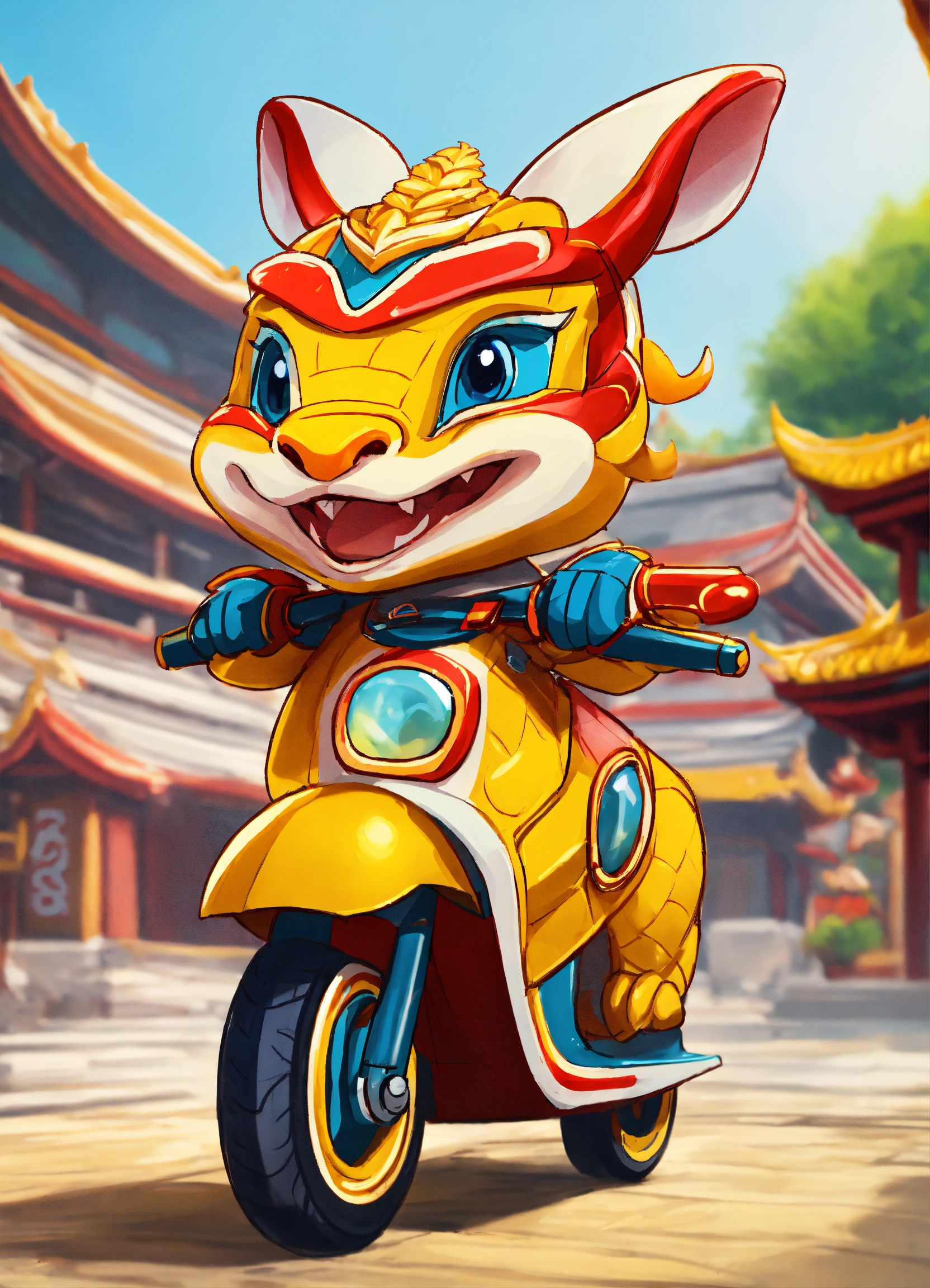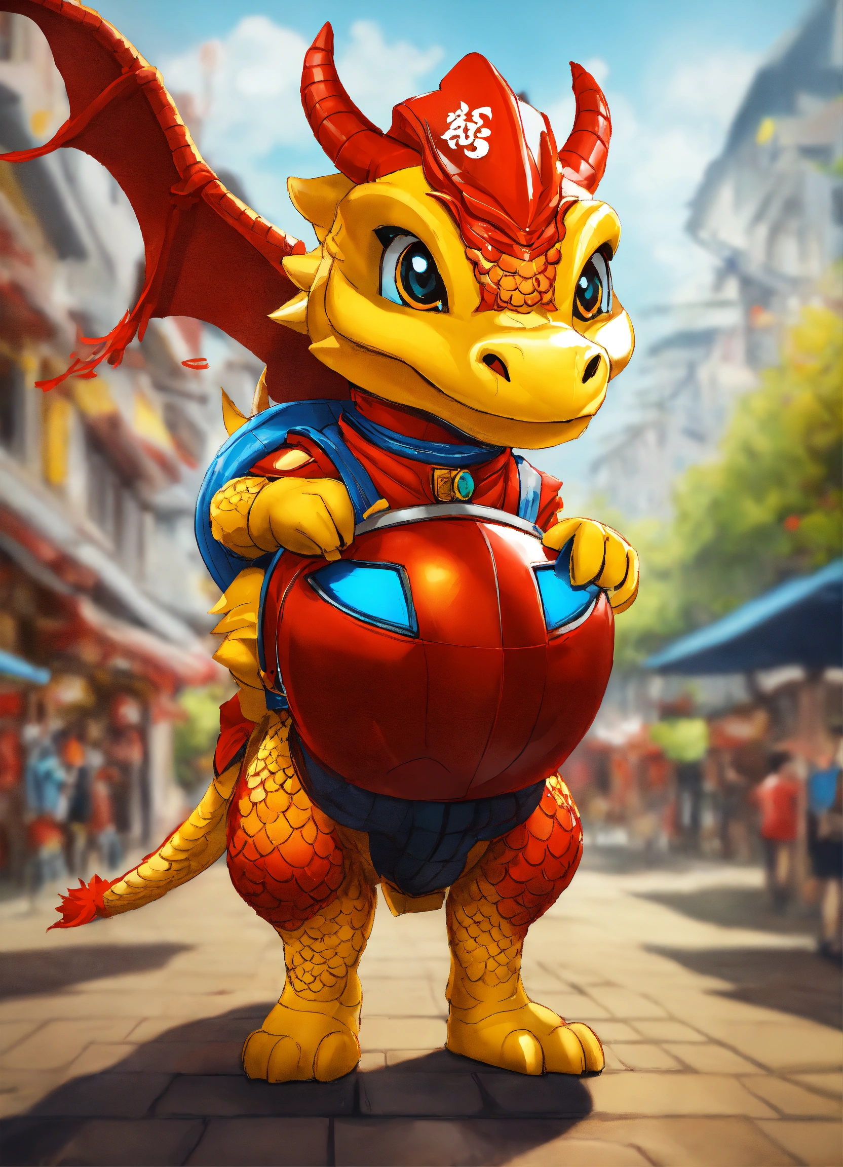 A mascot for scooter retail brand nam tien. it need to be logo style. the mascot characteristic is enegetic, refreshing. with the color of yellow and red. the mascot should be dragon. the dragon should wear uniform in red with a lotus logo on the left of the chest with a helmet