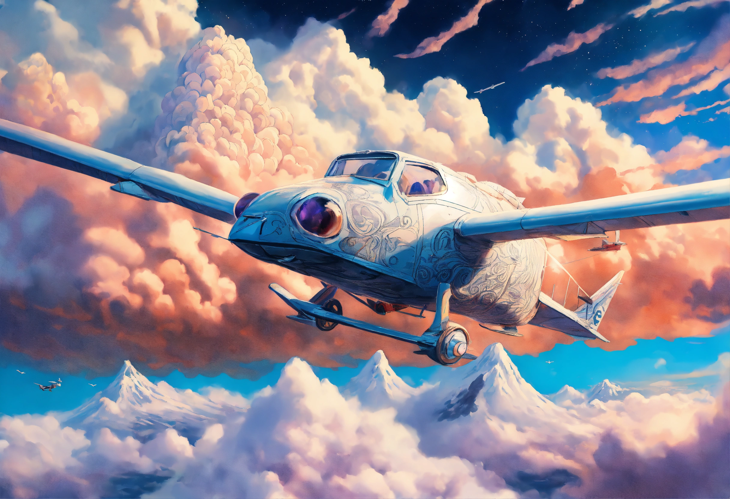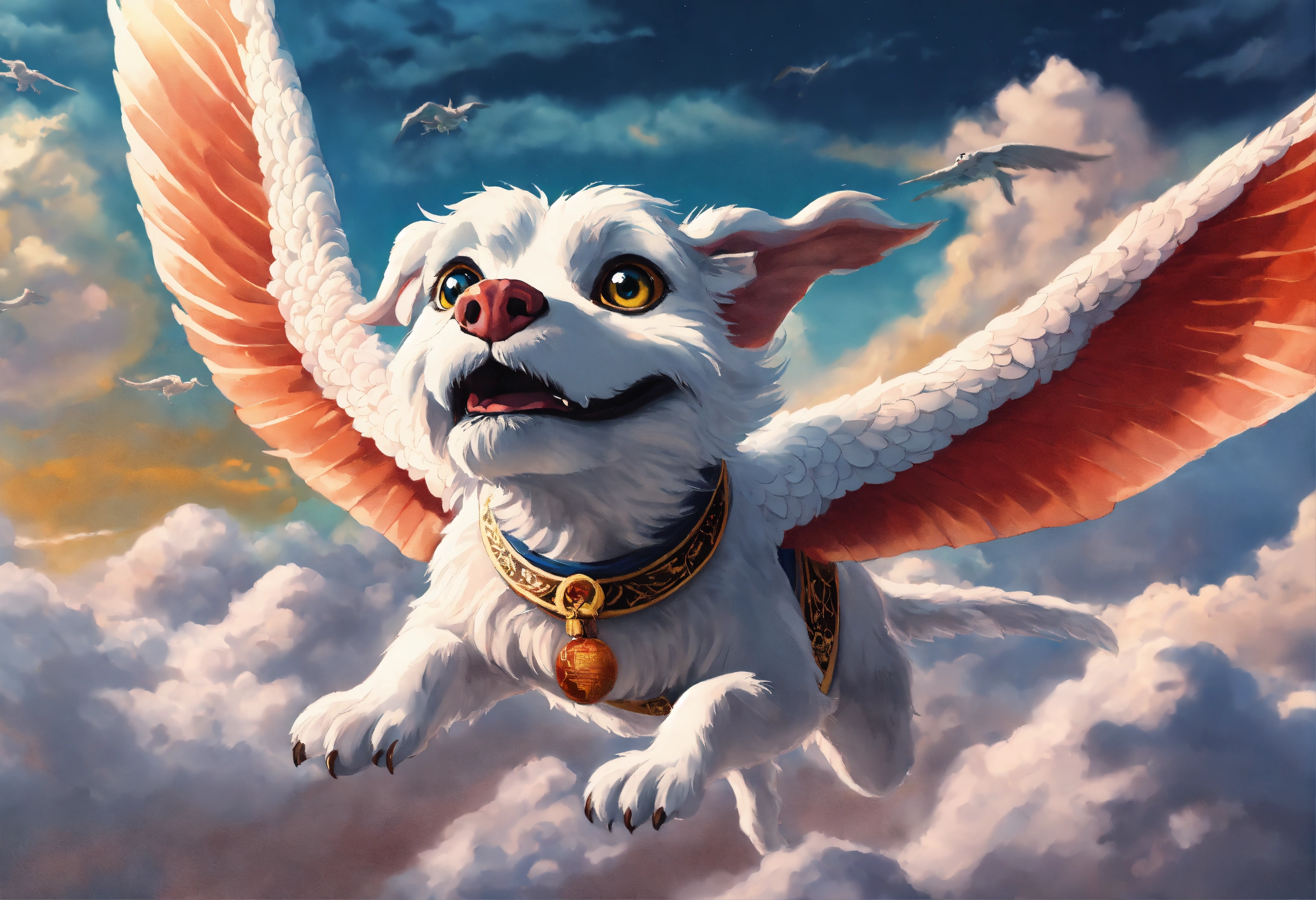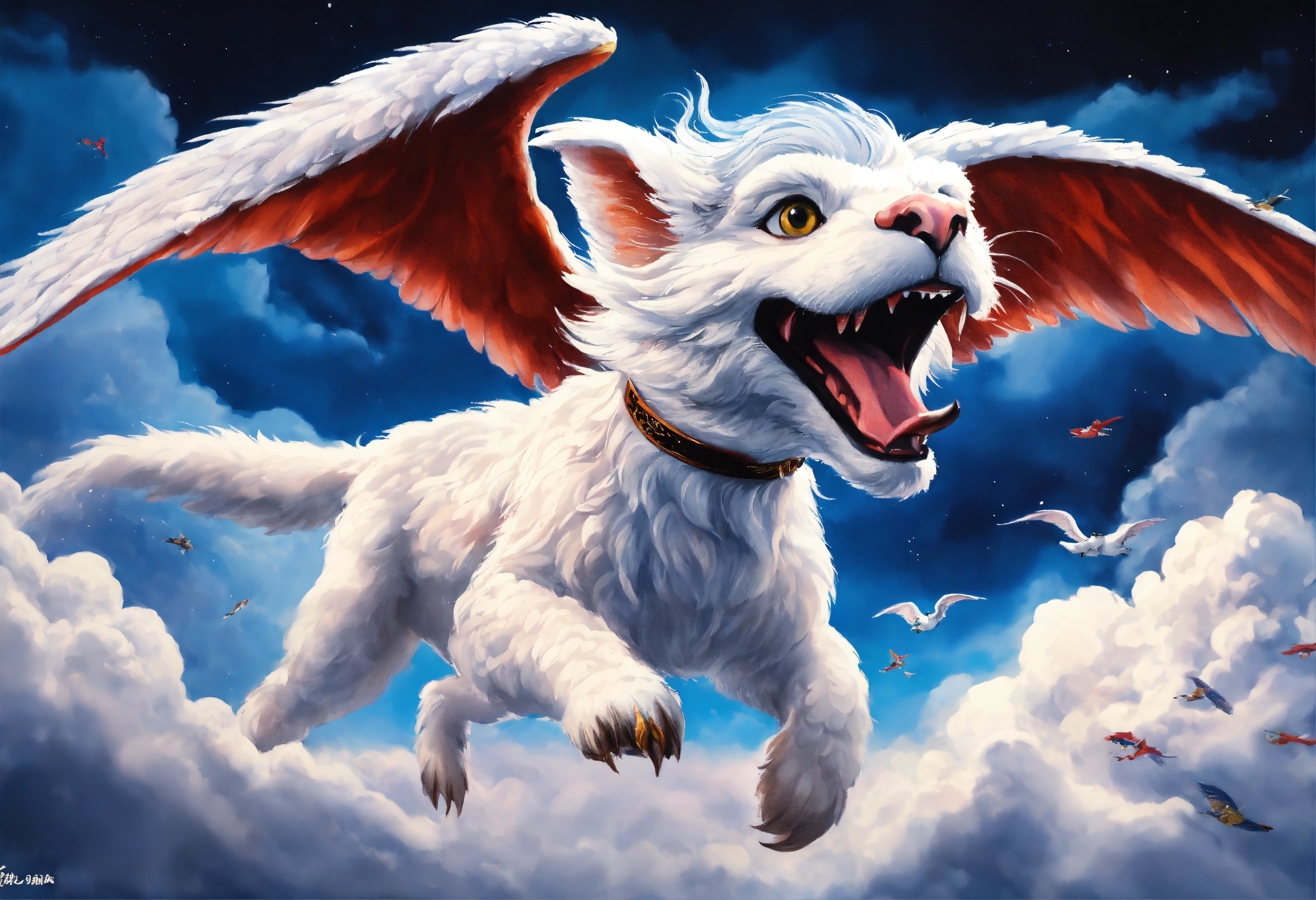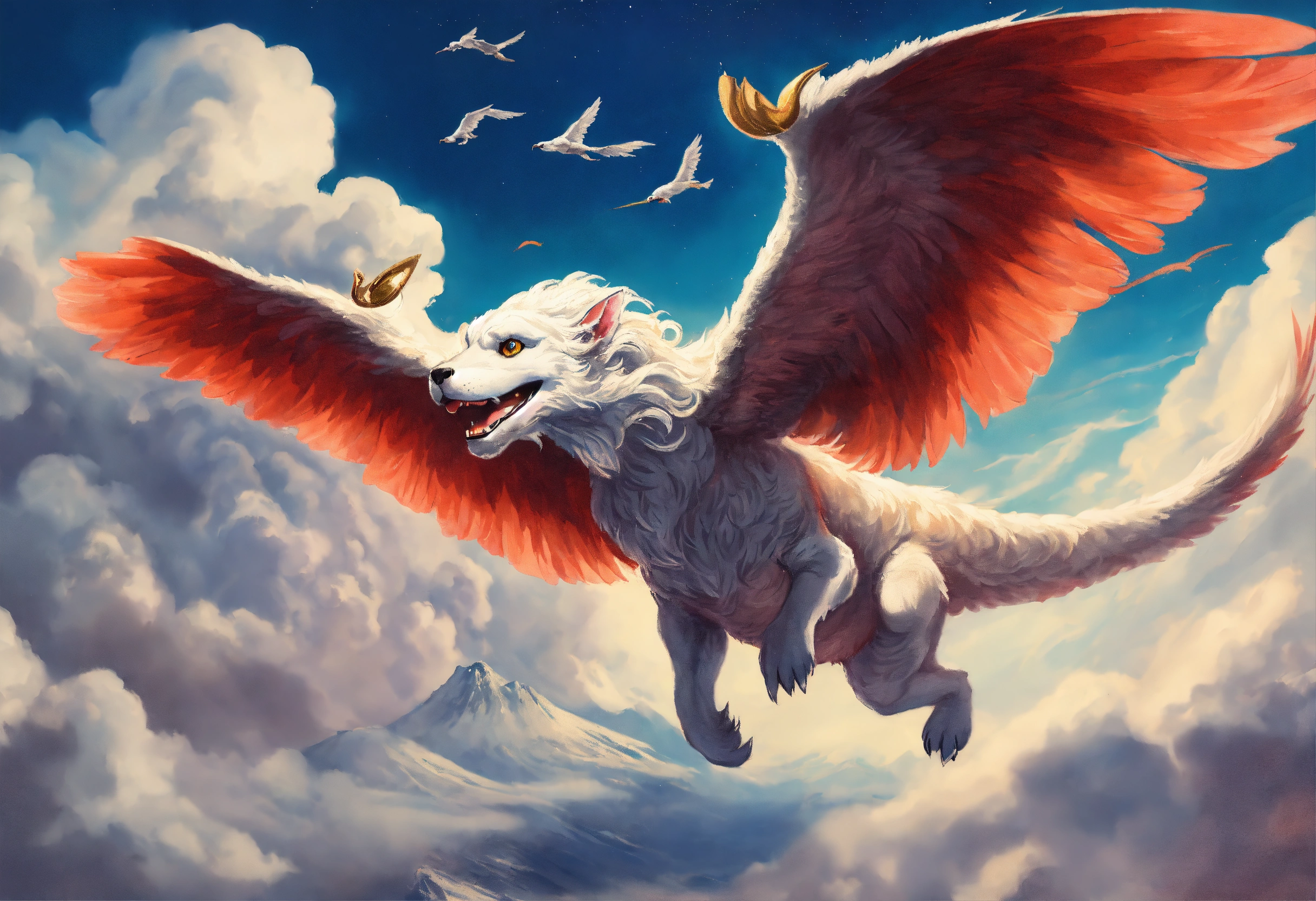 Falcor from the neverending story, flying through the clouds, in a traditional japanese style, art, 8k painting artwork.