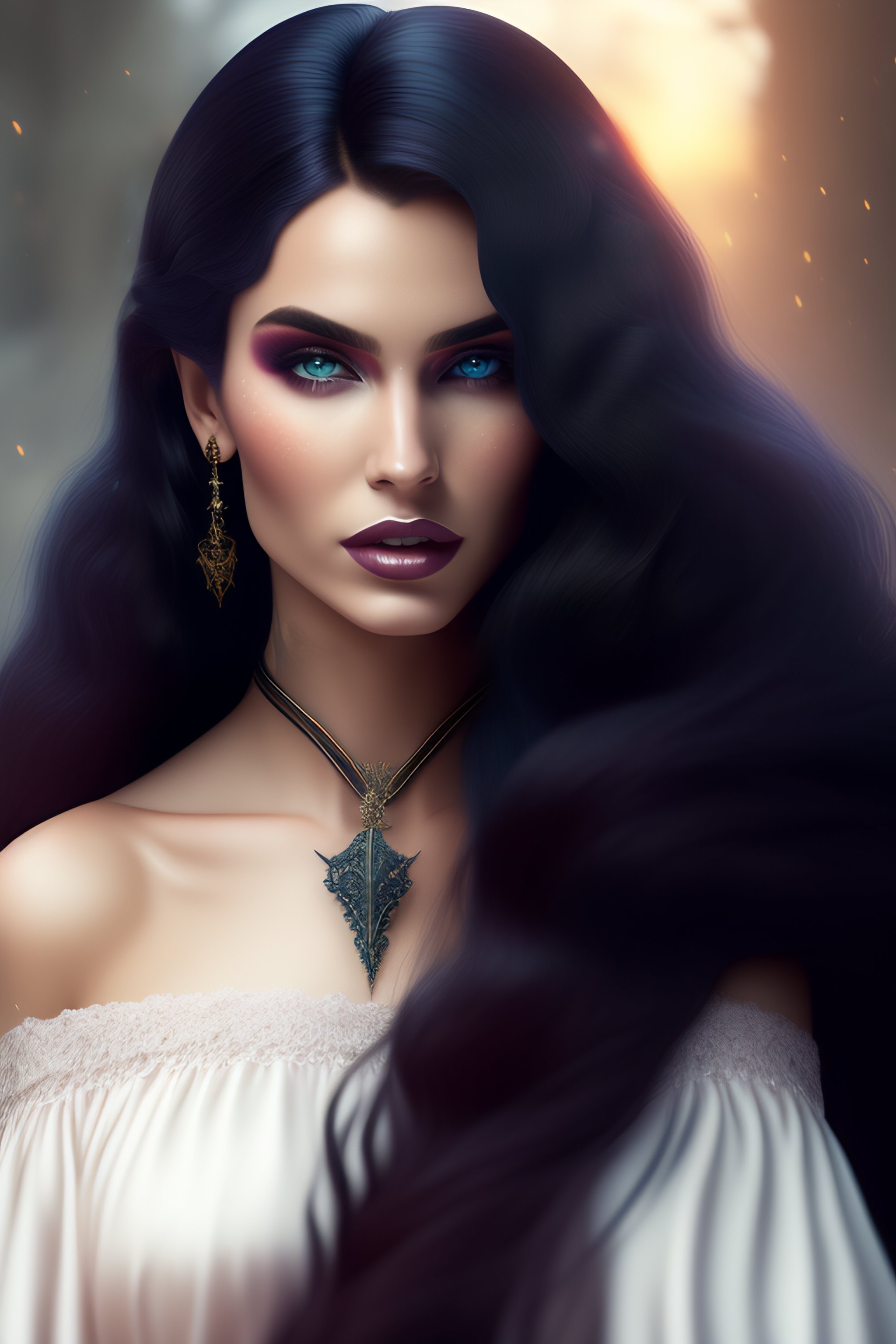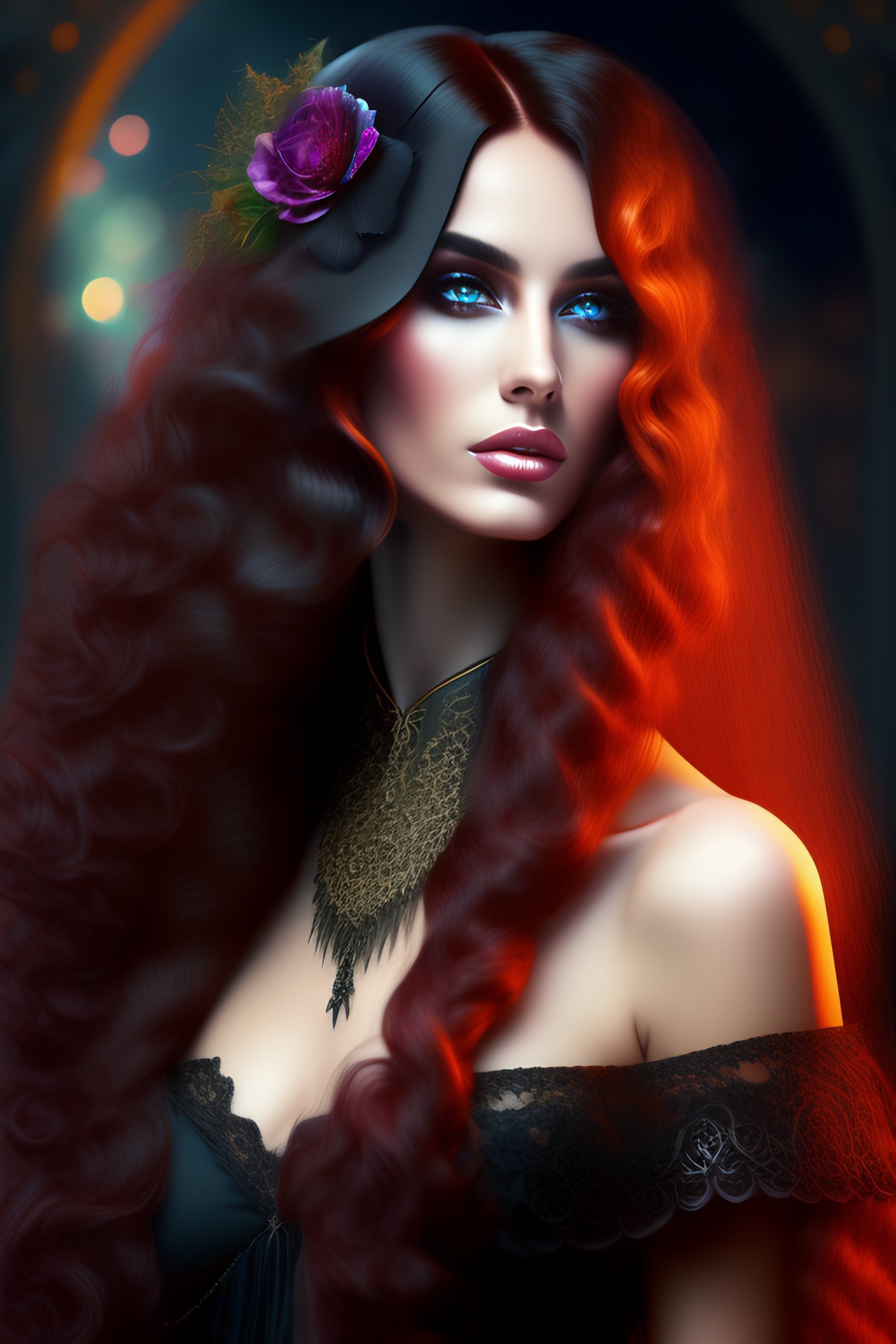 Gothic digital art with magic long hair