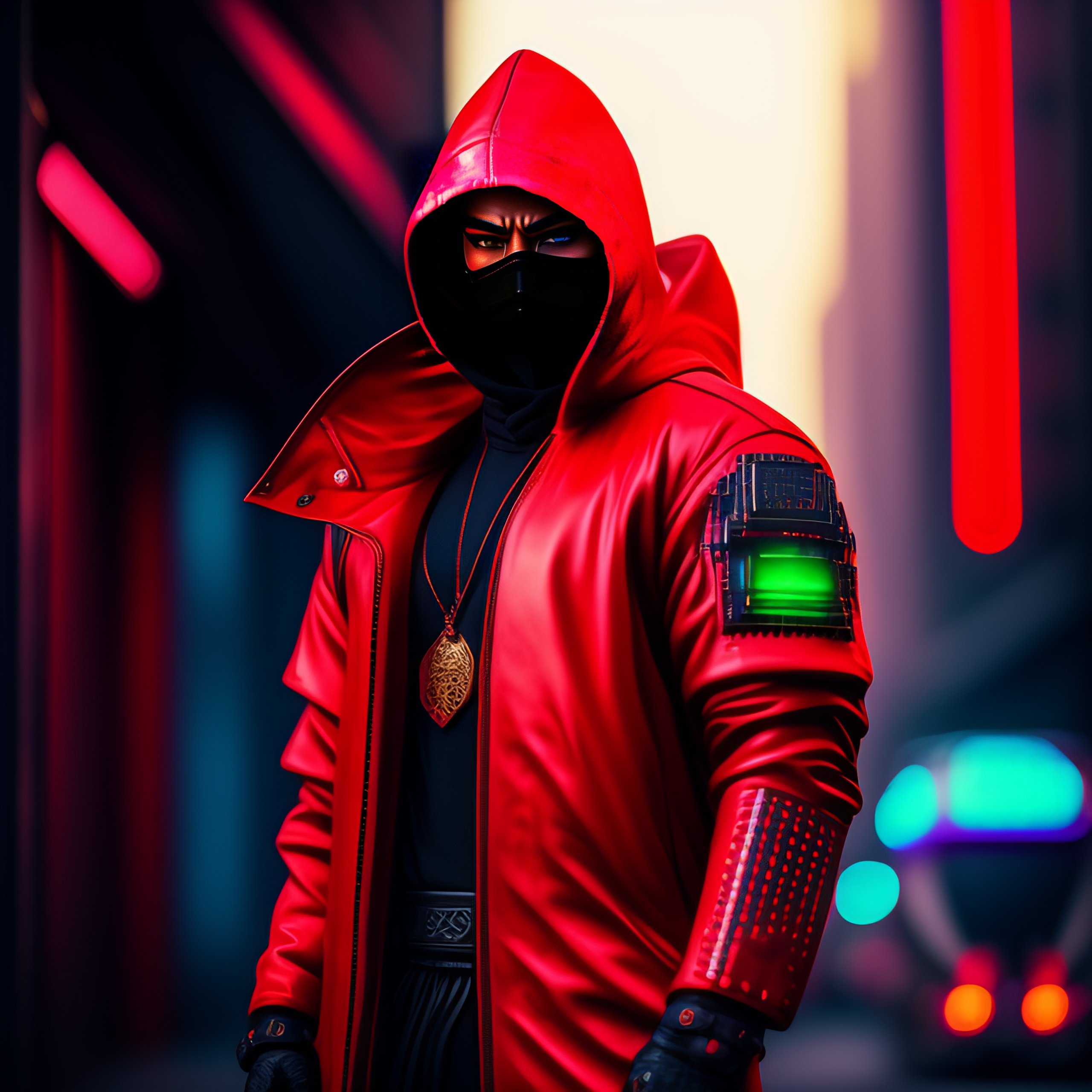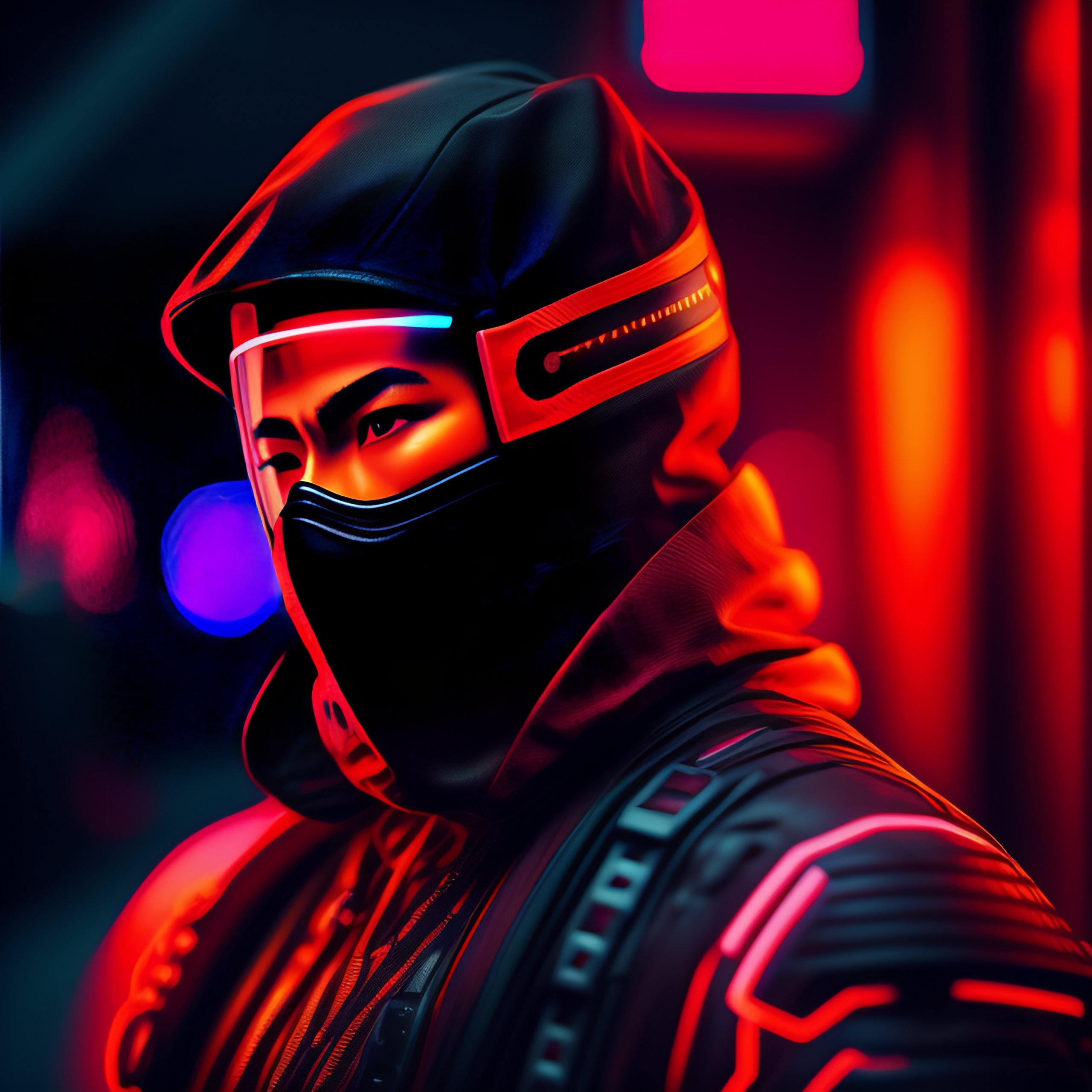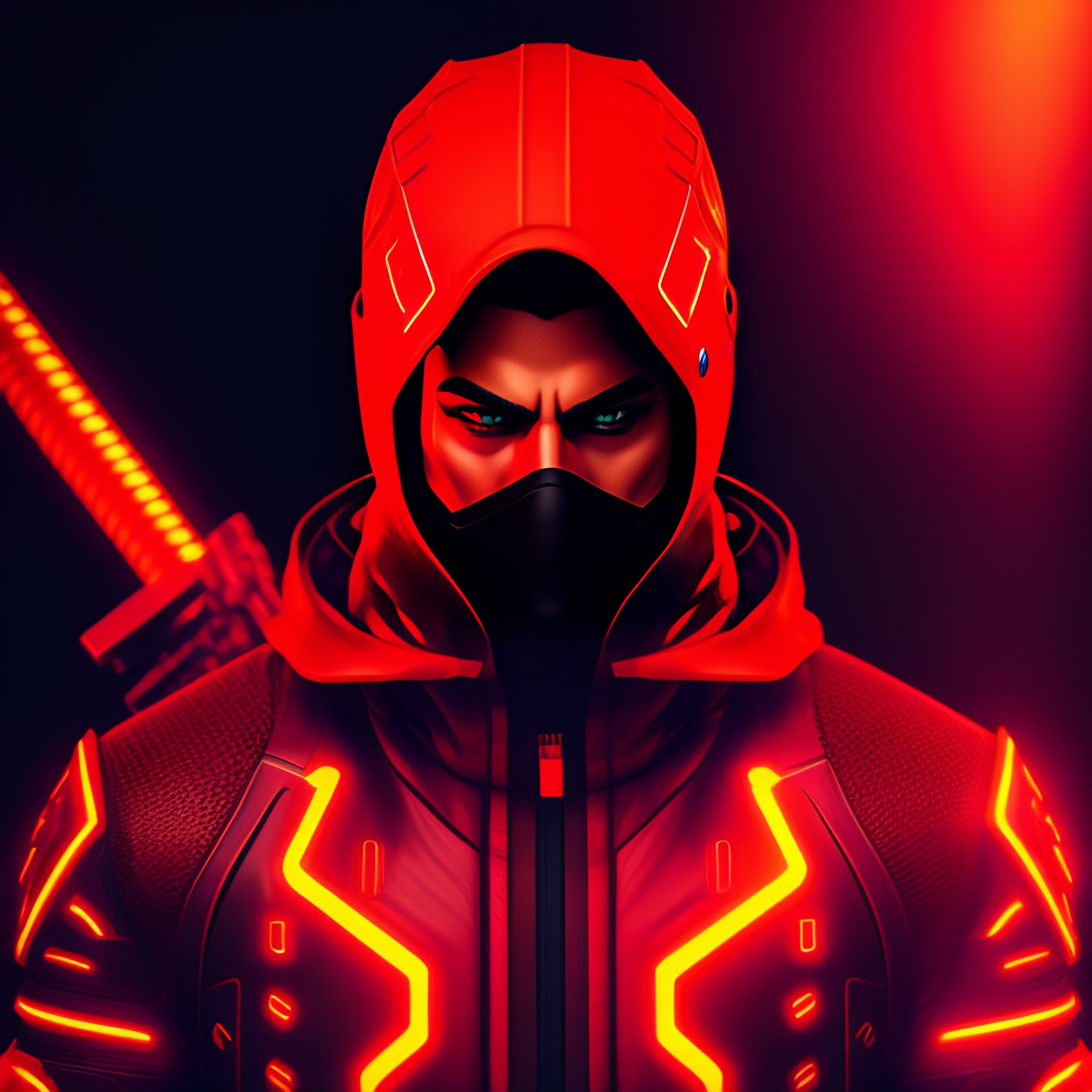 Awesome looking cyberpunk red male ninja 8-bit neon. ultra realistic