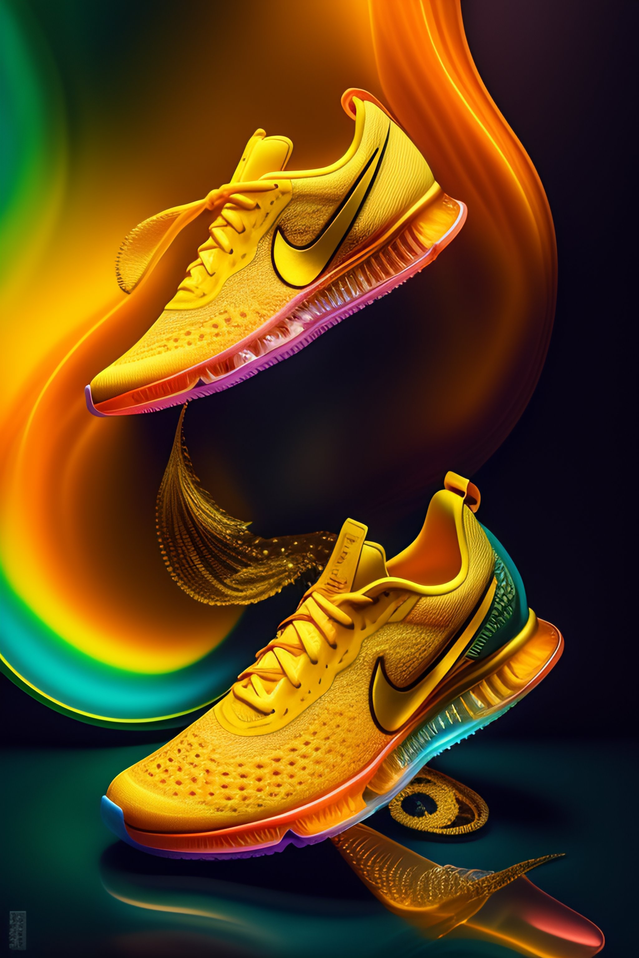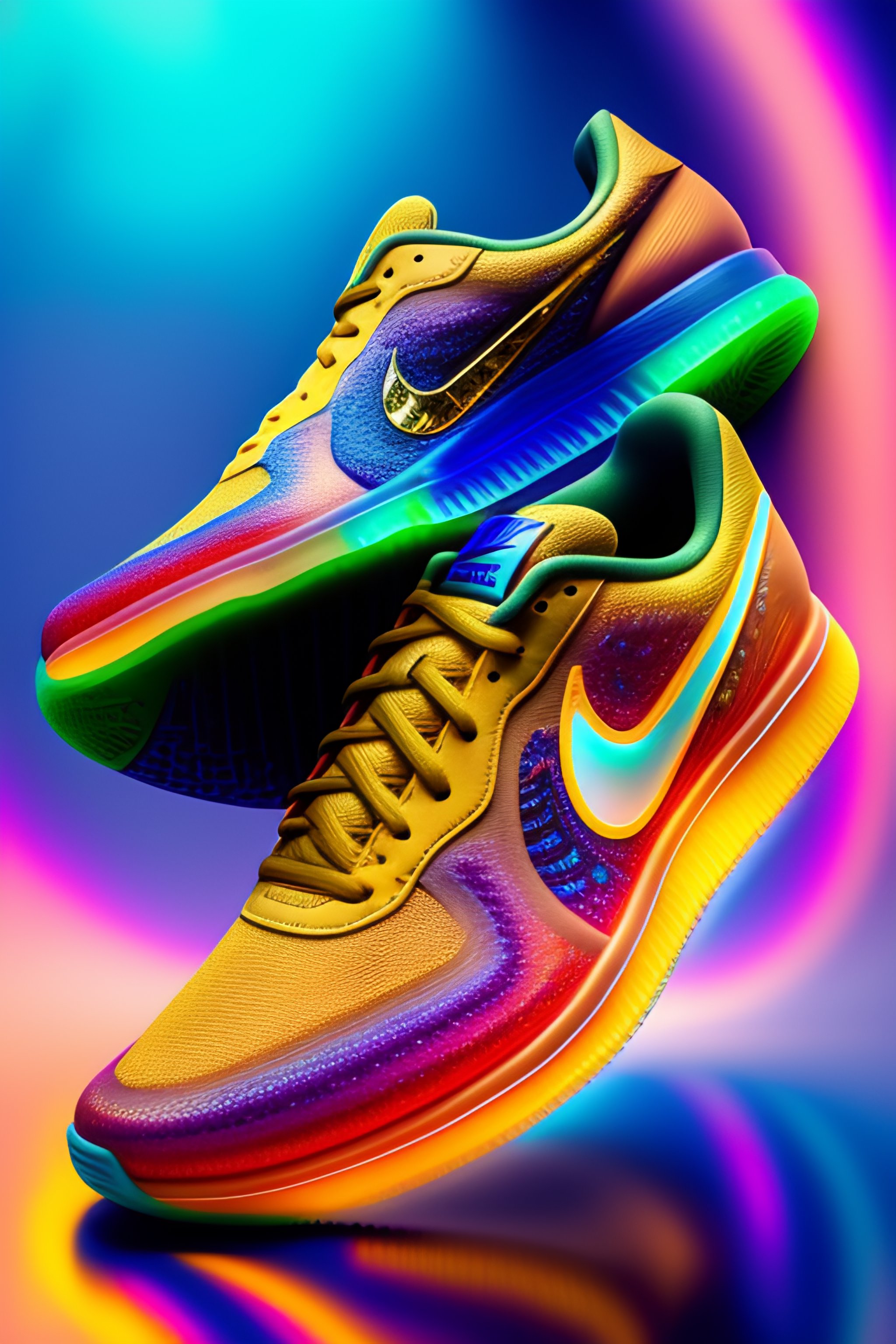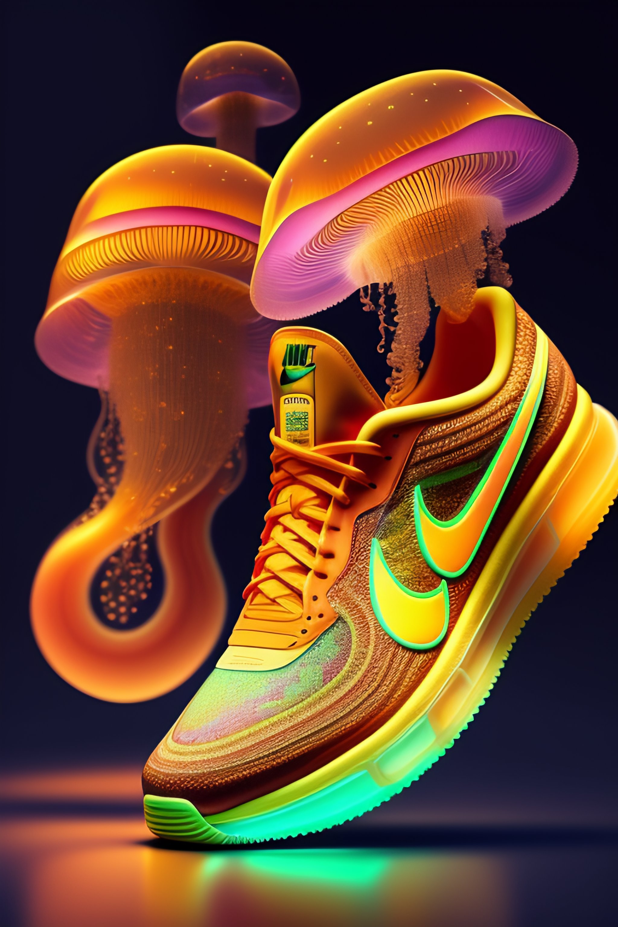 A stunning interpretation of nike sexy shoe sneaker, made of jellyfish, advertsiement, solarpunk, highly detailed and intricate, golden ratio, very colorful, hypermaximalist, ornate, luxury