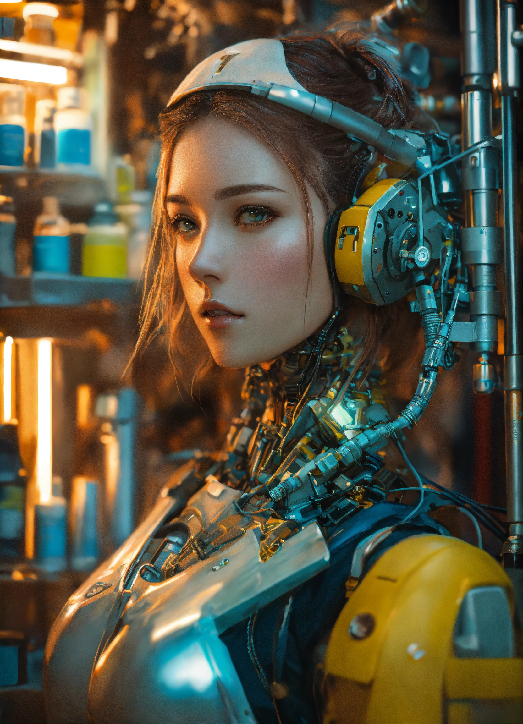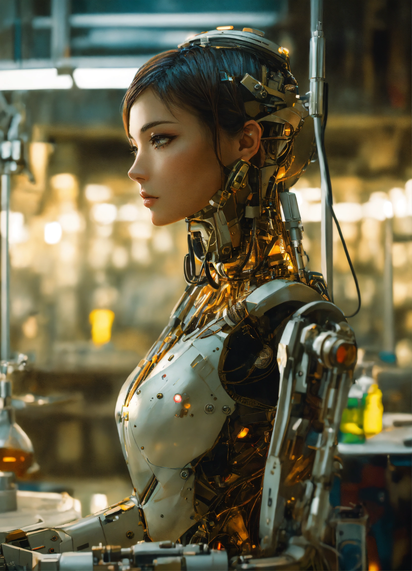 Cyberpunk, sci-fi, fantasy, kodak portra 400, 8k, soft light, volumetric lighting, highly detailed, britt marling style 3/4, portrait photo of a beautiful cyborg robot girl in a chemical laboratory + face, face is the most beautiful female star in asia, intricate, elegant, highly detailed, digital painting, artstation, concept art, smooth, sharp focus, illustration, art by otomo katsuhiro and shirō masamune and oshii mamoru