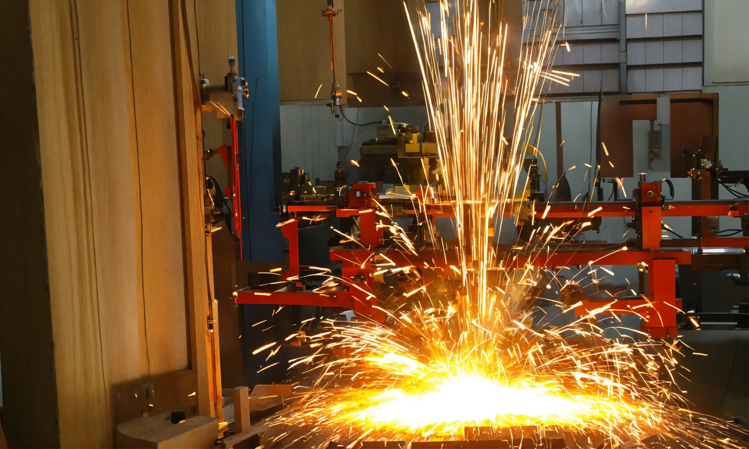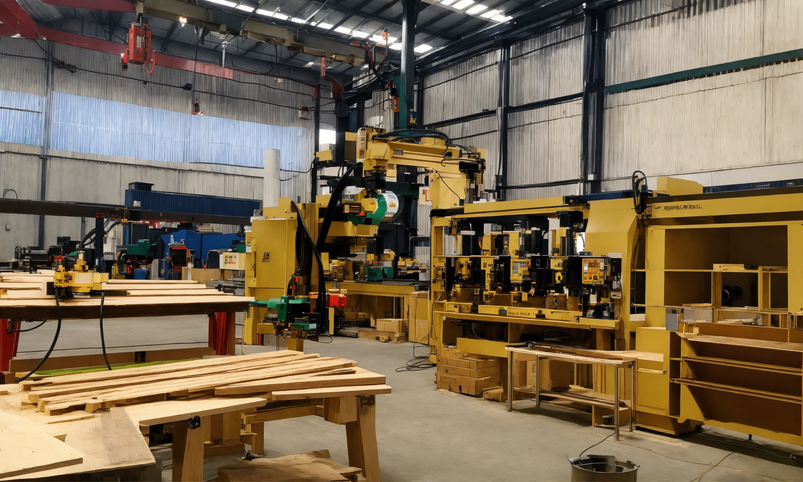 Create a picture of the new year's atmosphere production and cnc machine manufacturing and milling of wooden products