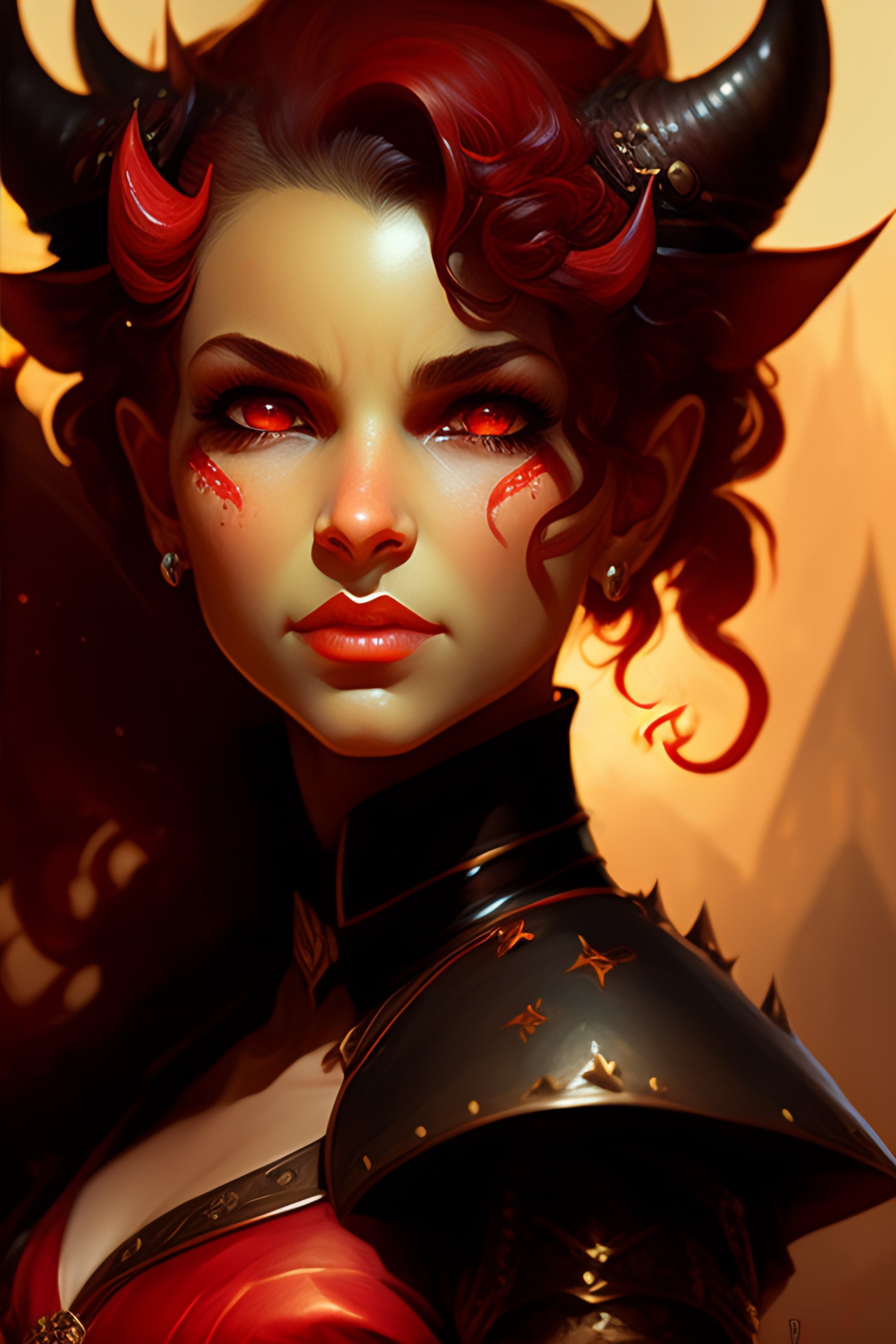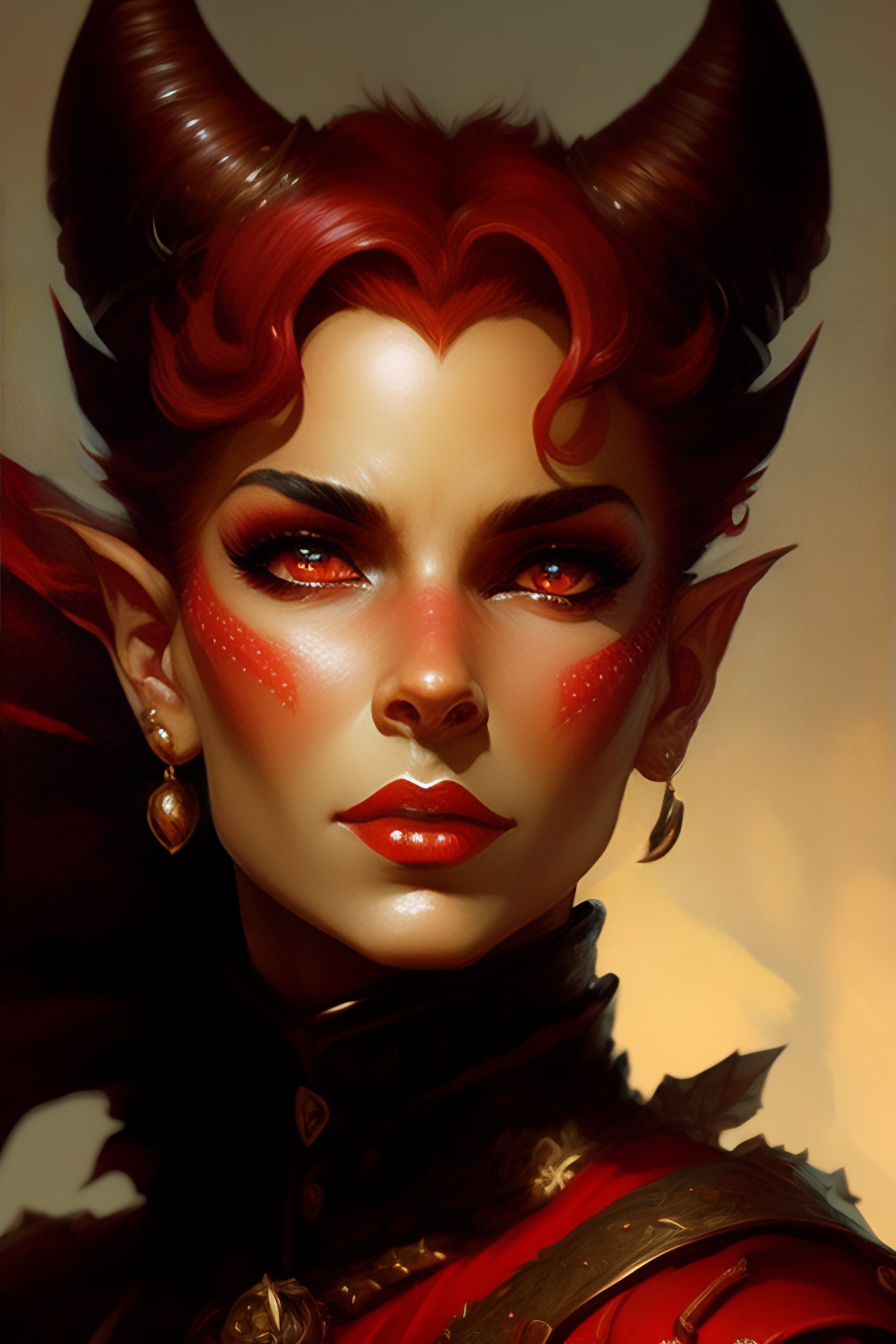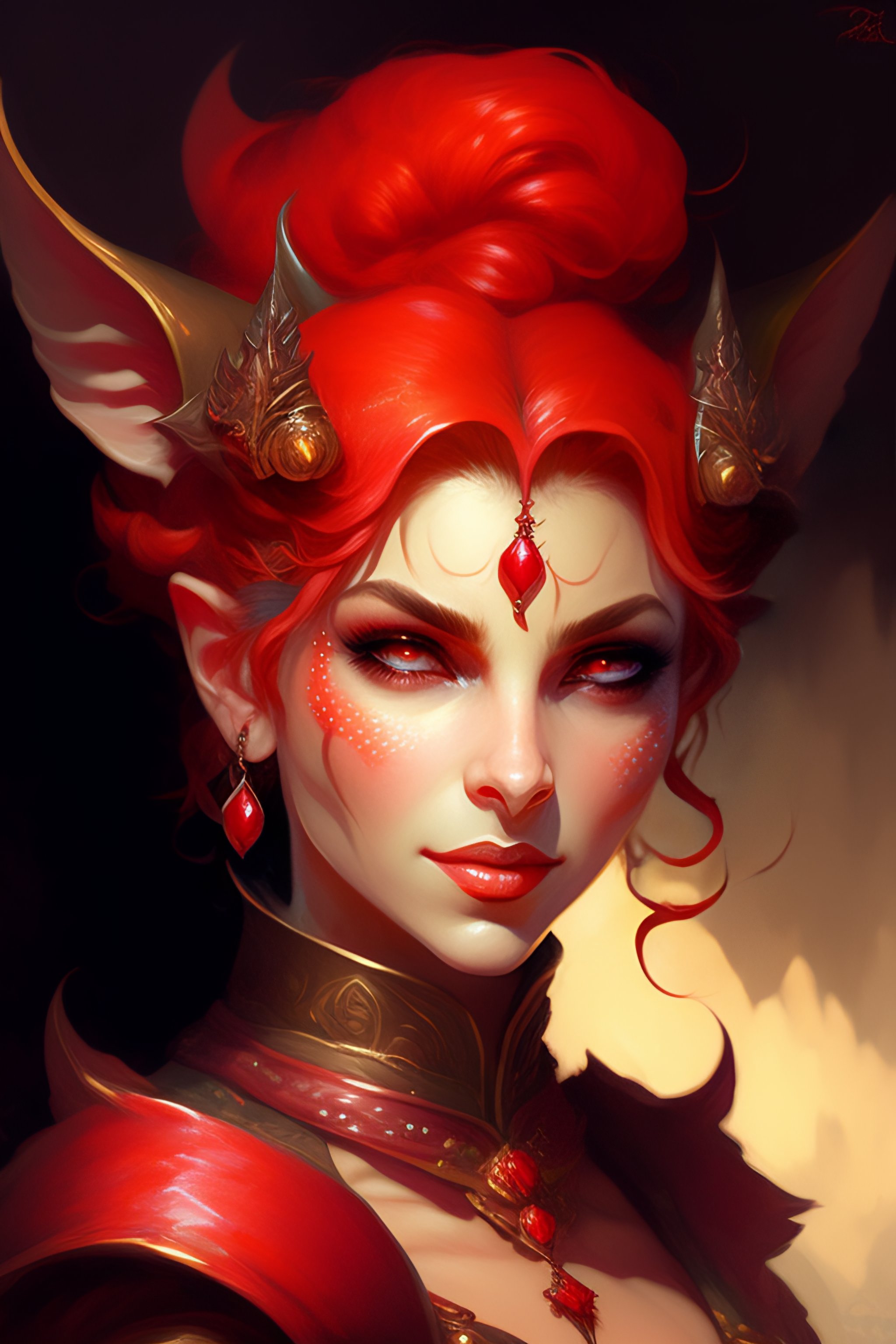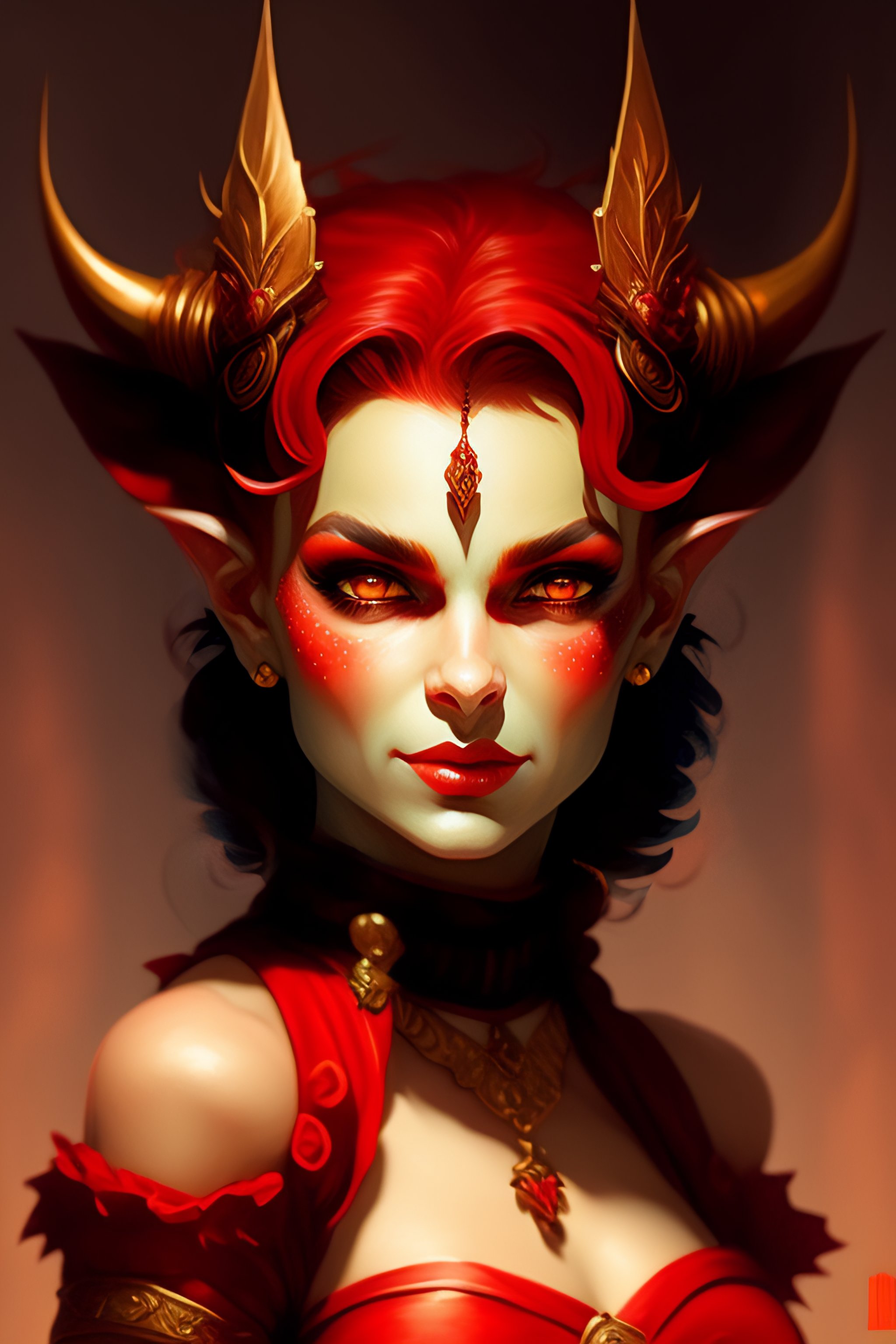 Up close portrait of a tiny devil imp, red skin, fantasy, 1940s, d&d, high detail, digital painting, concept art, sharp focus, illustration, art by greg rutkowski and alphonse mucha, darkest dungeon, ww2