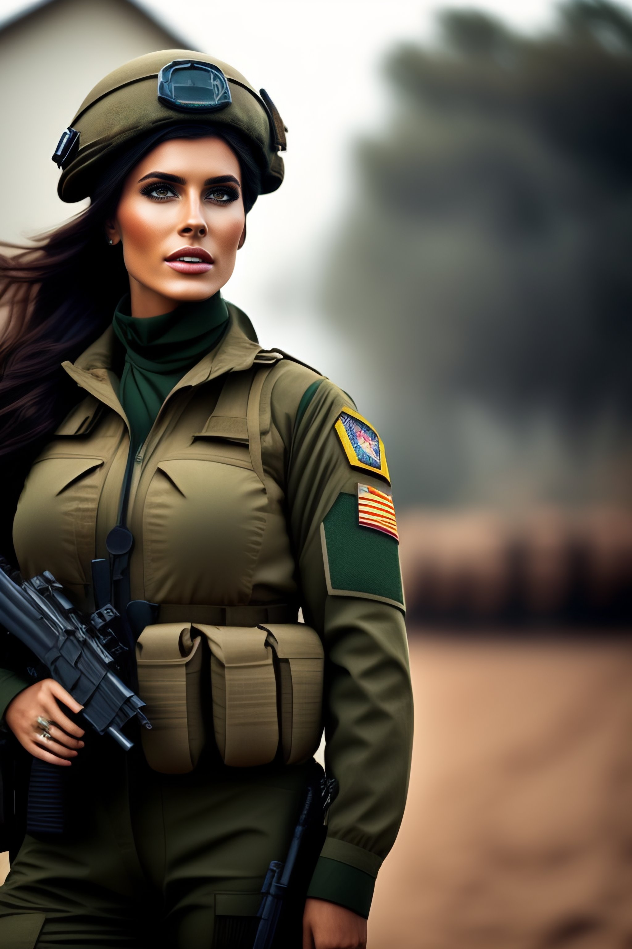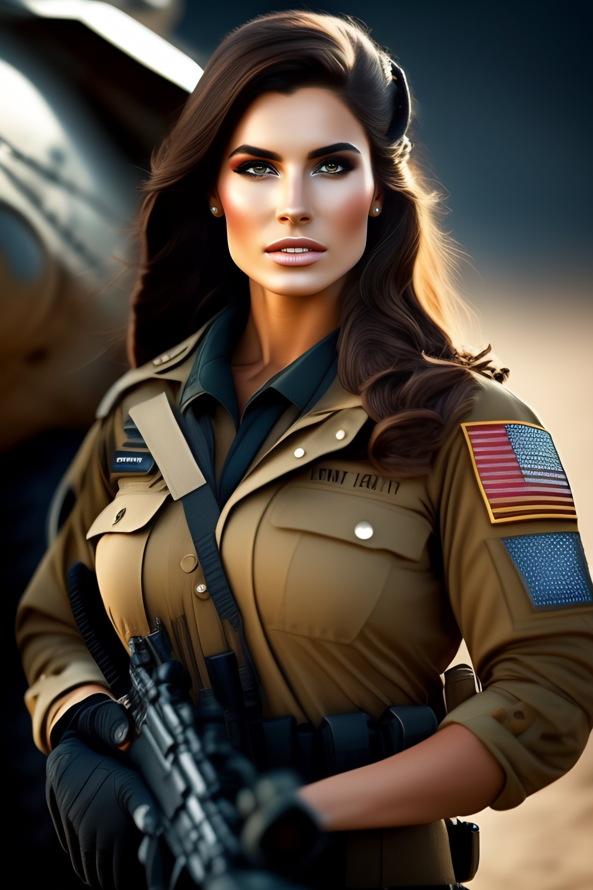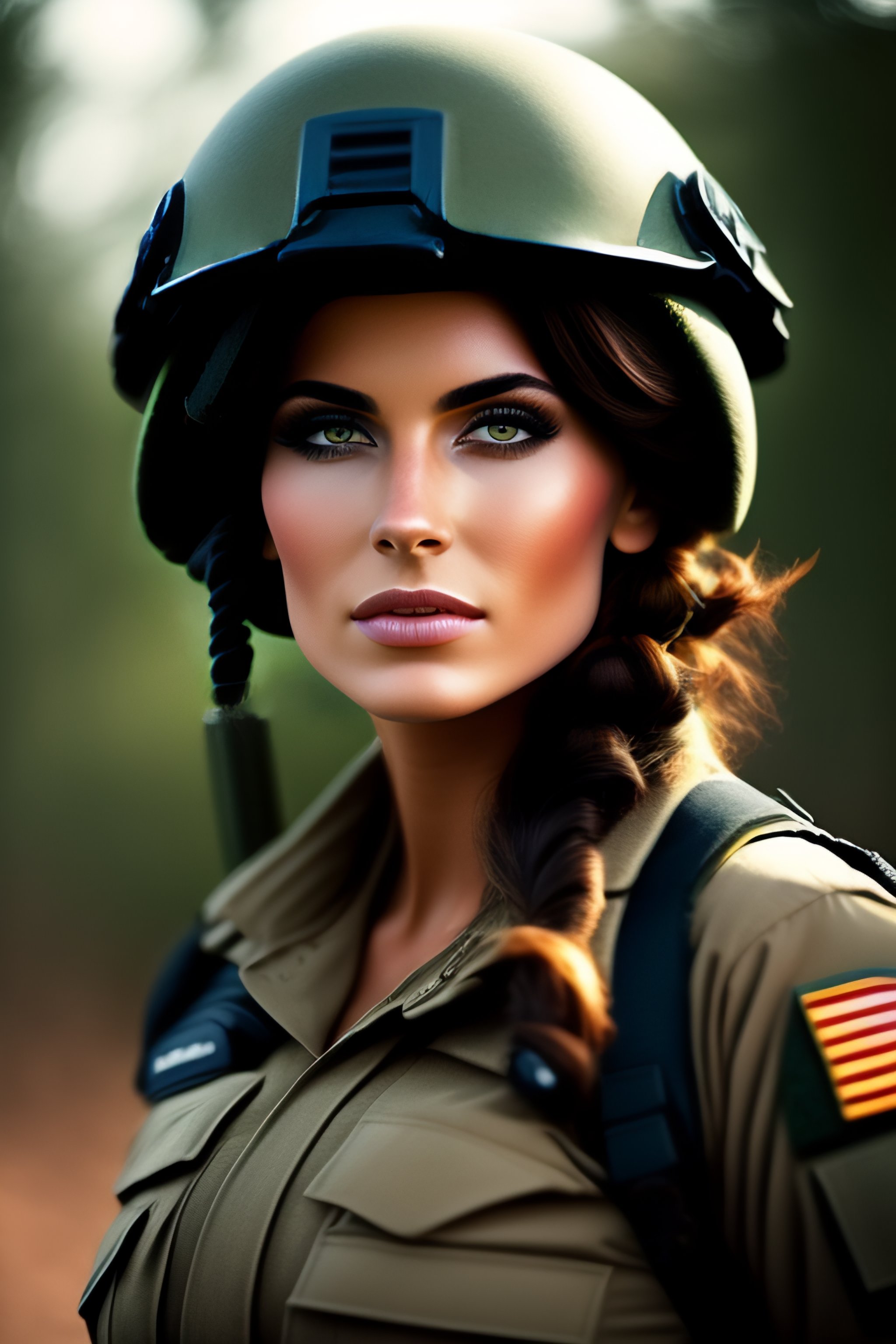Beautiful brunette girl dressed as a commando in combat