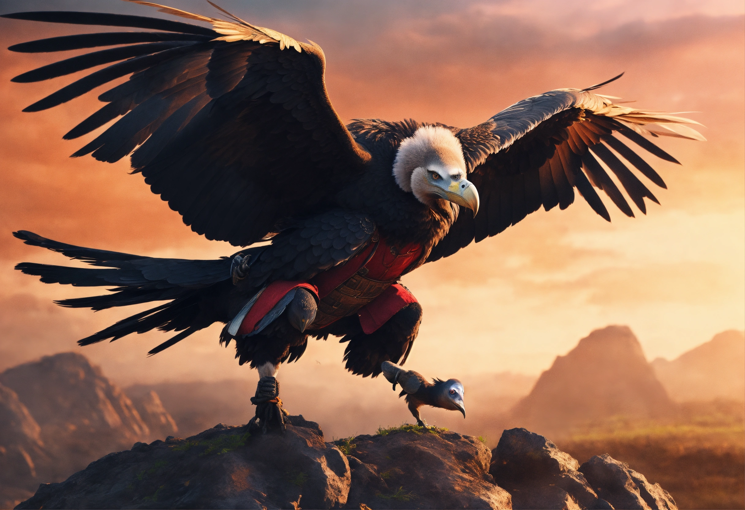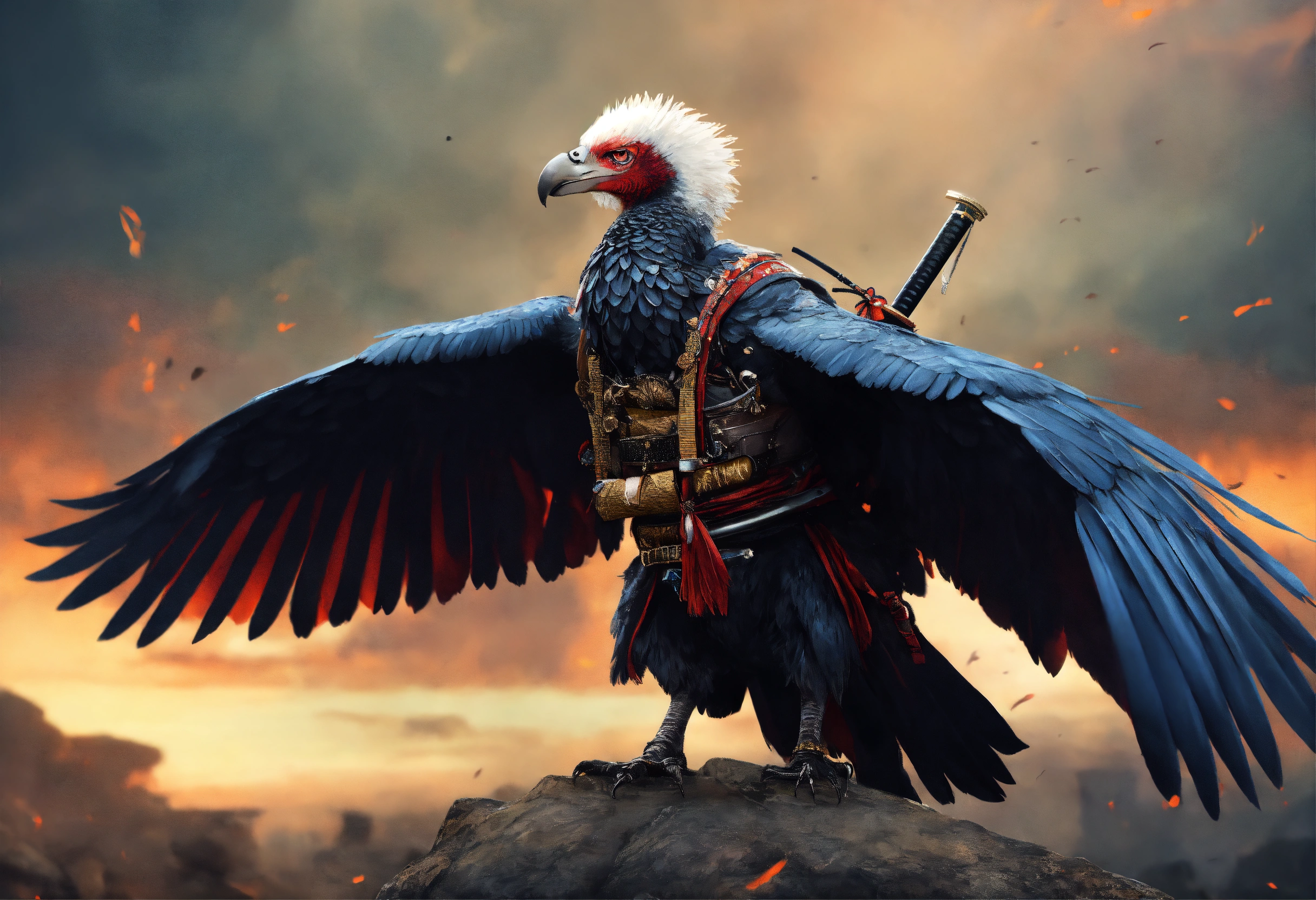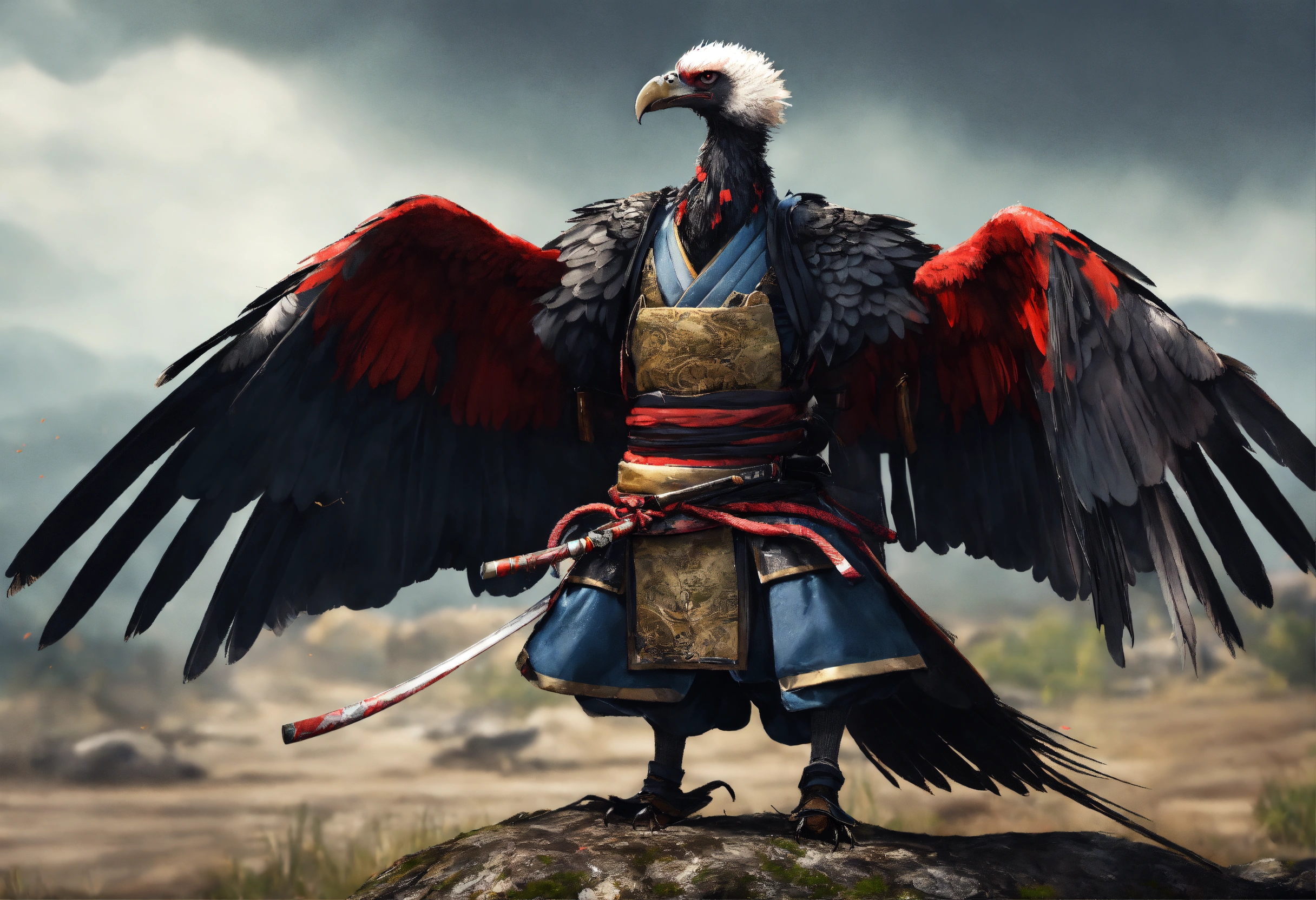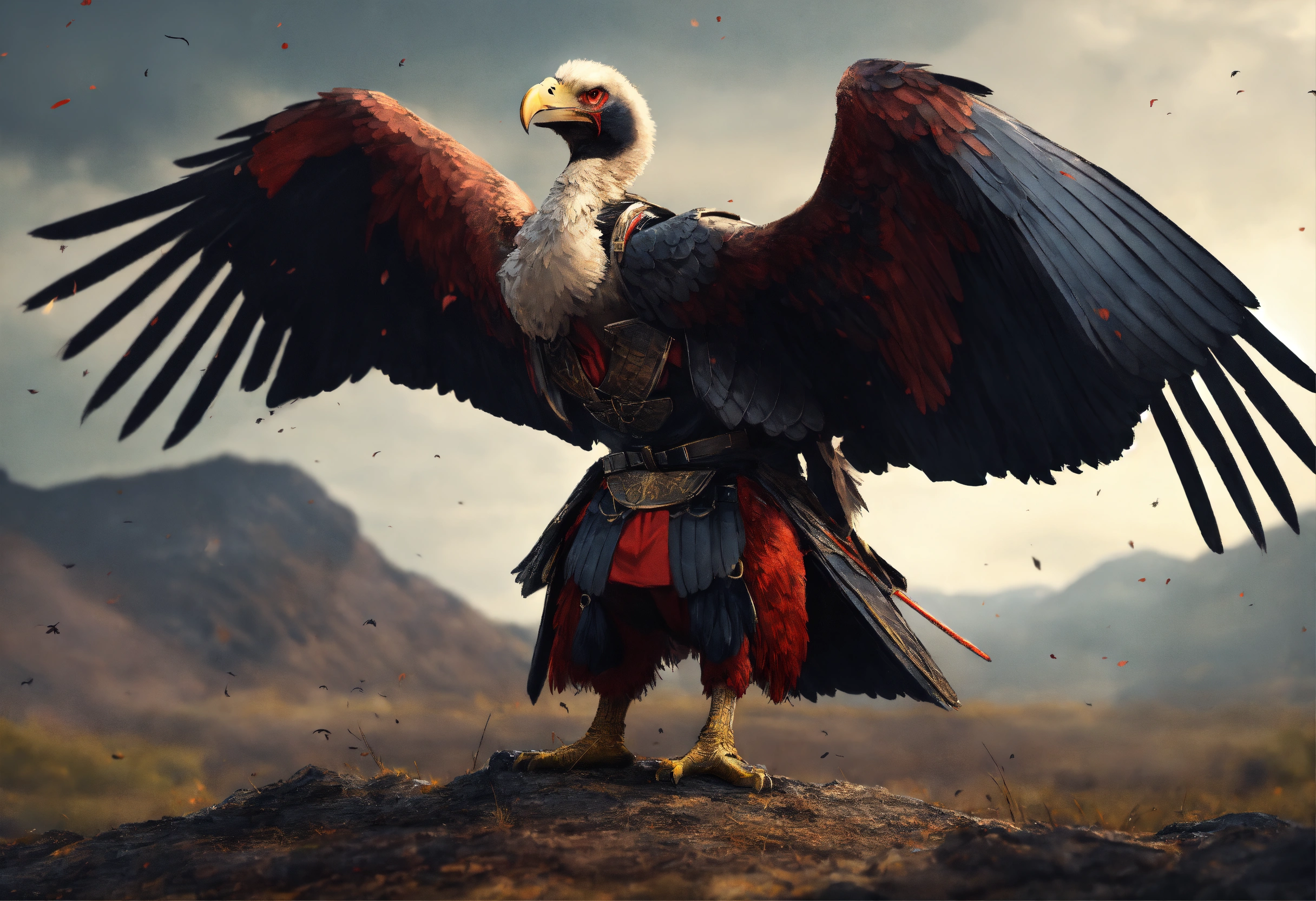 Vulture bird samurai with arms