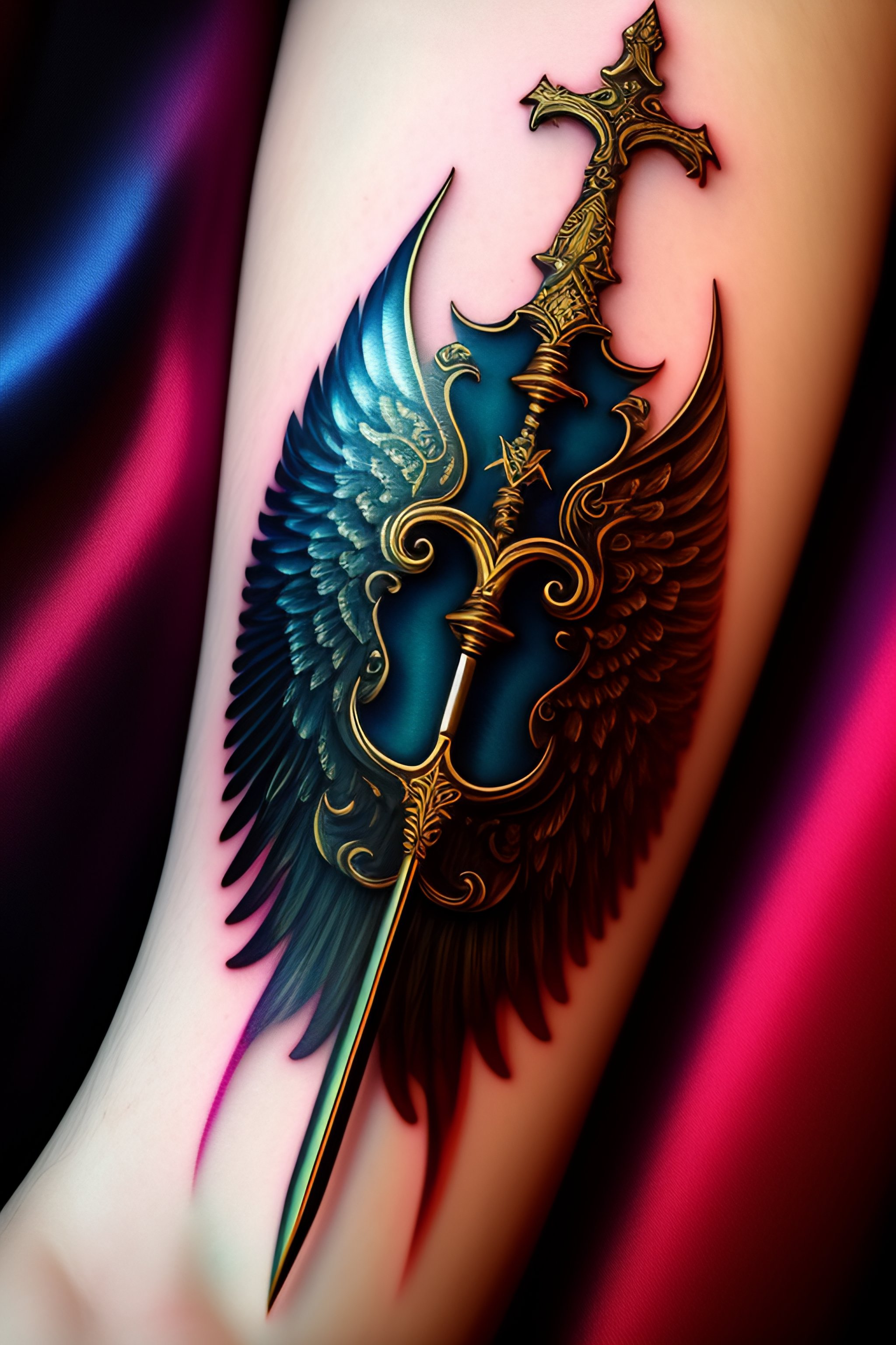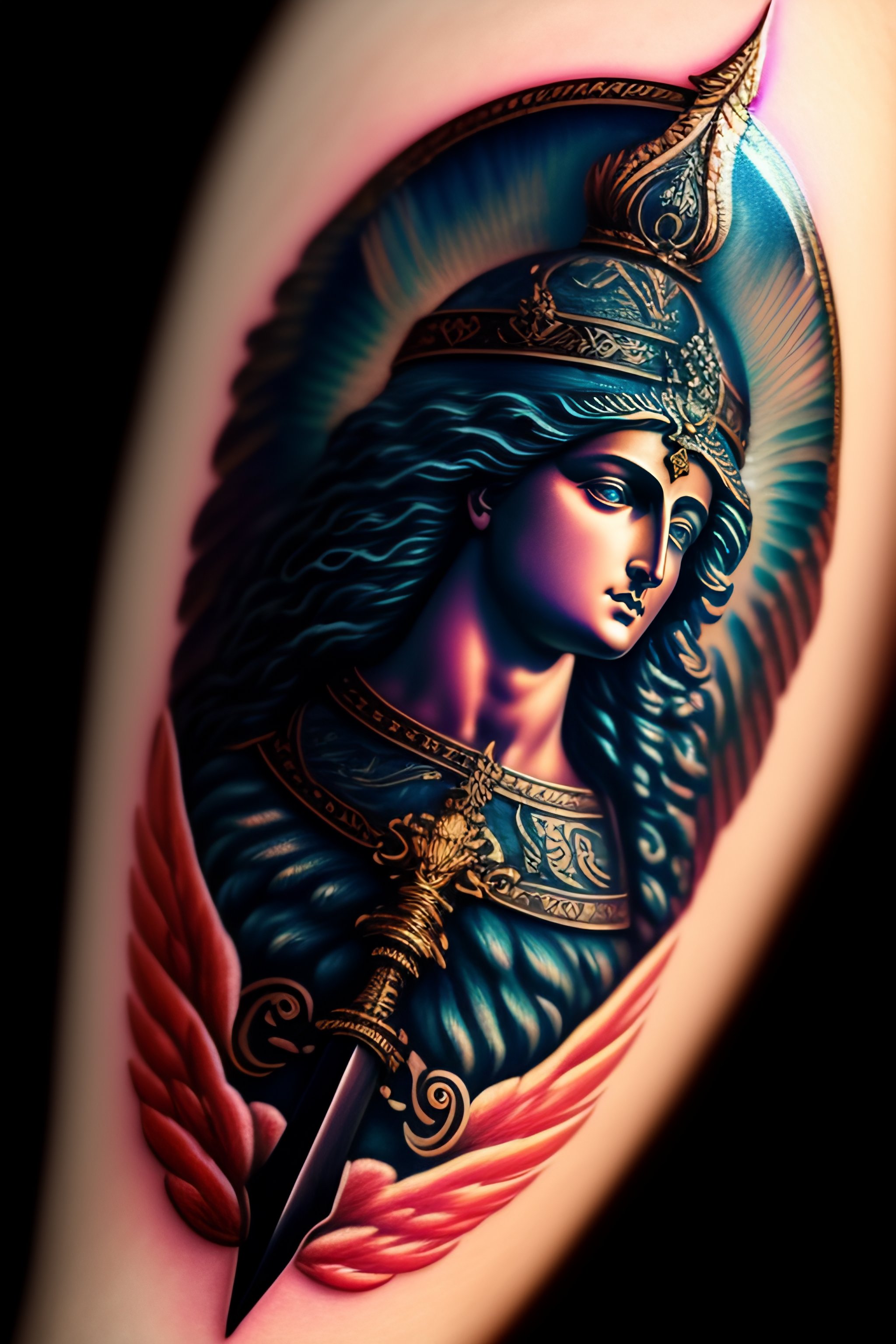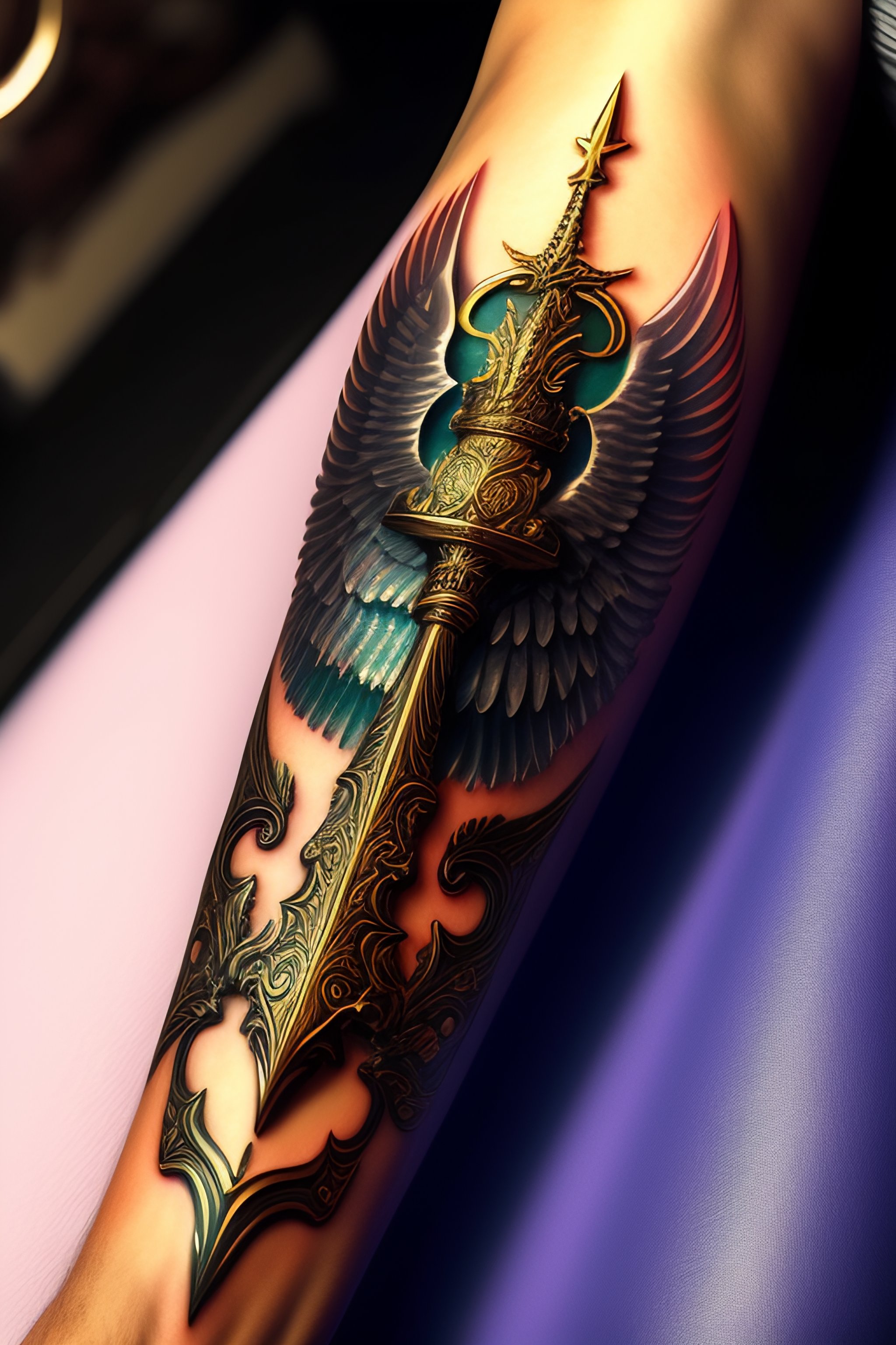 Archangel michael sword tattoo in the hand