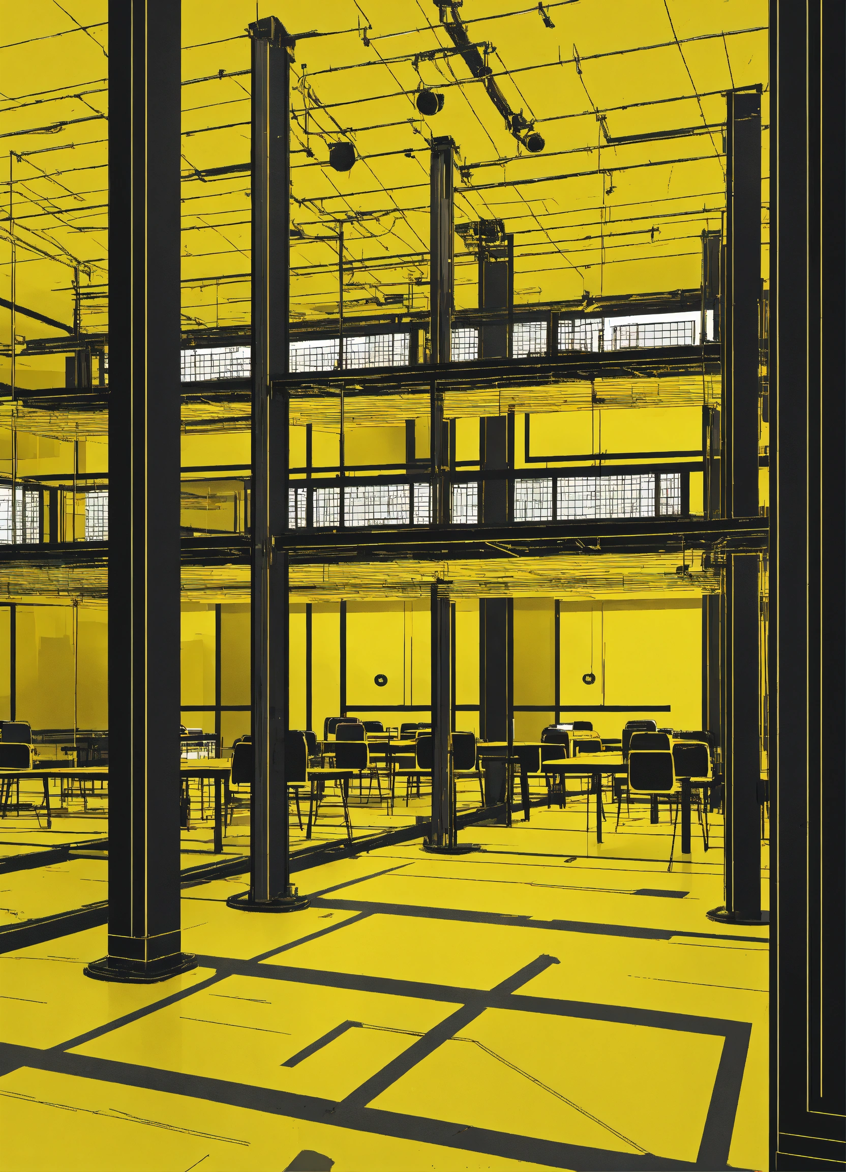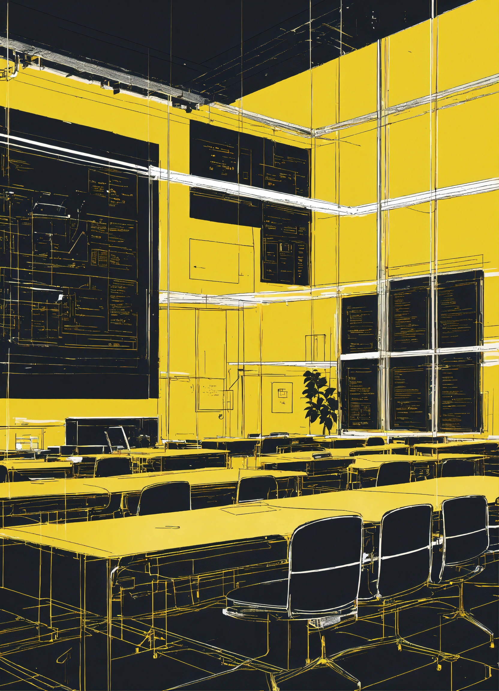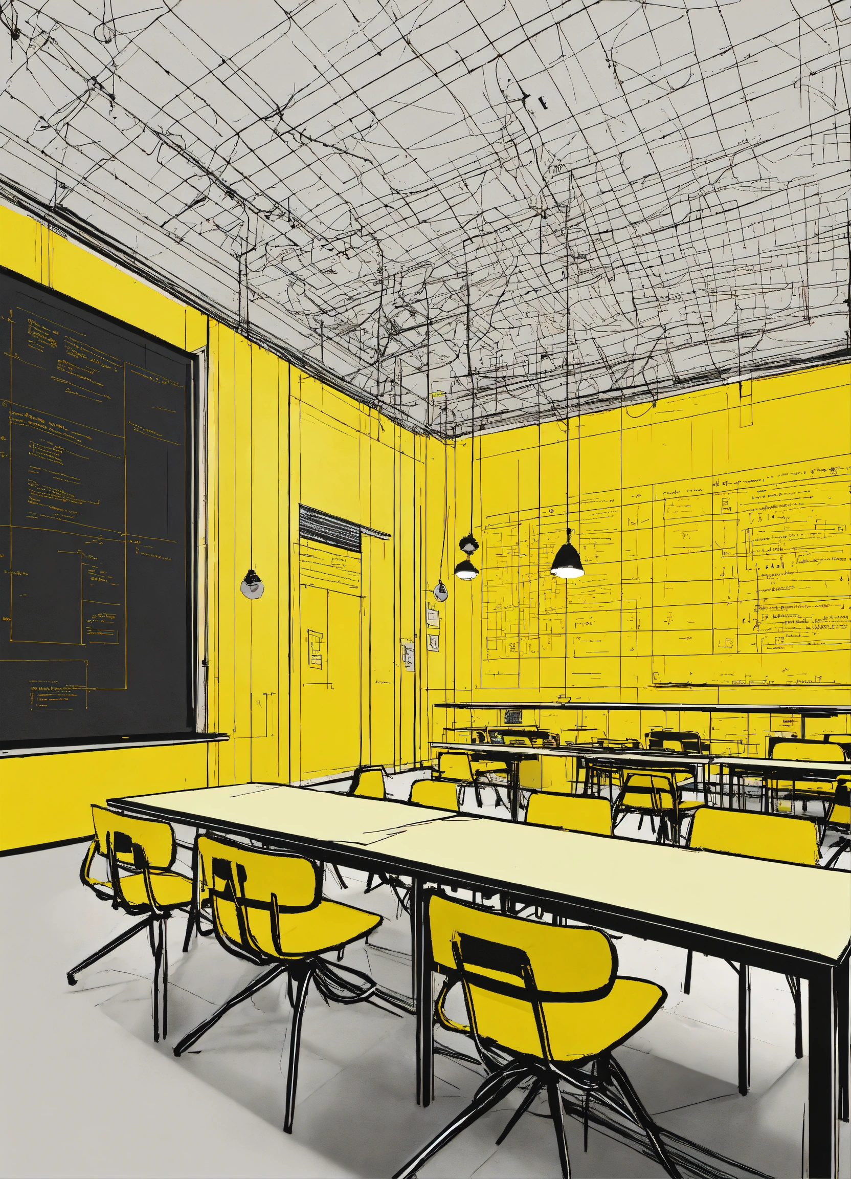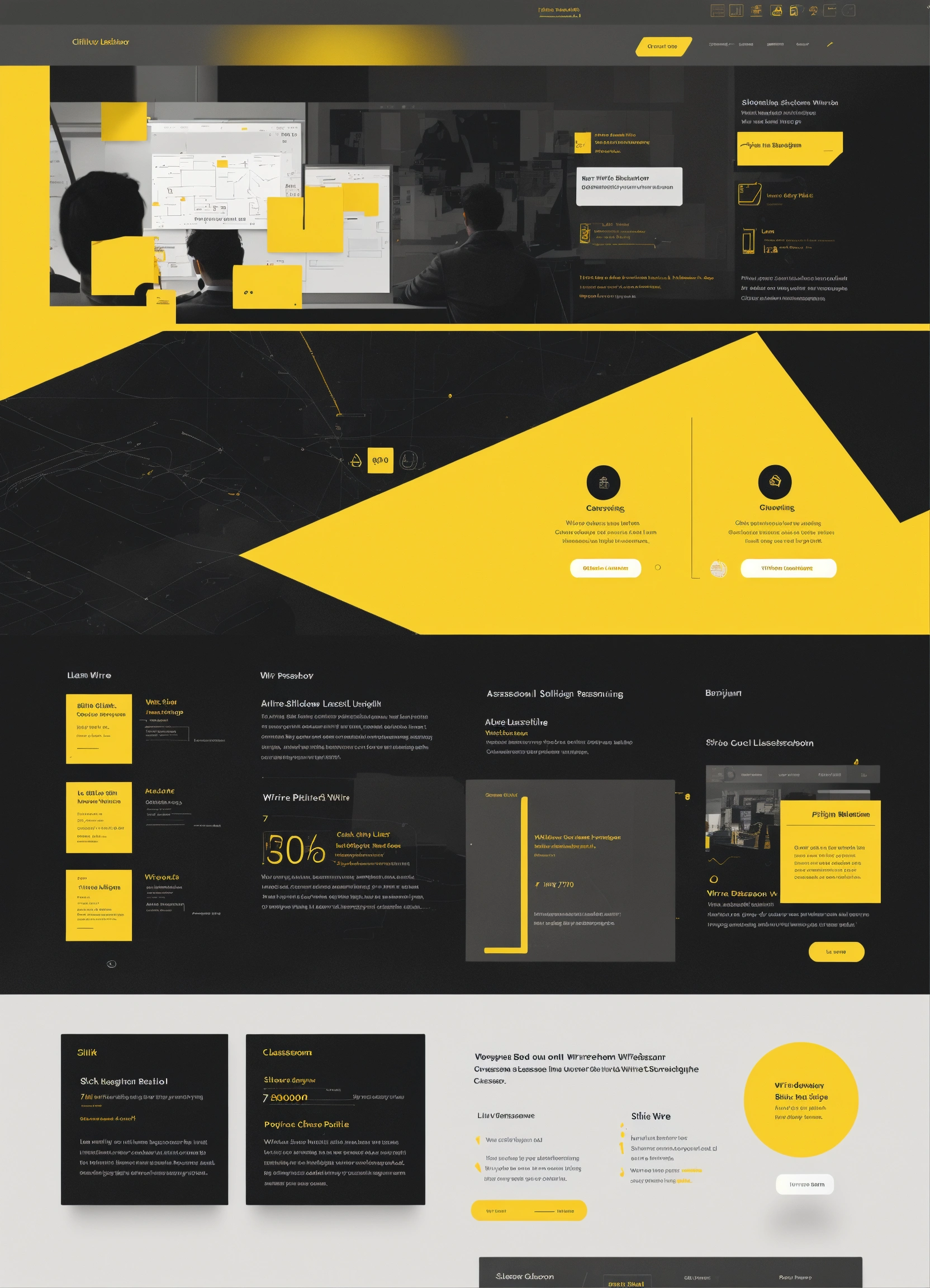 Slick, mordern, layout, ui/ux design, ux research, project-based learning, wireframe background black, yellow accent, classroom, shadow --stylish 700