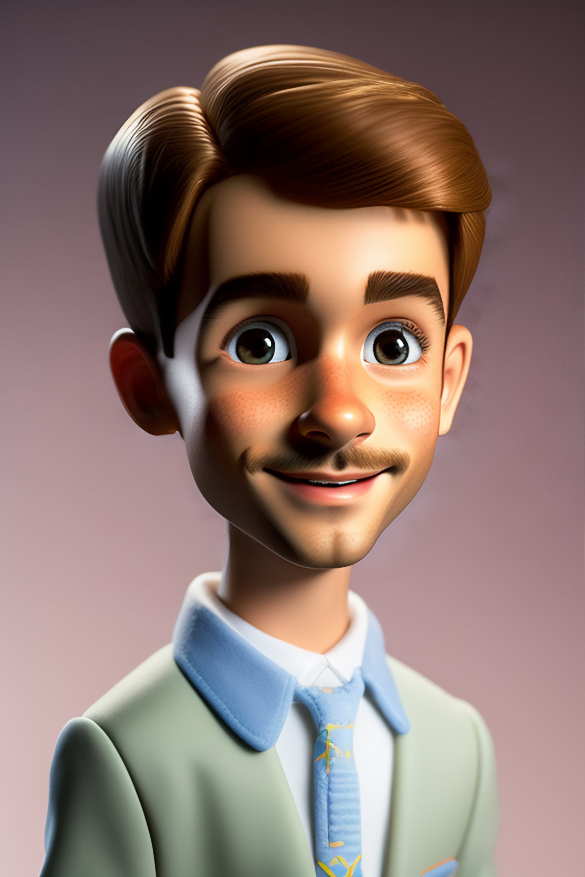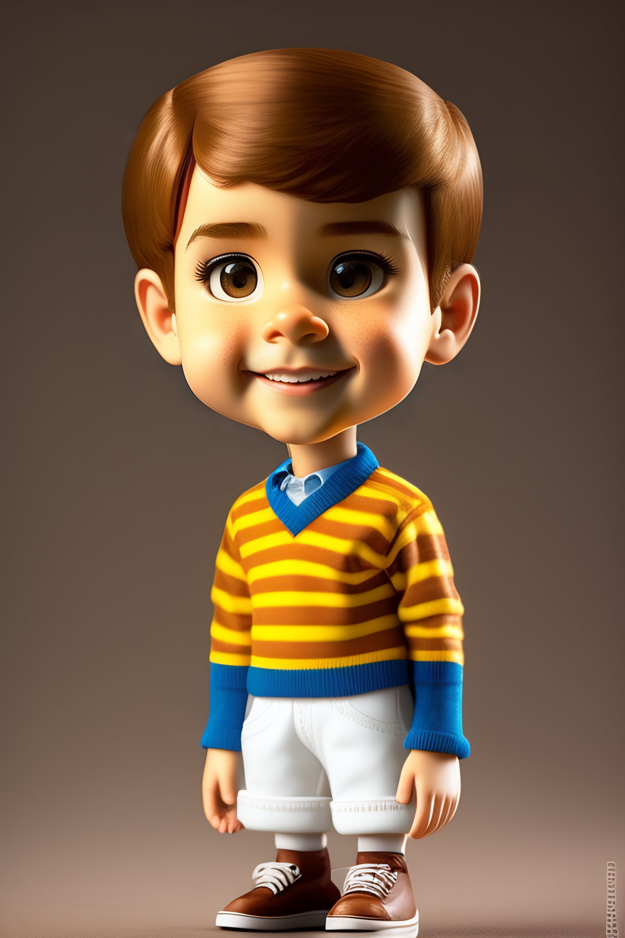Slim white dutch boy with light facial hair and light brown hair as a 2 foot tall doll in pixar caricature style