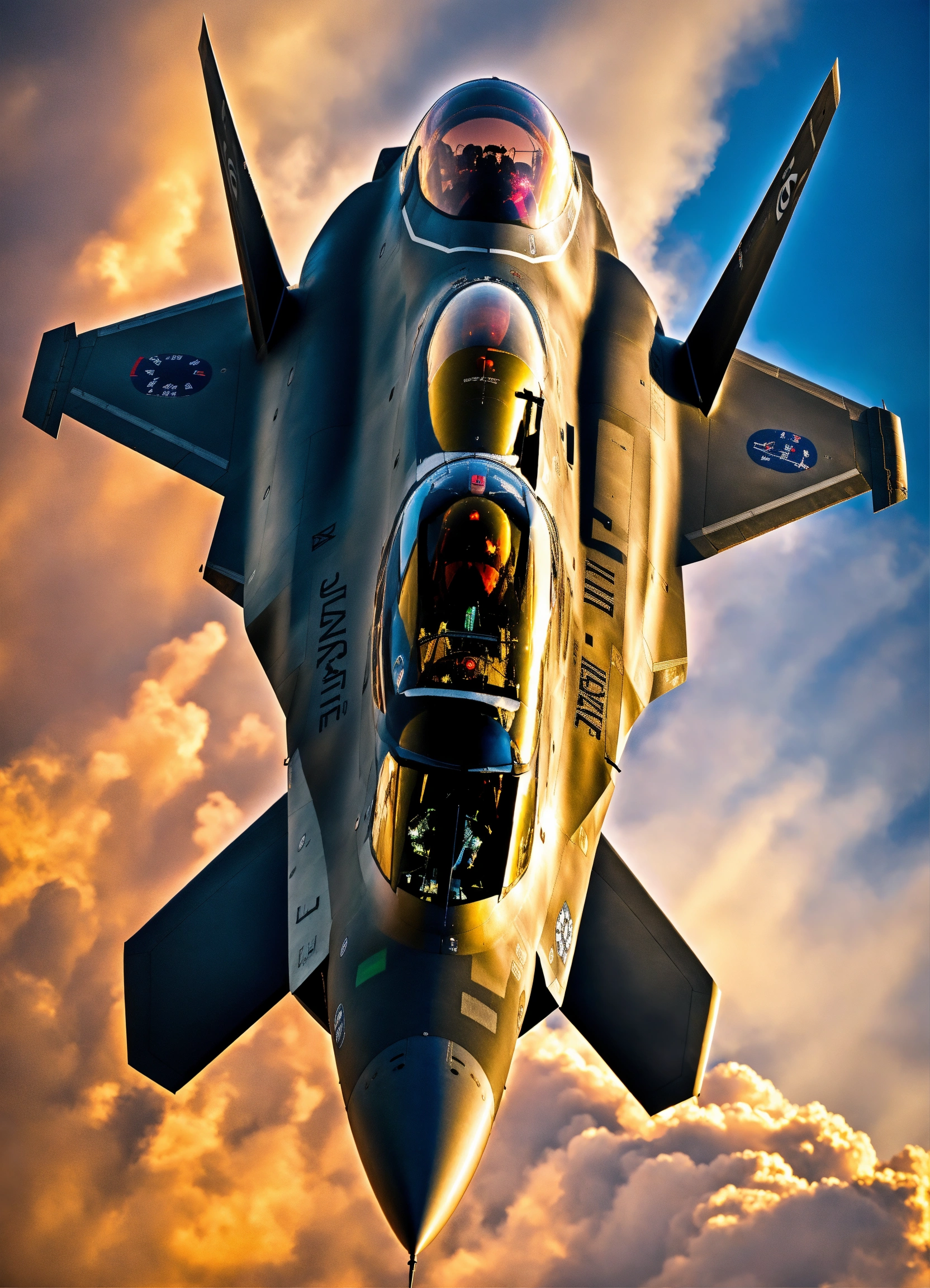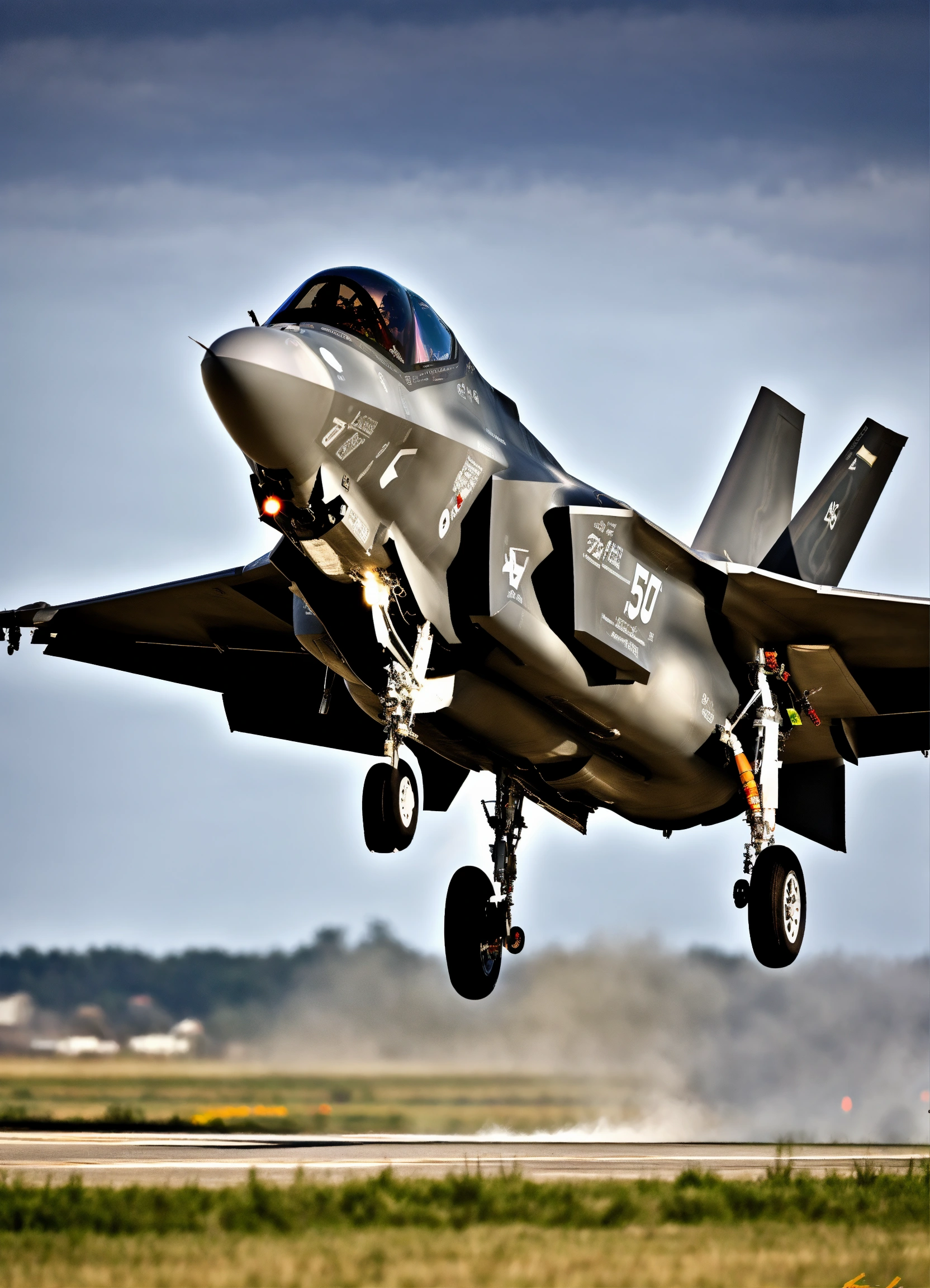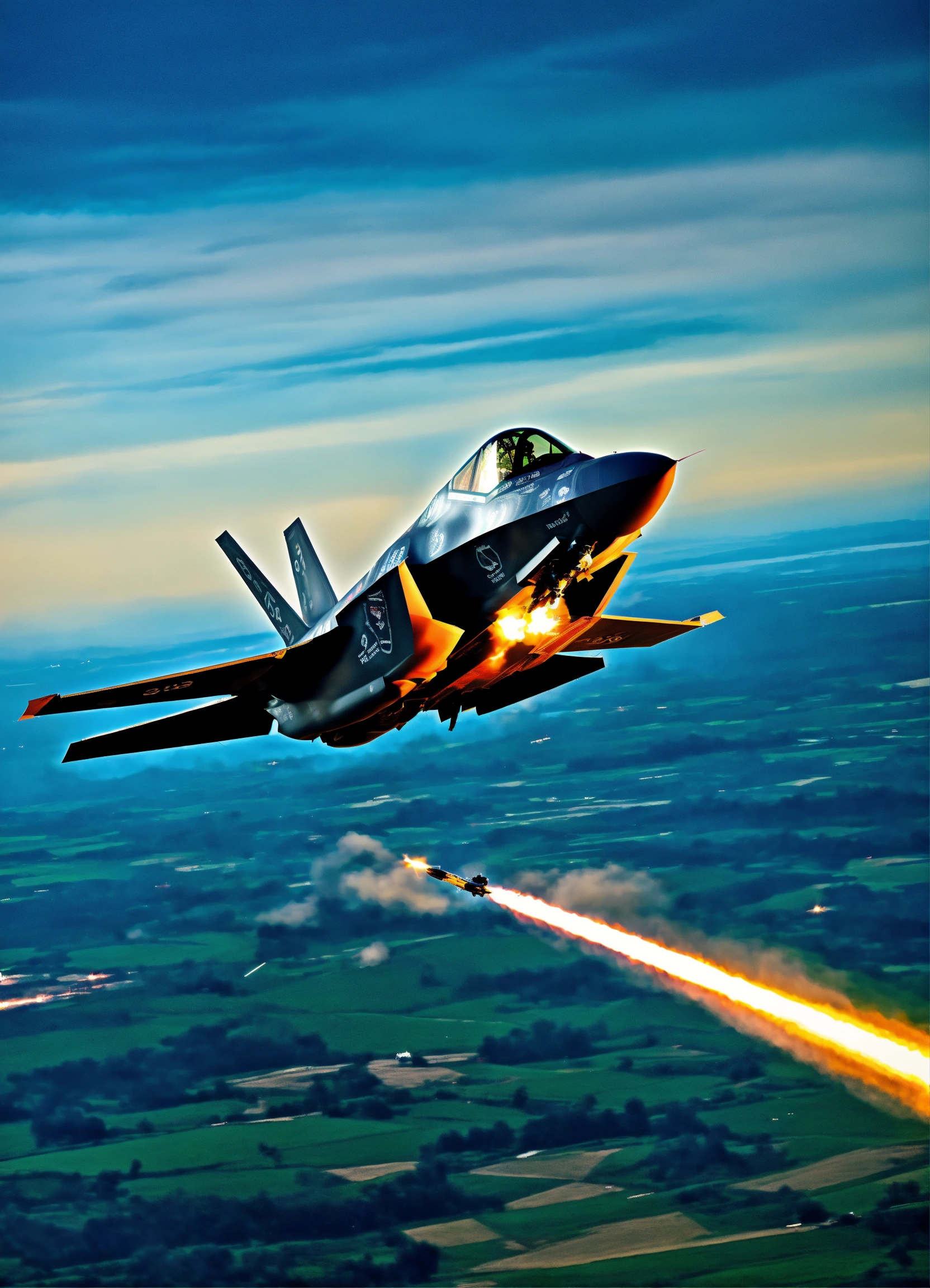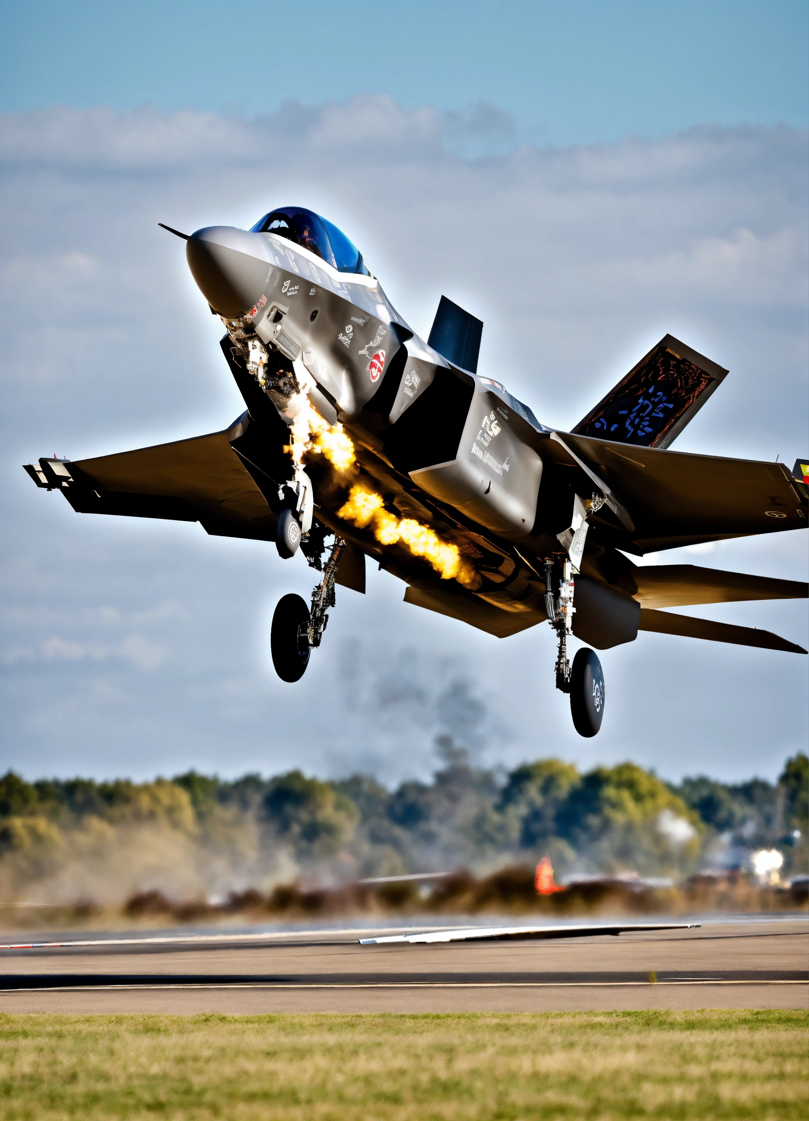 Ein f-35 lightning ii, der rasant durch die luft fliegt und dichte rauchschwaden in einer rolle im impressionismus-stil erzeugt.