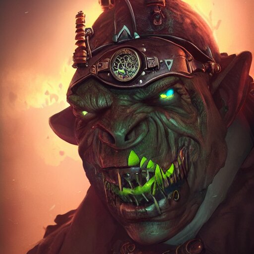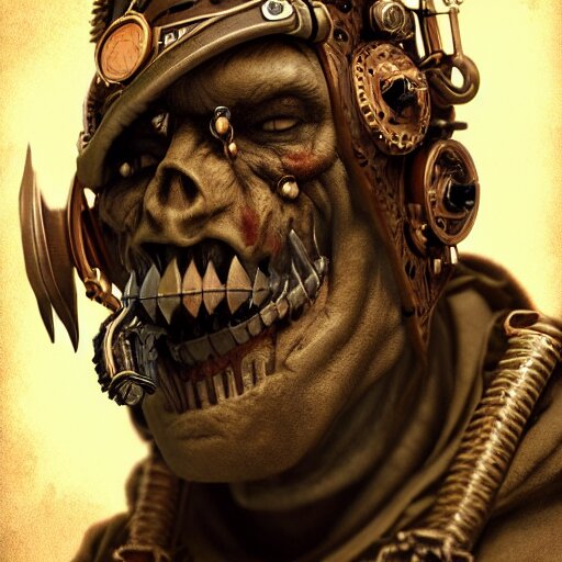 Necrotic steampunk orc, dynamic lighting, photorealistic dark fantasy concept art, trending on artstation, stunning visuals, creative, cinematic, ultra detailed