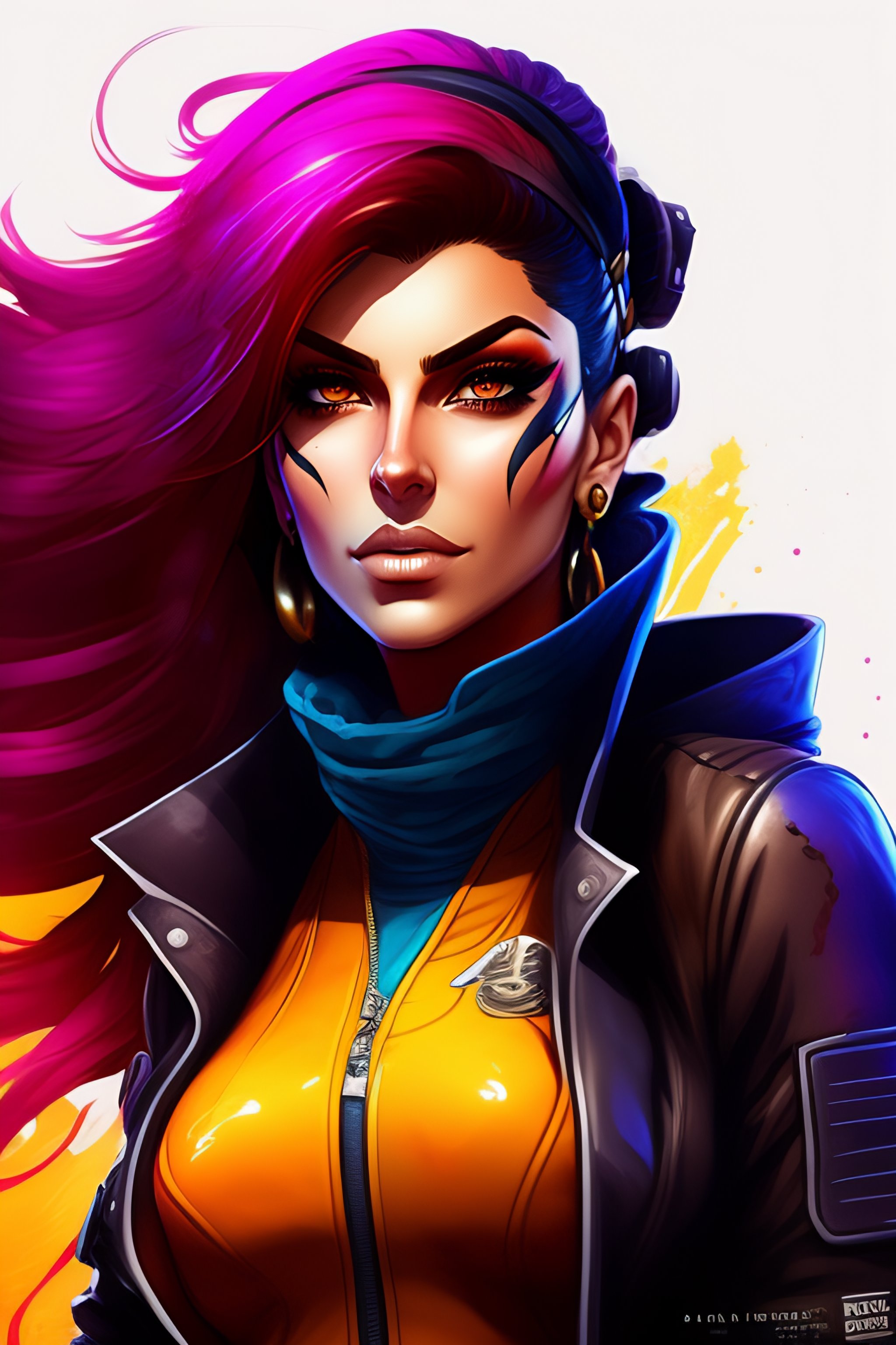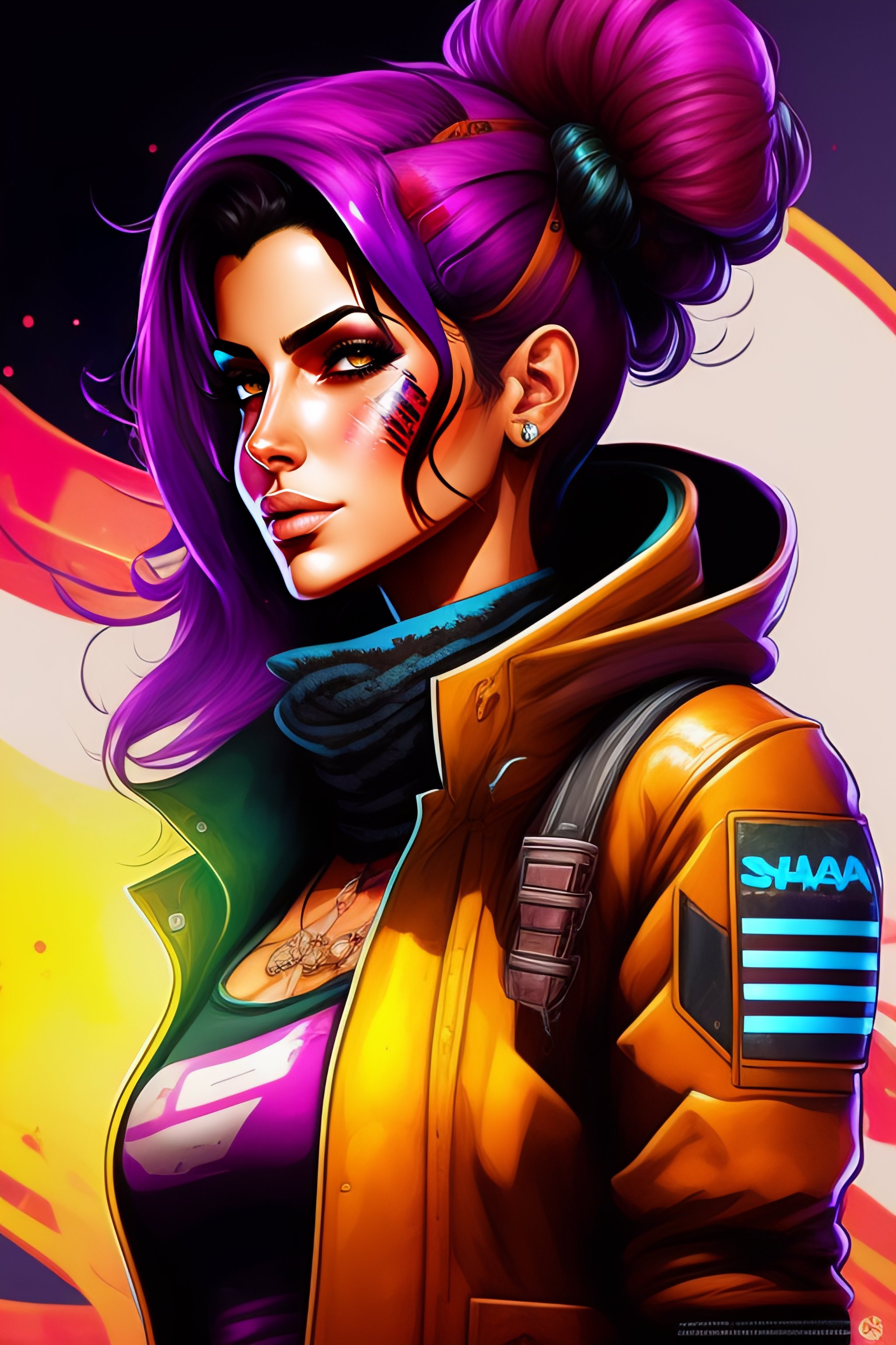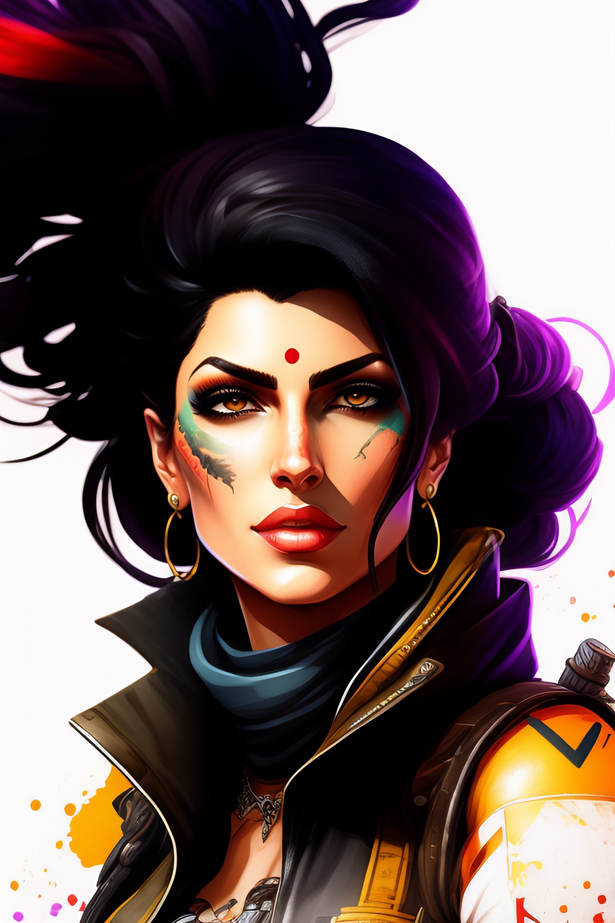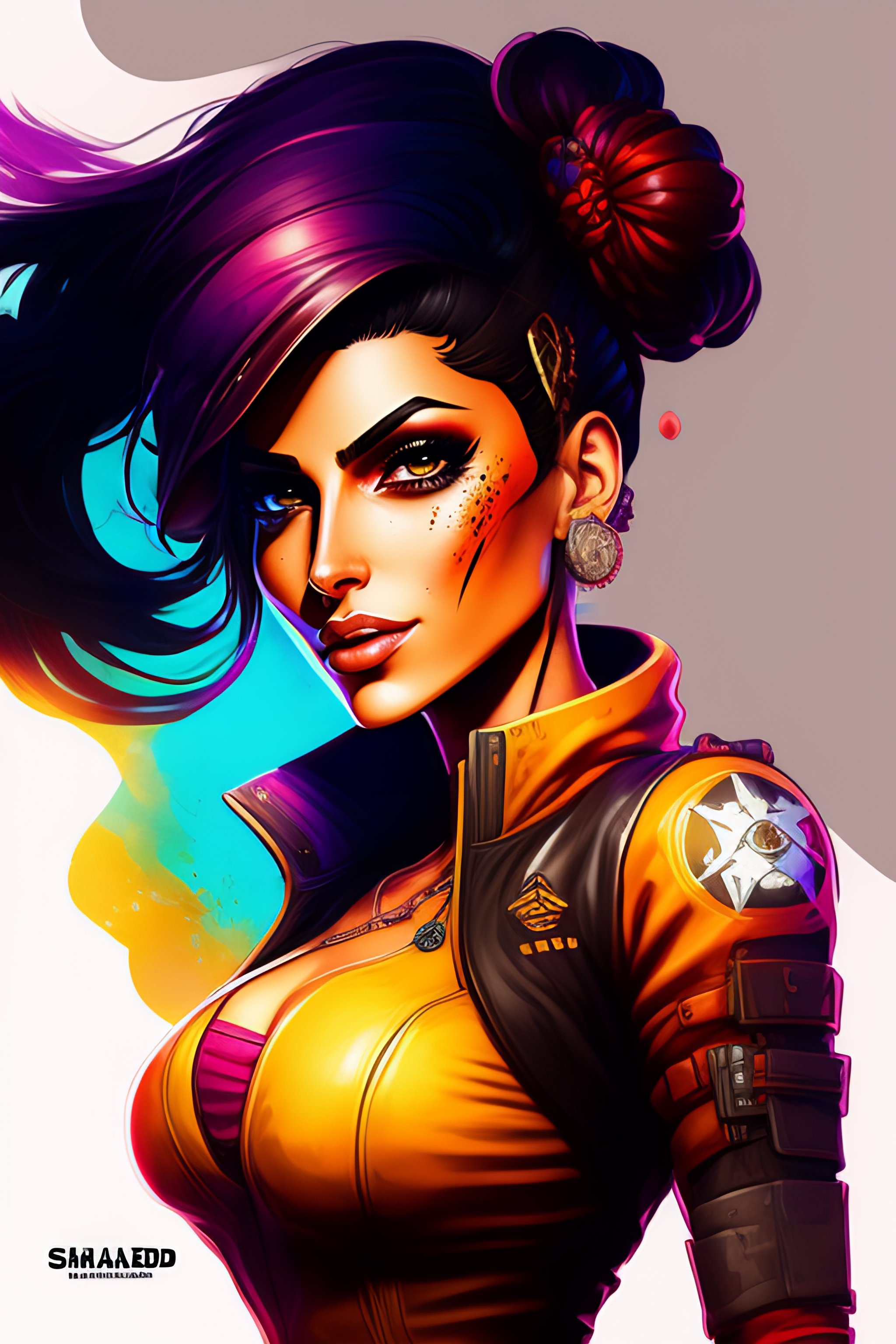 Woman badass shaddy safadi, cartoon, in style of borderlands 3, digital art, beautiful style by ashley wood, watercolor style, digital painting in wallpaper background