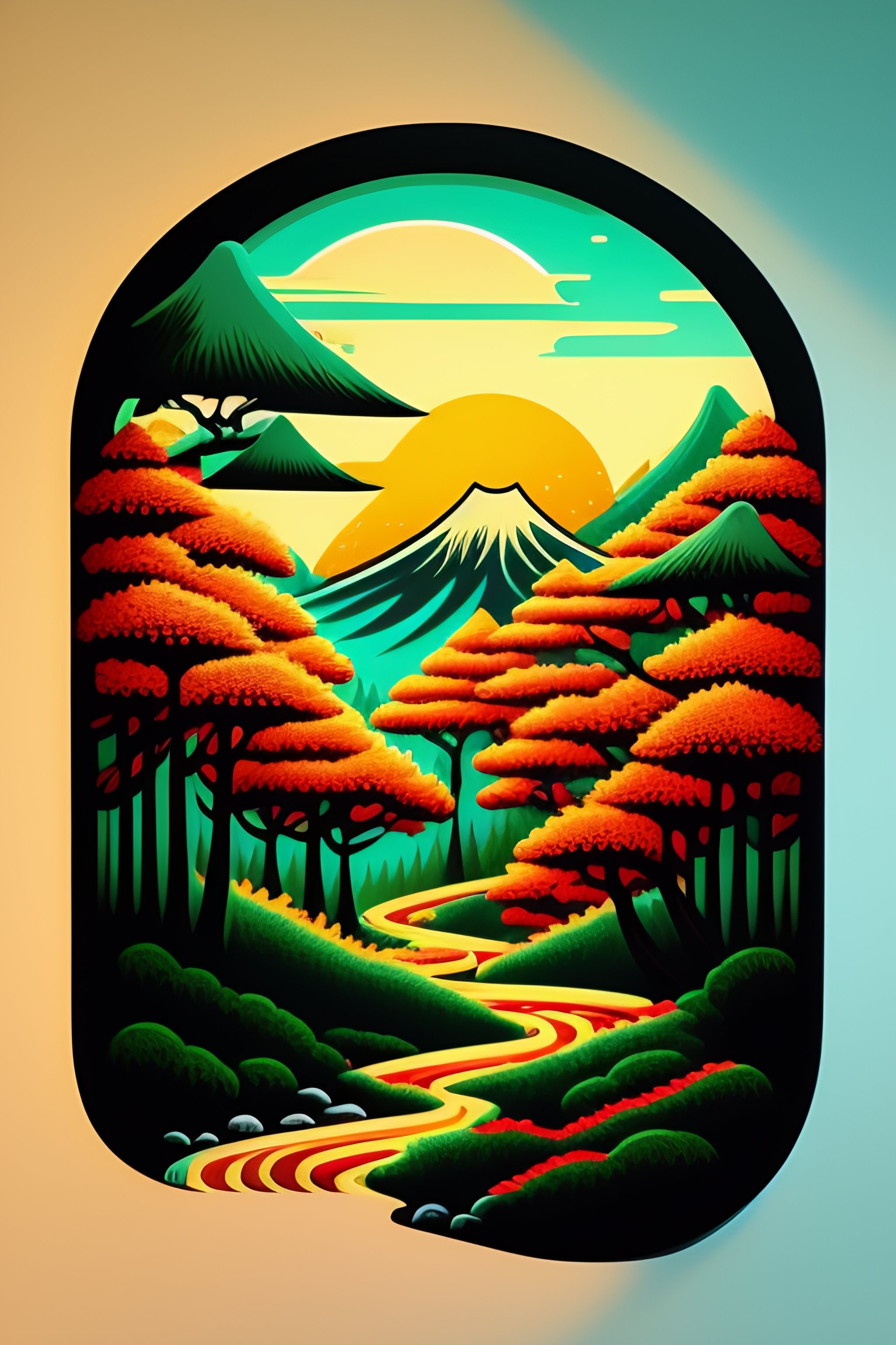 Japanese forest, art by butcher billy, sticker, colorful, illustration, highly detailed, simple, smooth and clean vector, no jagged lines, vector art, smooth