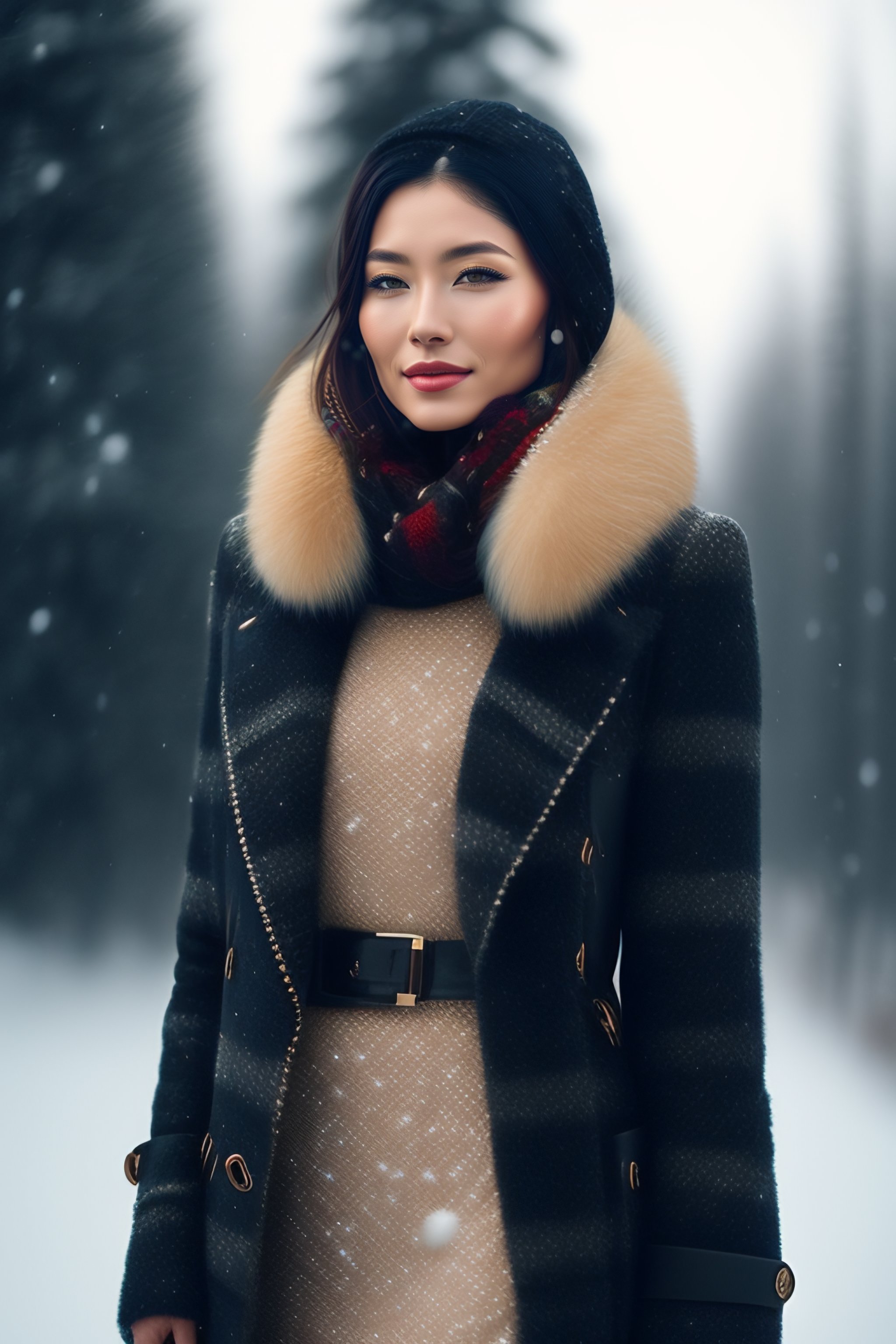 Beautiful woman wearing chanel in winter