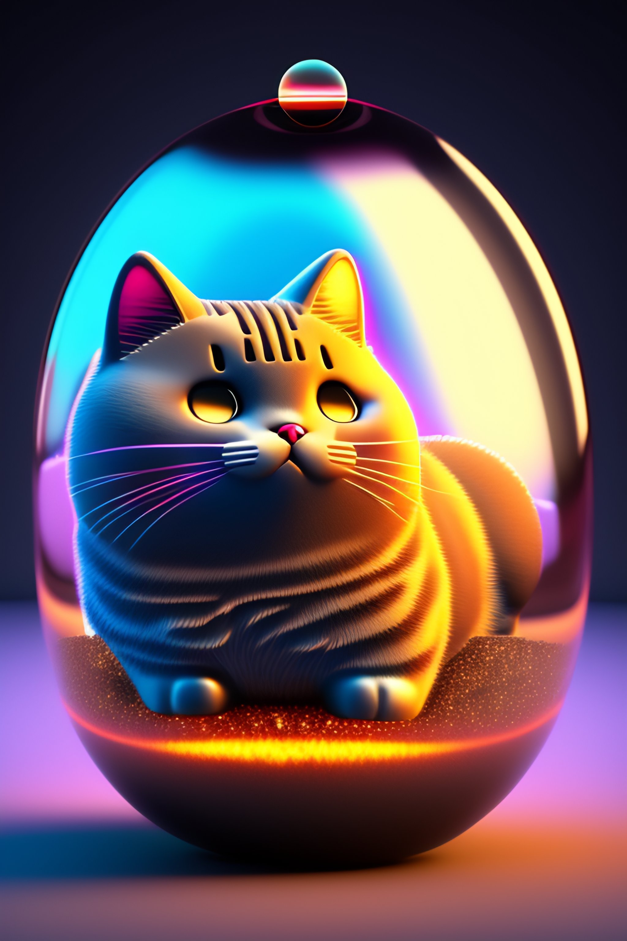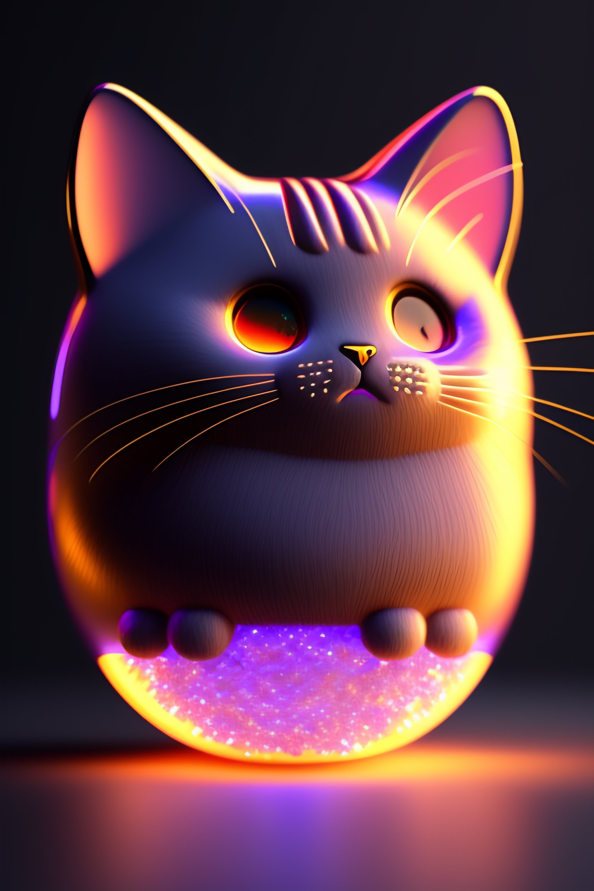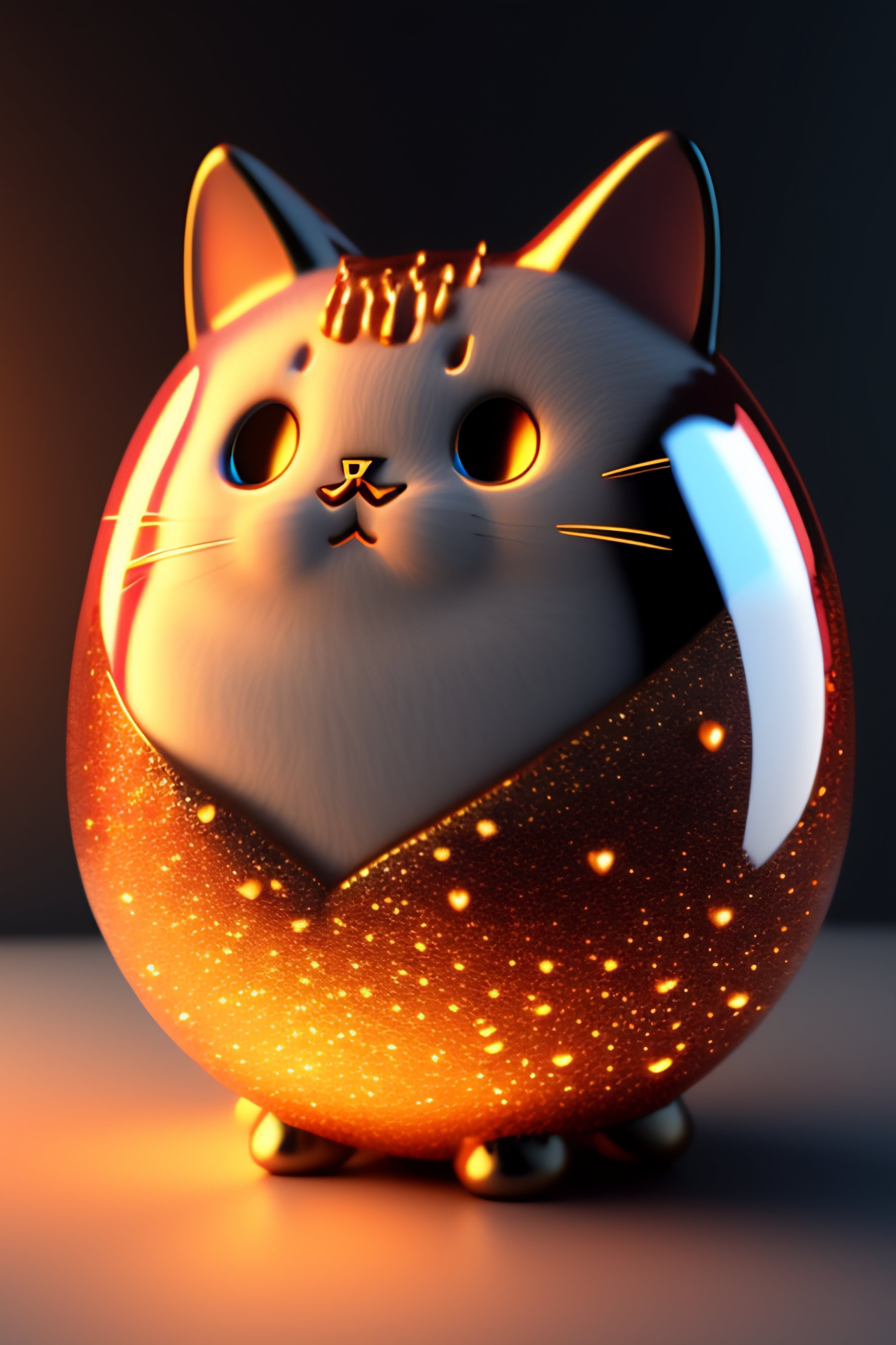 A pusheen the cat made of crystal ball with low poly eye's surrounded by glowing aura, flamming sparkles highly detailed intricated concept art trending artstation 8k