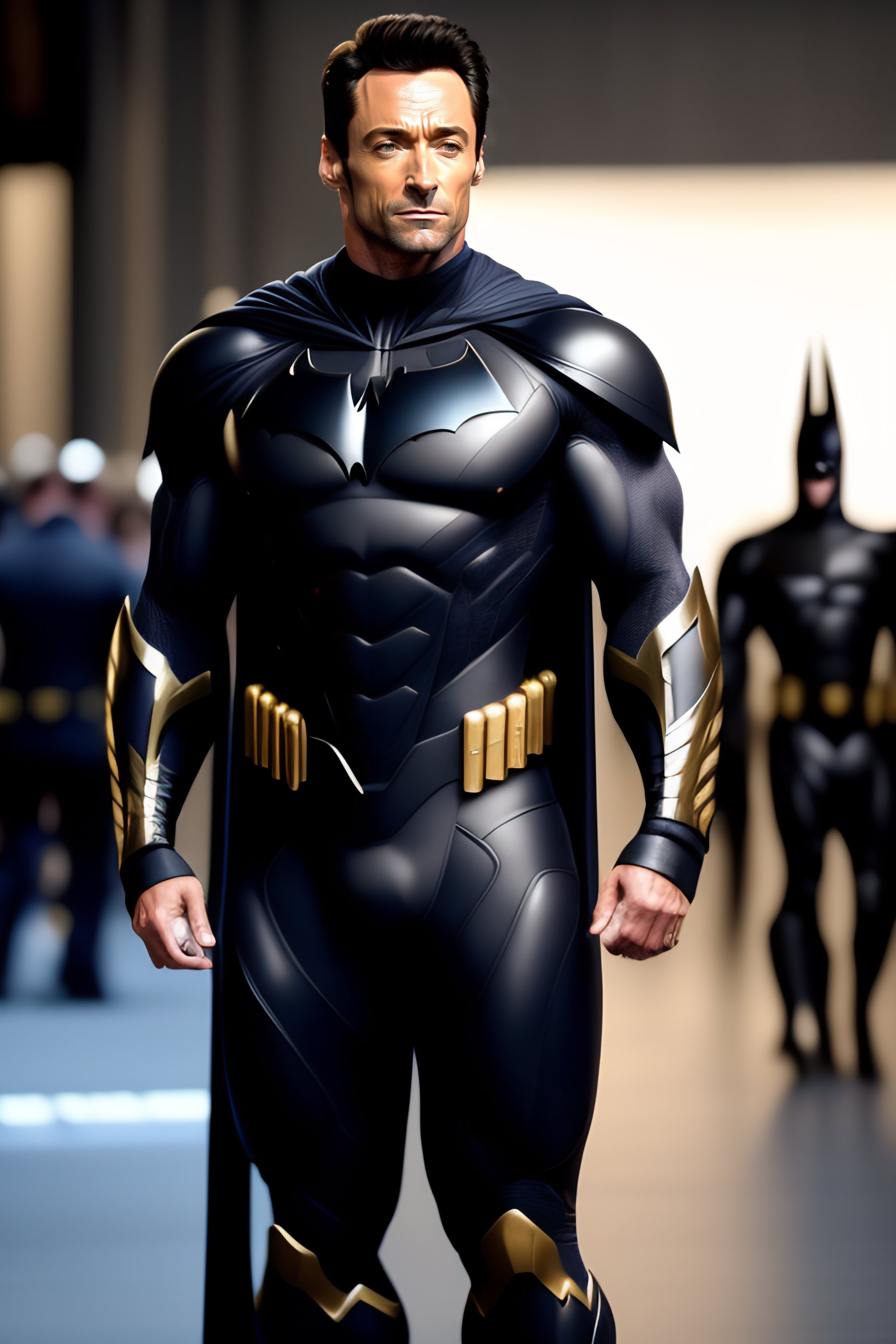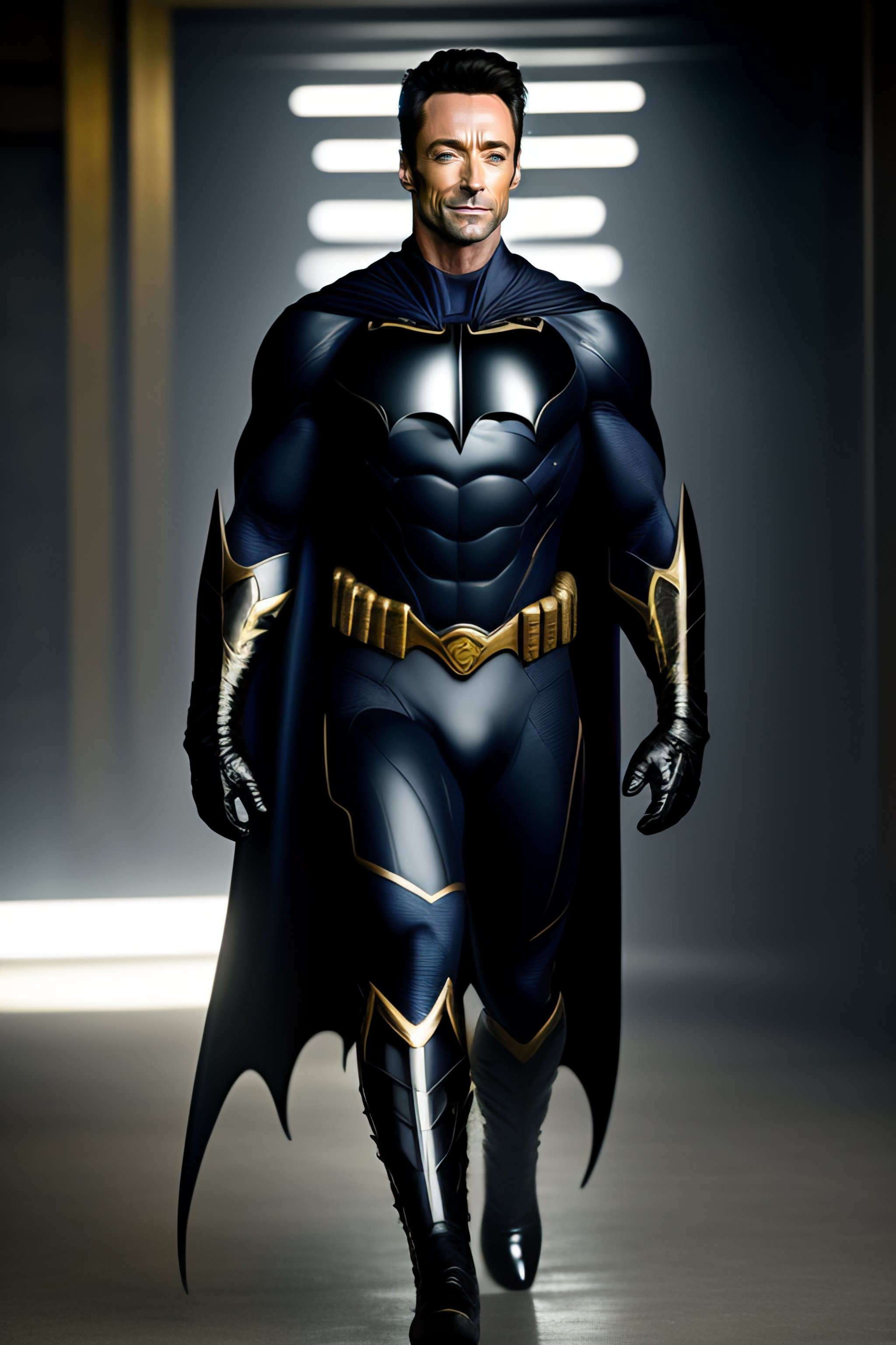 Hugh jackman as bruce wayne with batsuit in batman movie