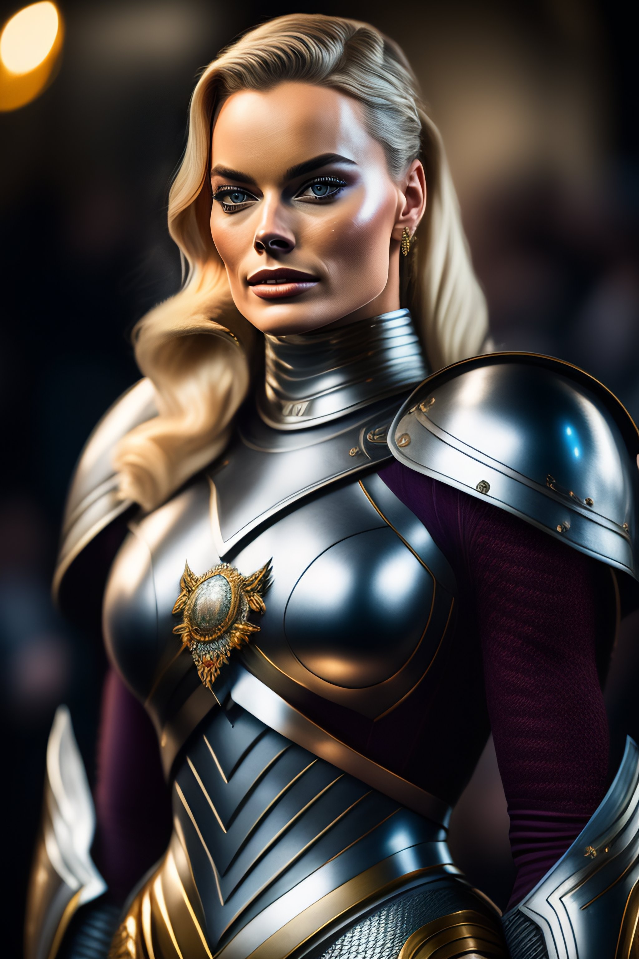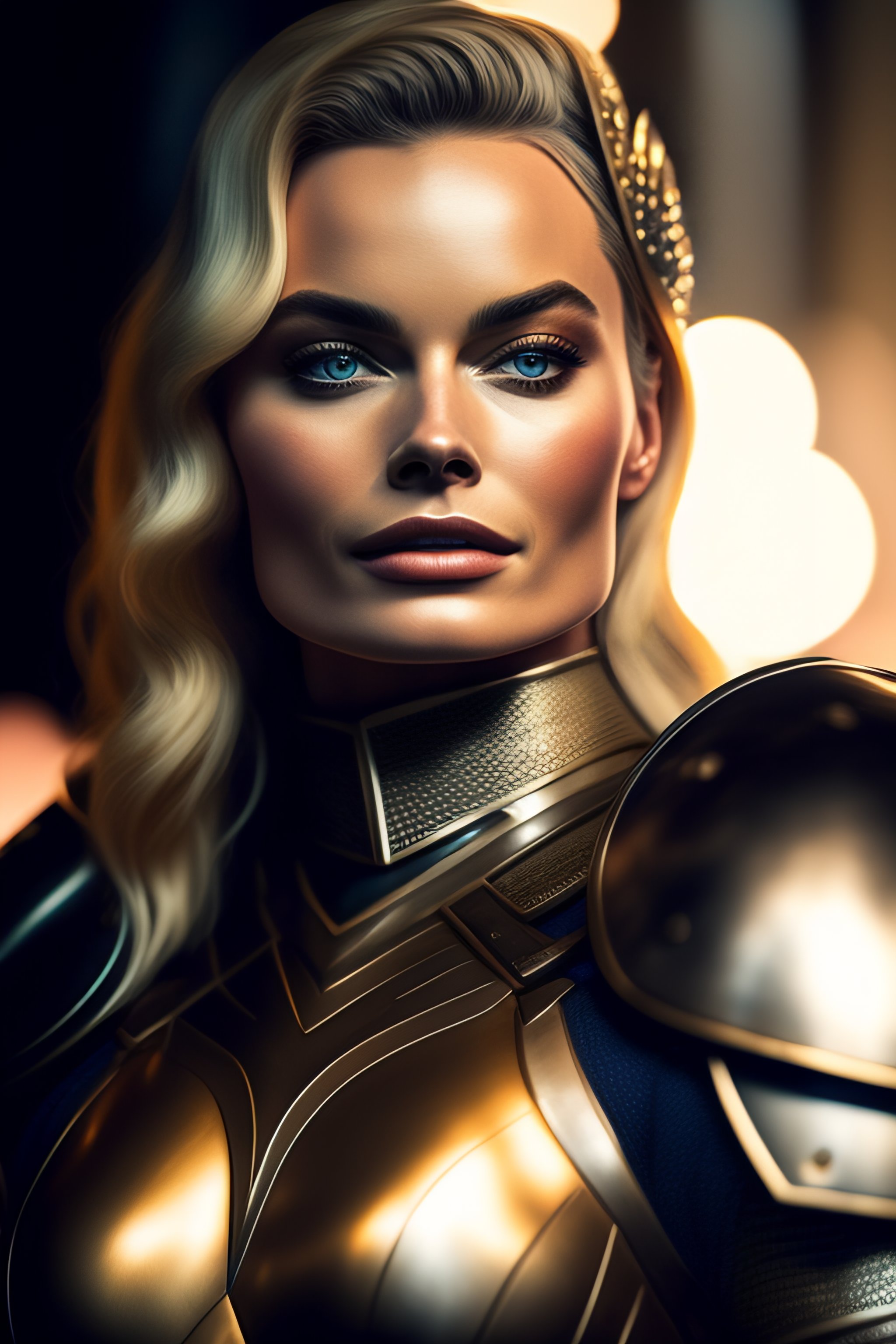 Margot robbie using malenia blade of miquella armor, realistic detailed, beautiful gorgeous, proportional body, nikon 70-200mm f/2.8g, darkness background