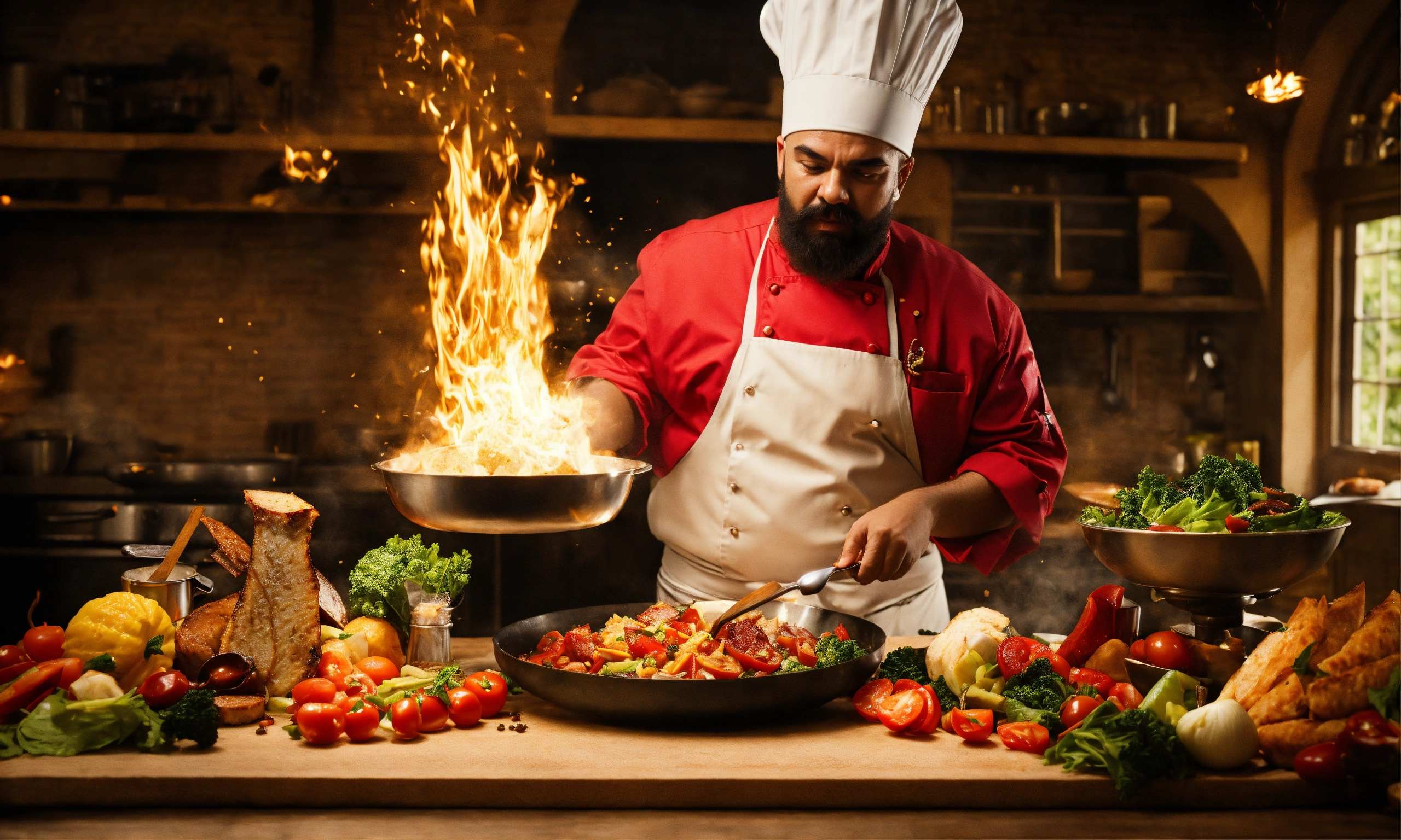 Satan disguised as a chef casting his spell on the food