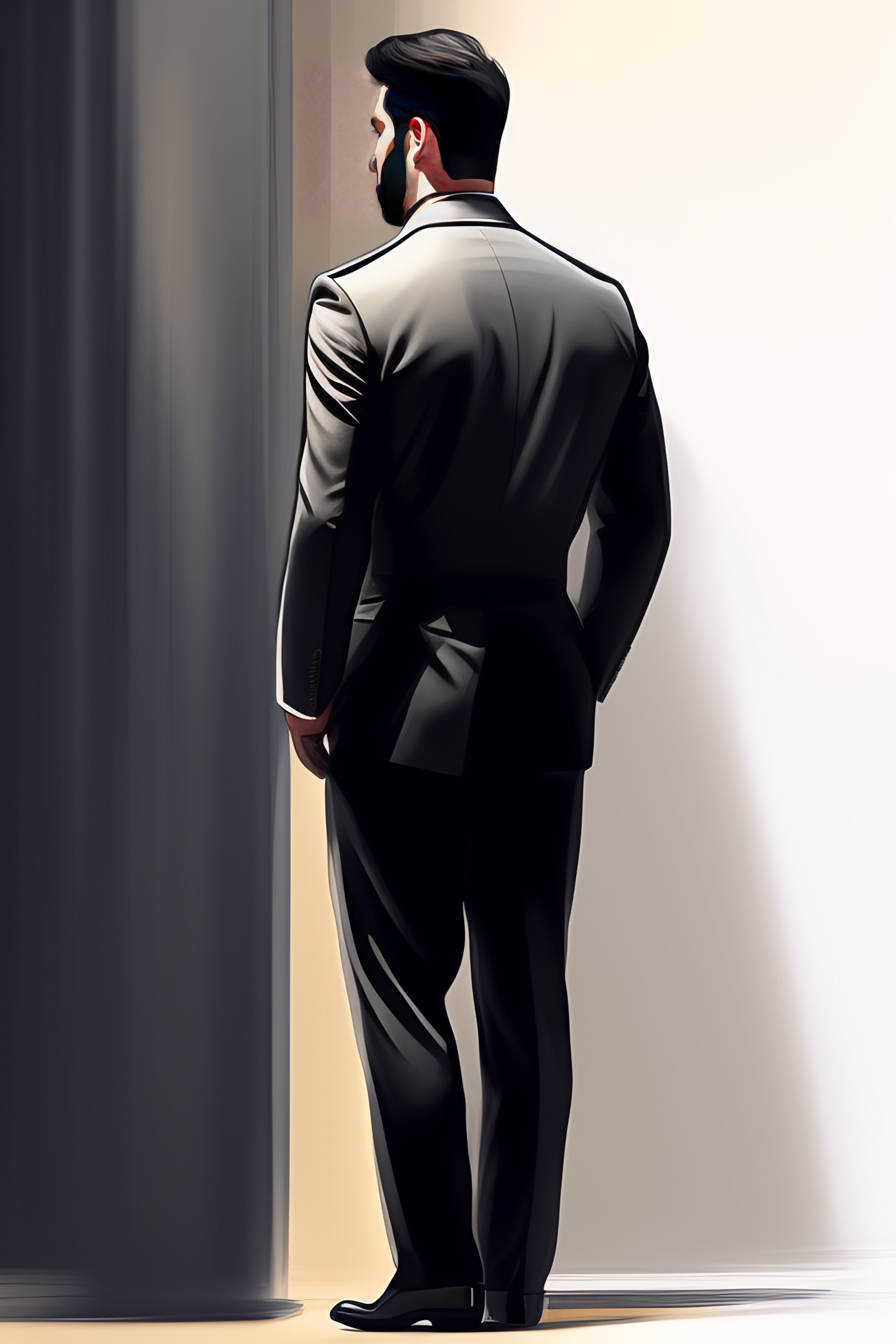 Man standing with hands on his hips, viewed in three quarters, digital sketch, figure drawing, pose reference, drawing study