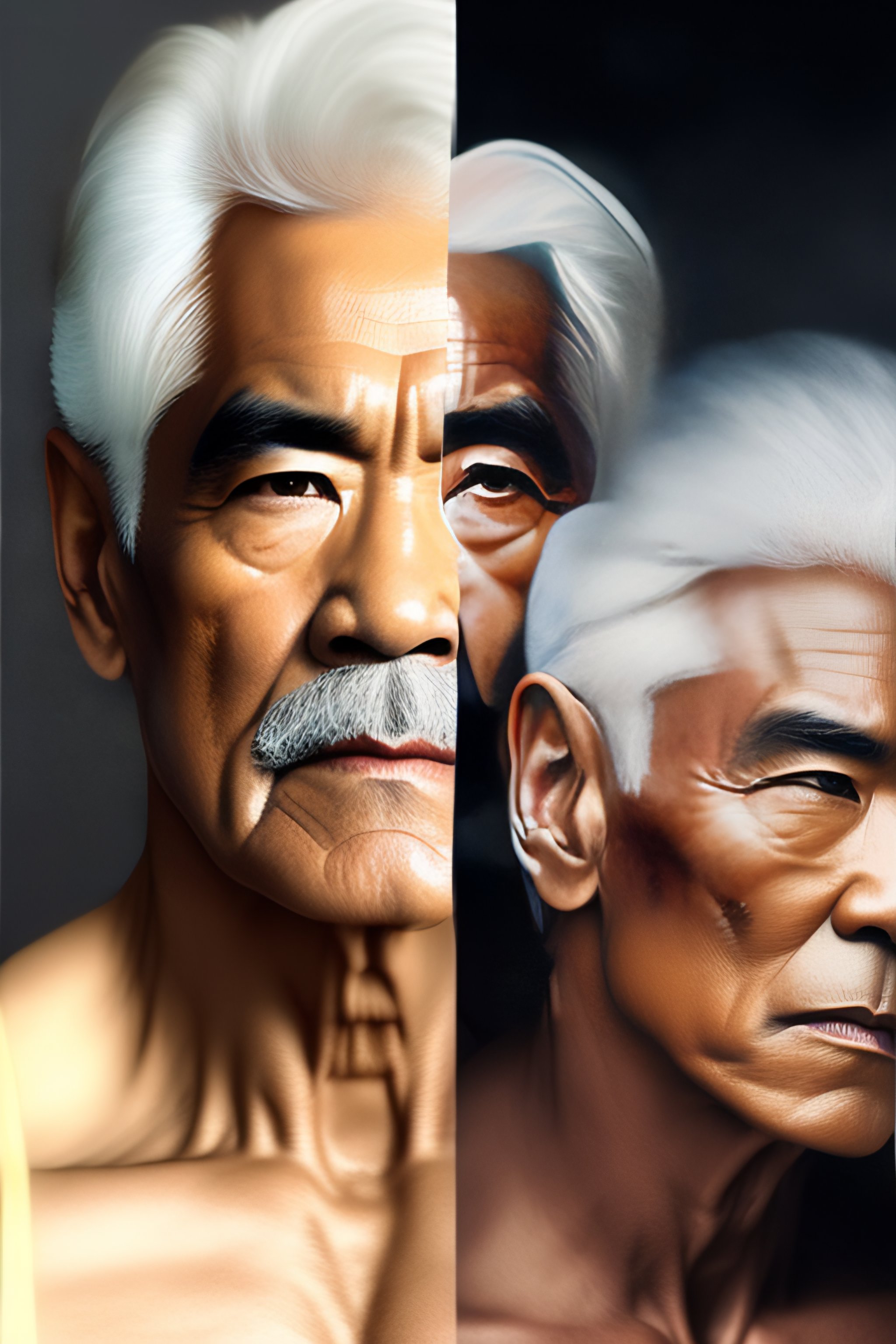 A realistic photo of an older bruce lee at sixty years of age with white hair