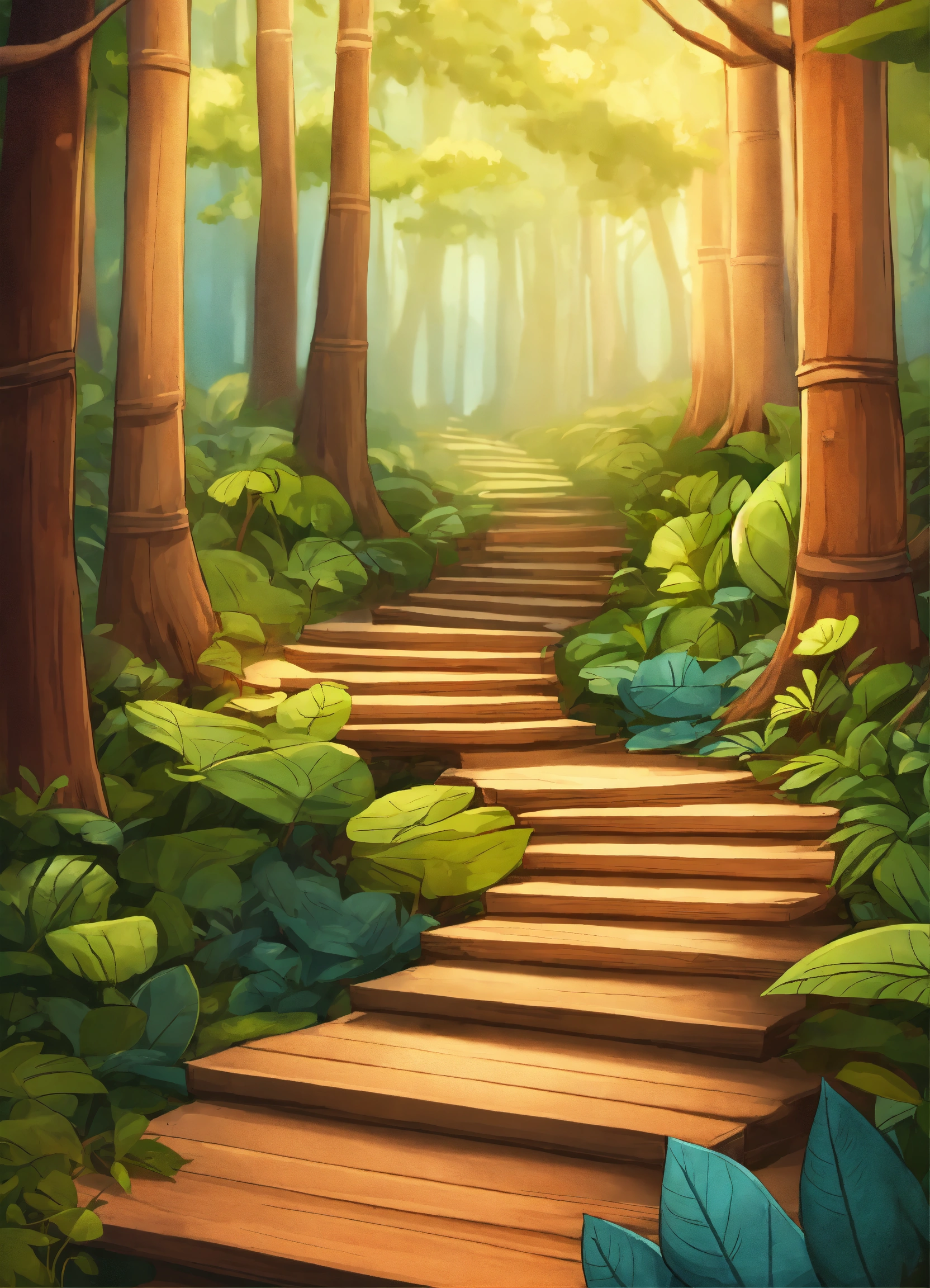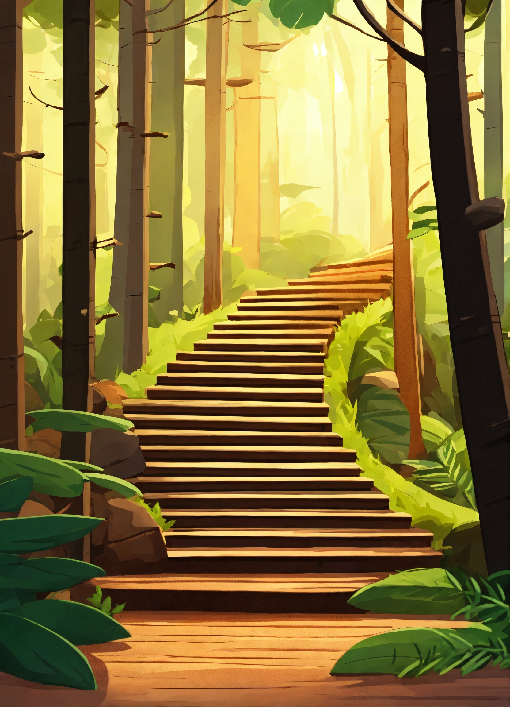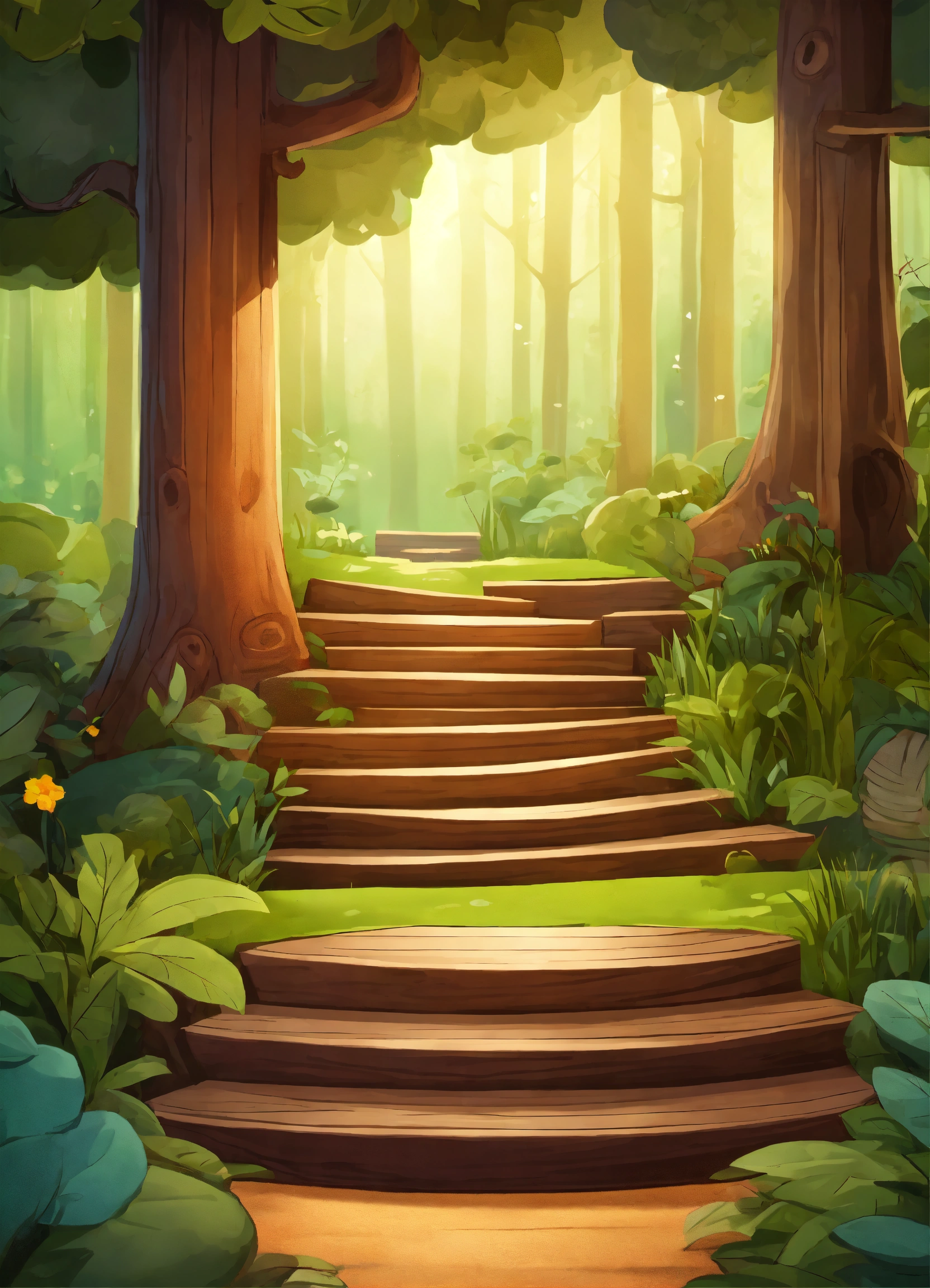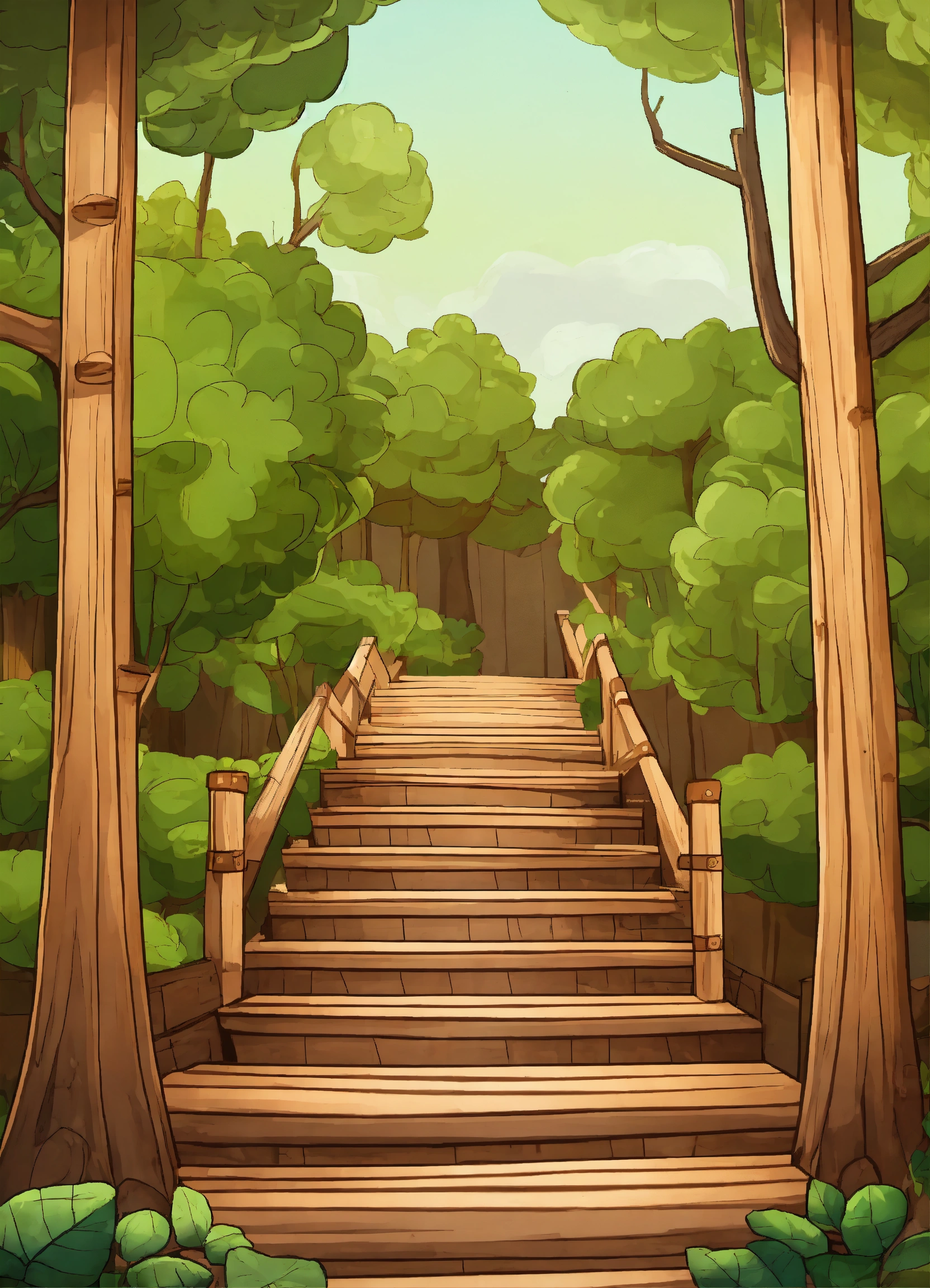 Wooden cartoon stair in the forest