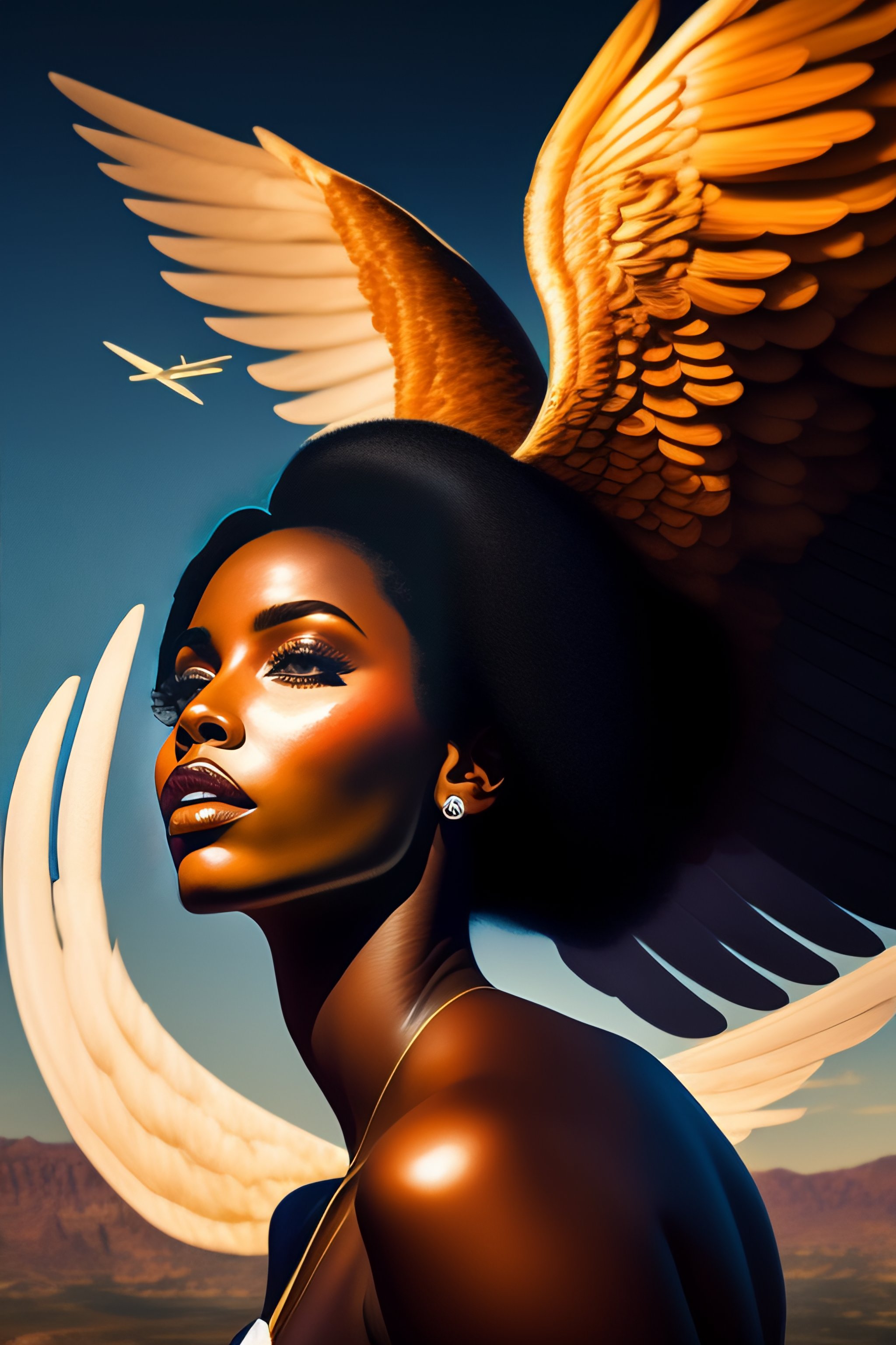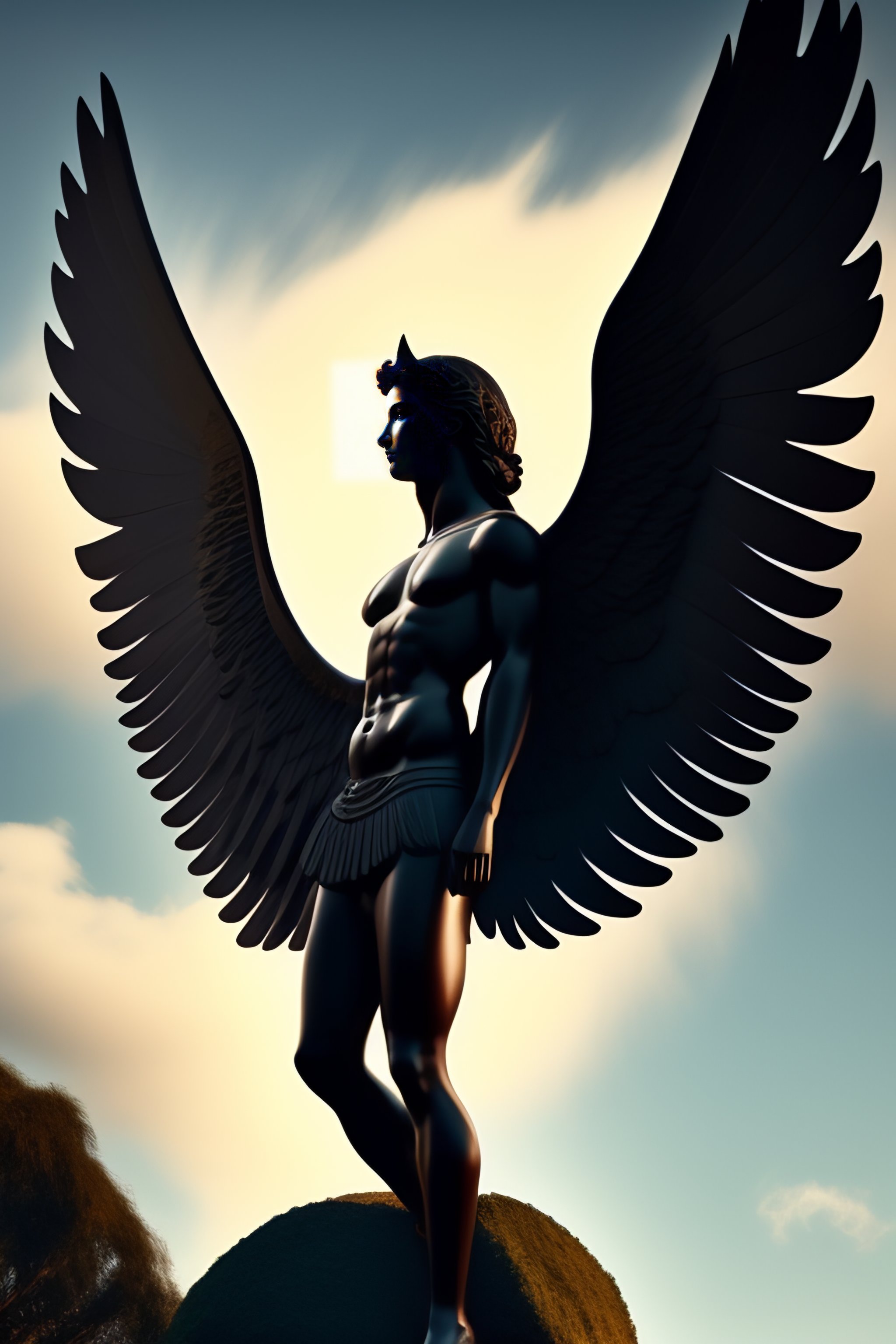 Un ángel volando con alas negras