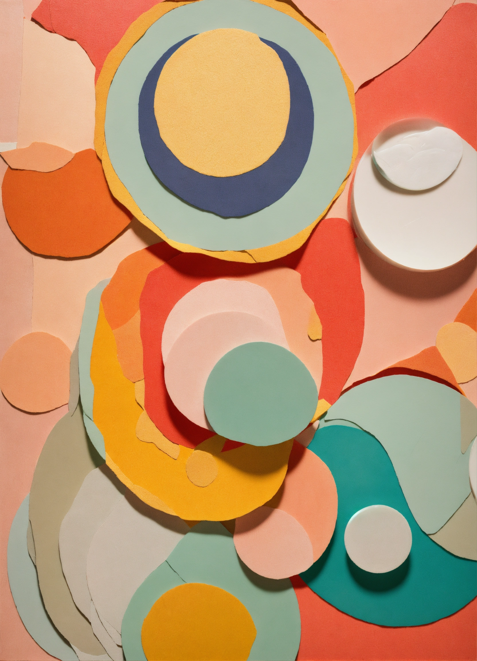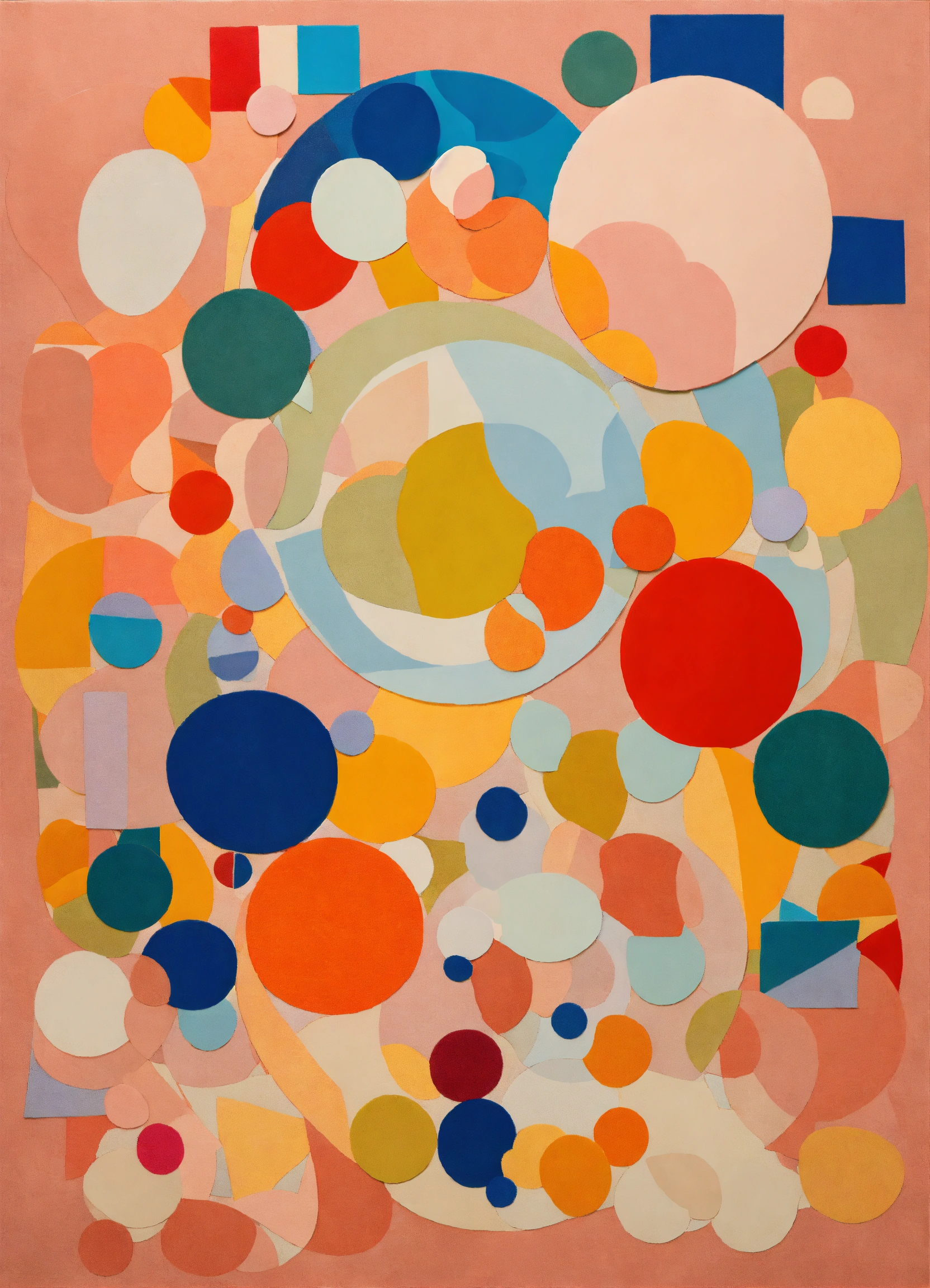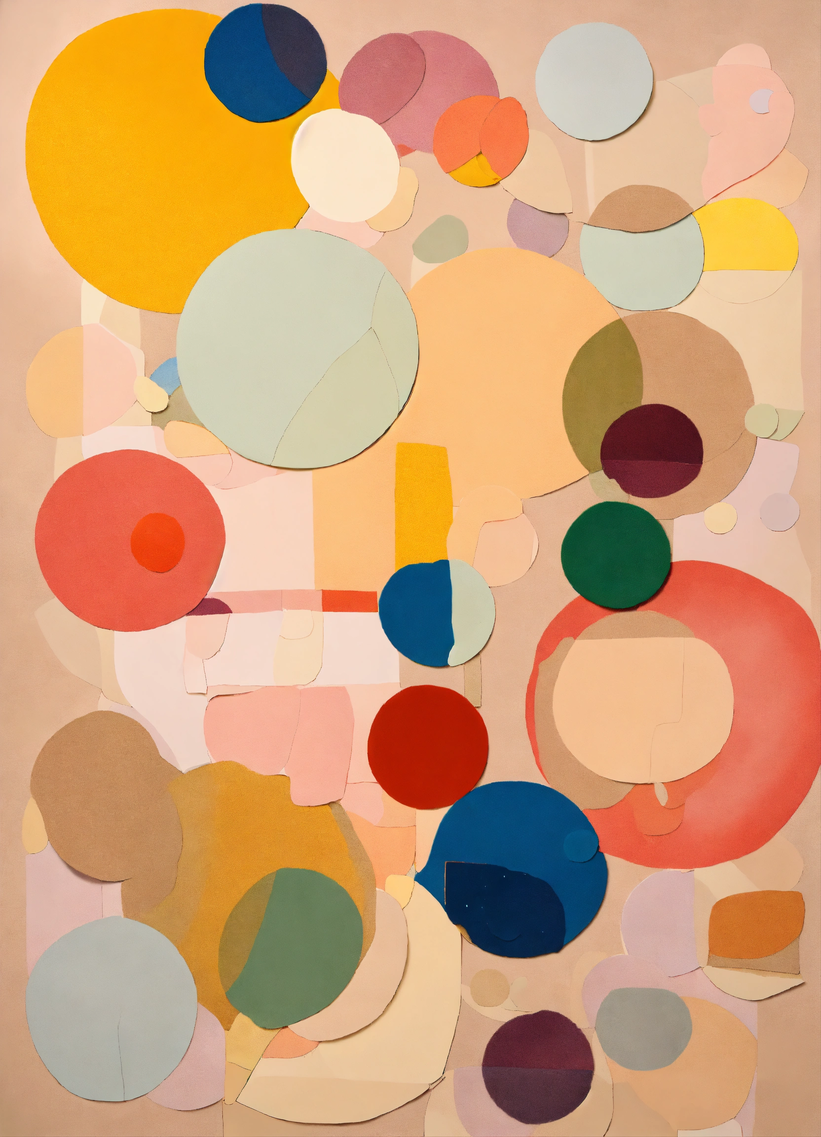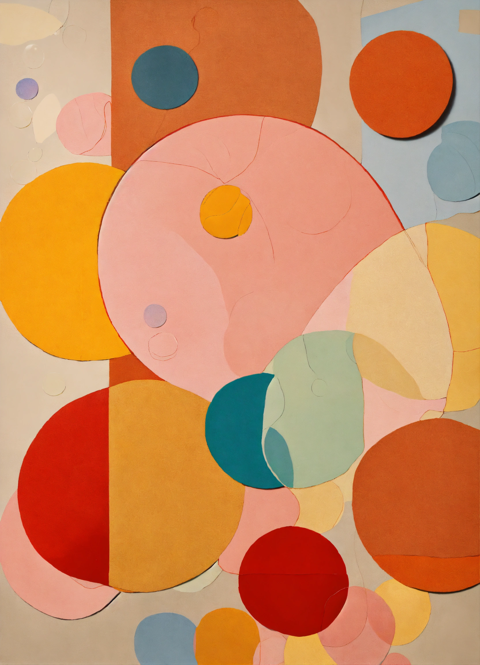 A paper collage applique art by henry matisse depicting round transparent soap bubbles in light colors