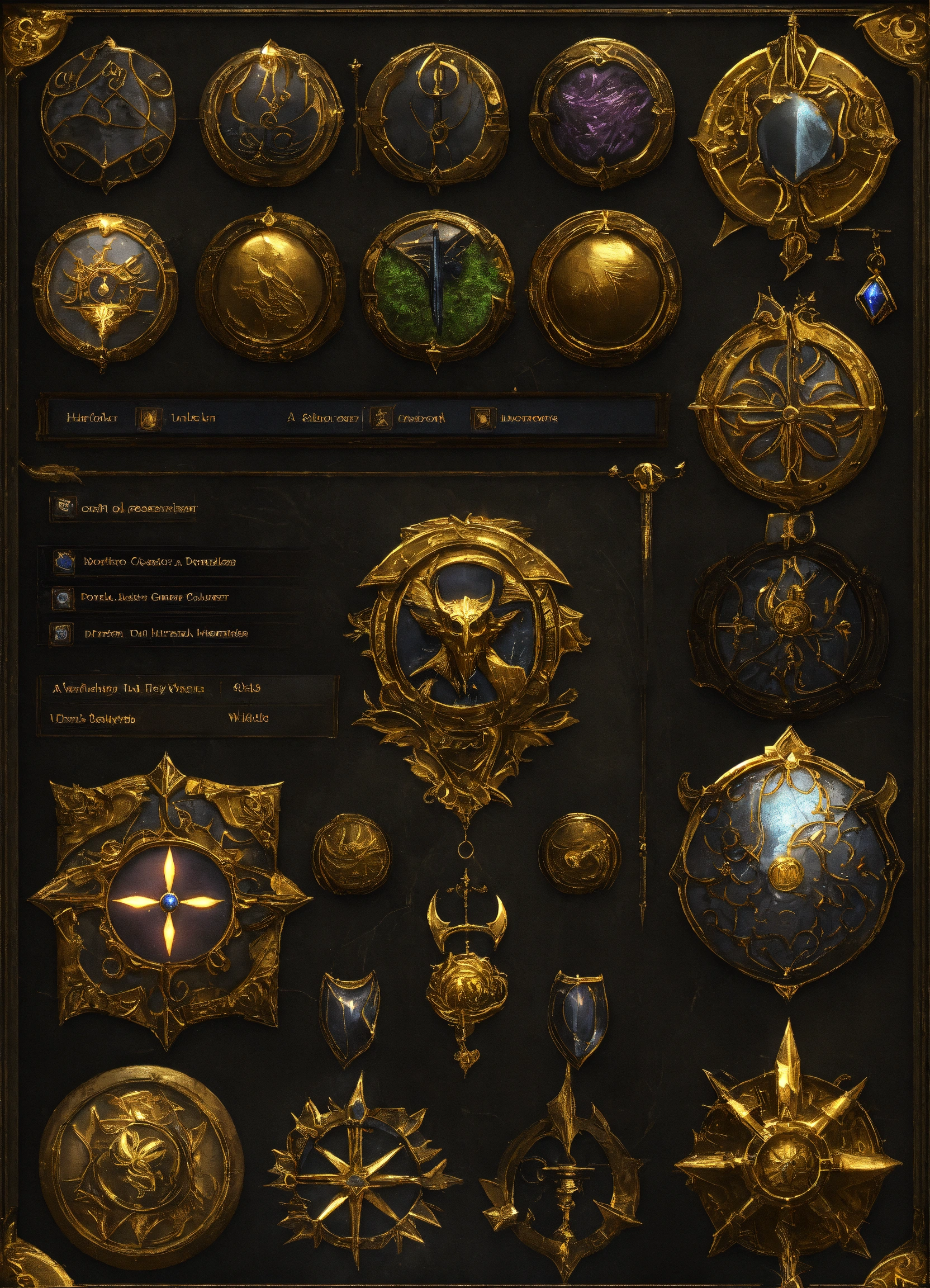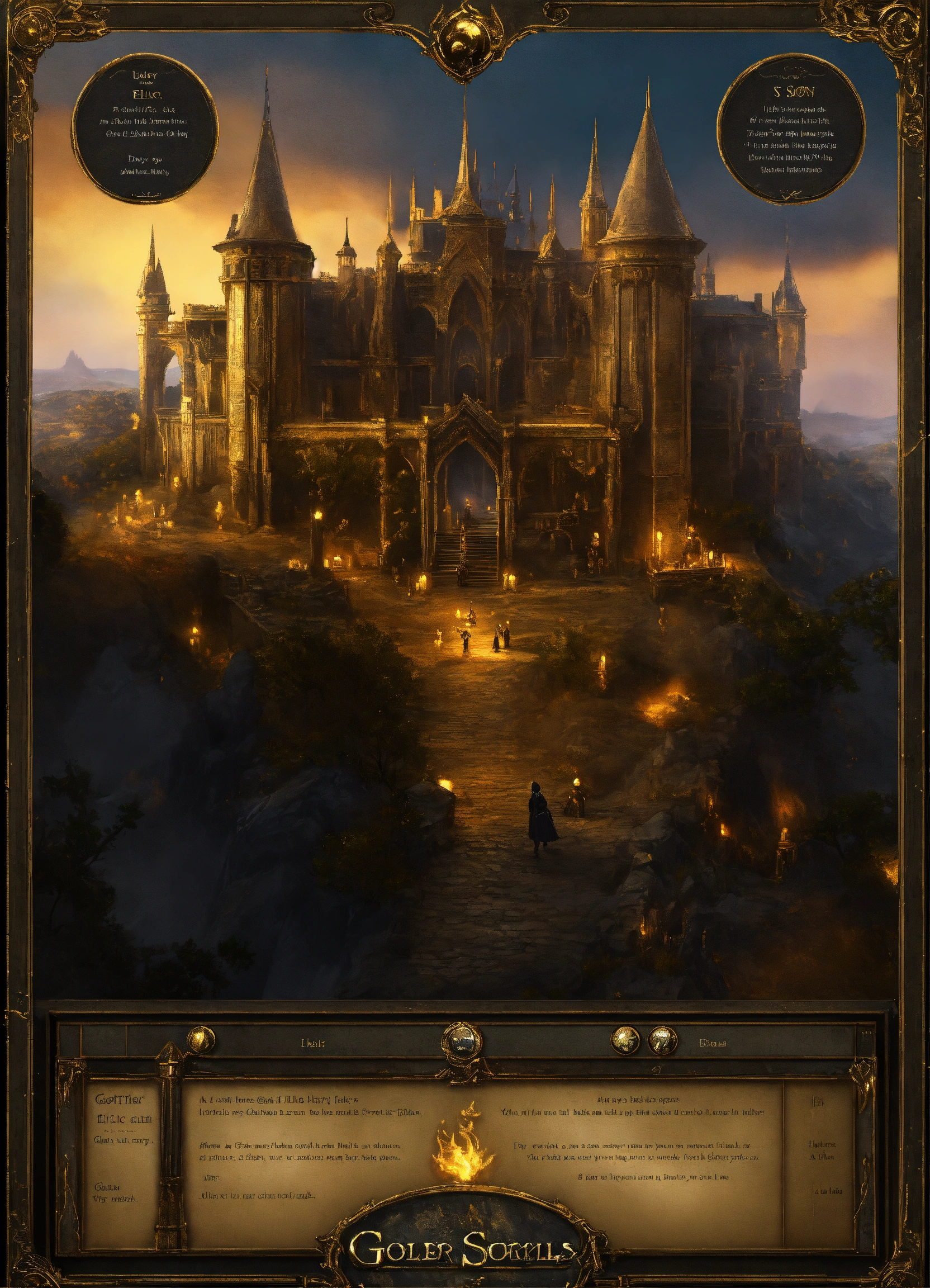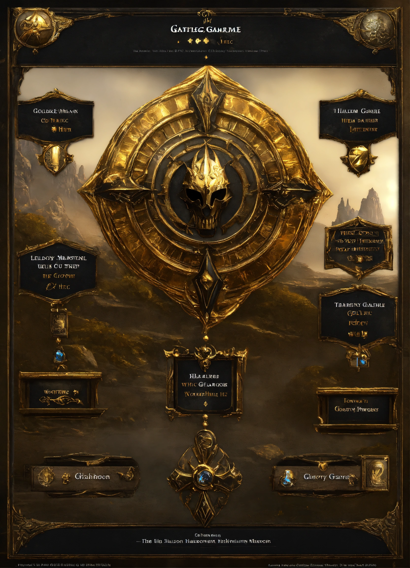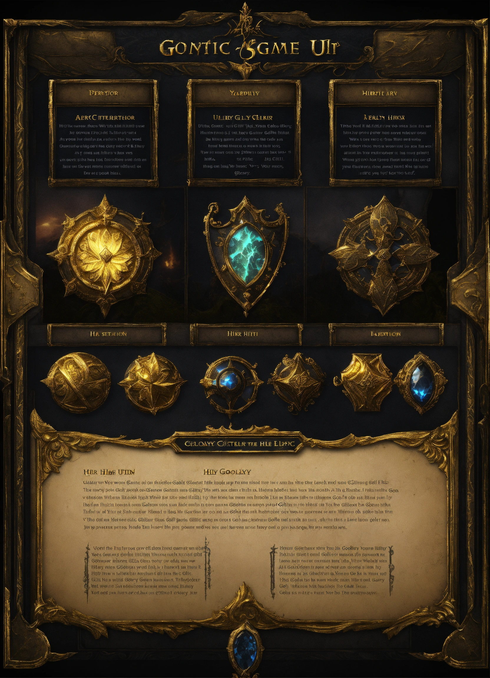 Gothic game ui design, the elder scrolls, fantasy, heroic, glory, epic, ultra high detail, 8 k, golden, black, jewels