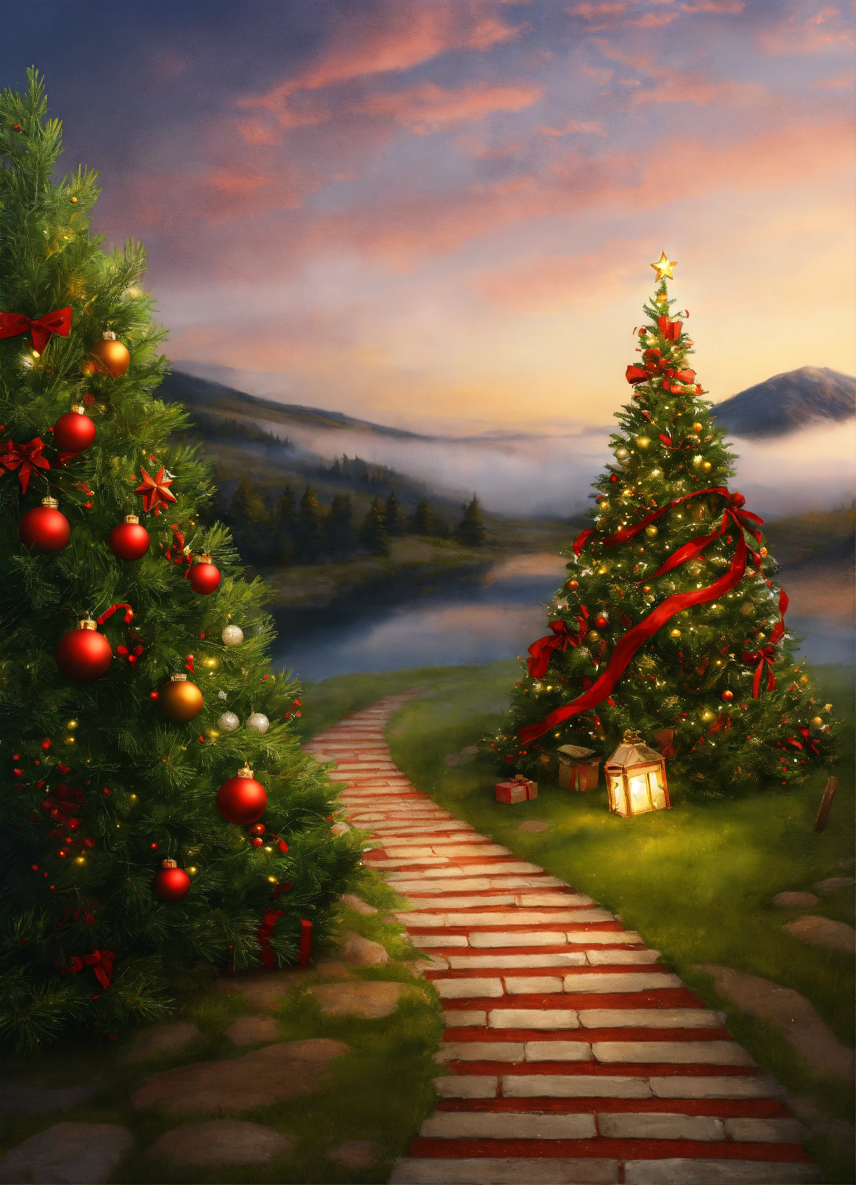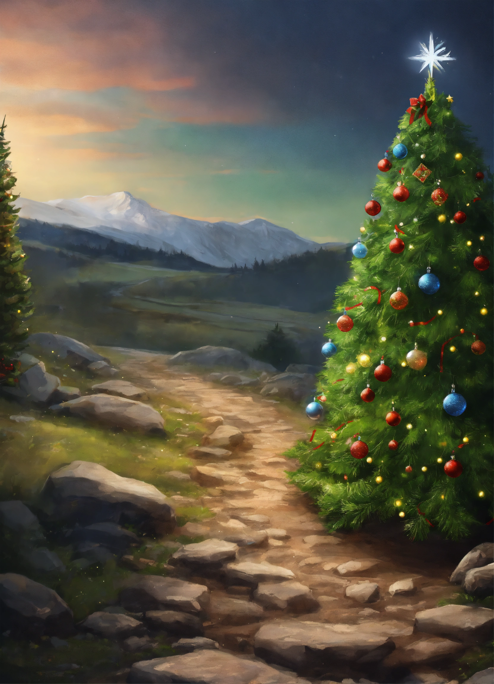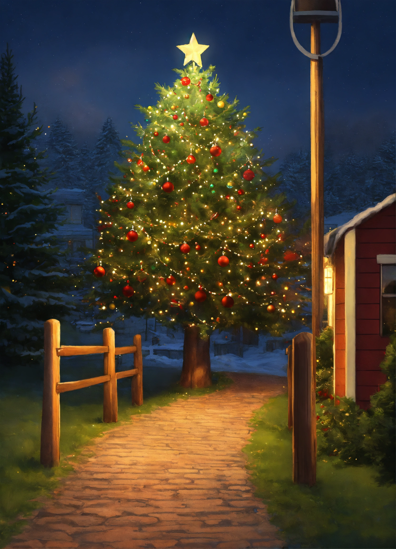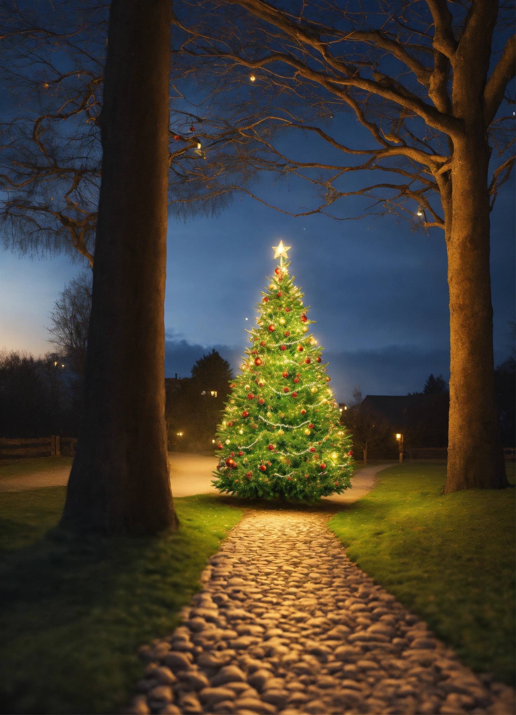 Path blocked by a christmas tree