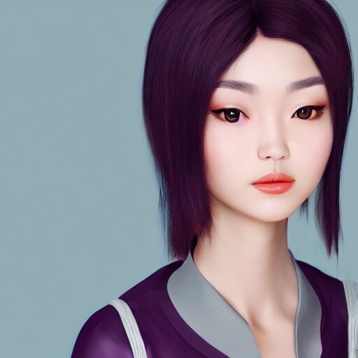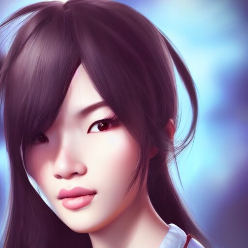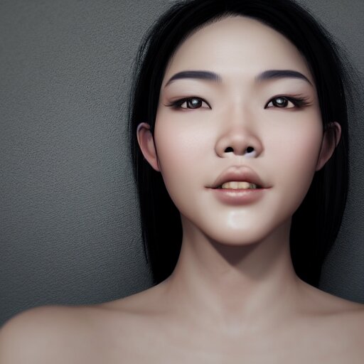 The most beautiful asian woman in the world, in the style of julia razumova, happy expression, cute, unreal engine, octane rendering, 8 k, closeup headshot, smooth, trending on artstation, digital illustration, black hair
