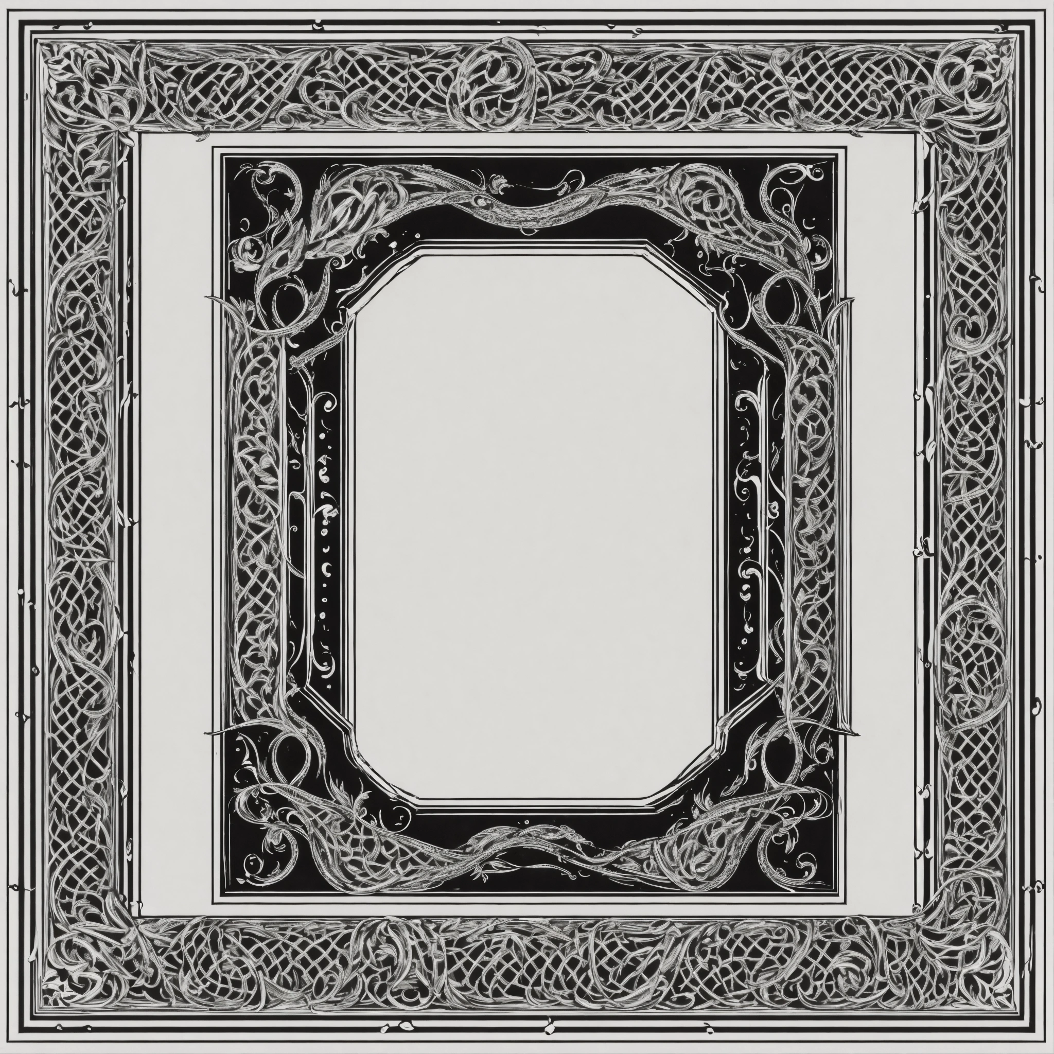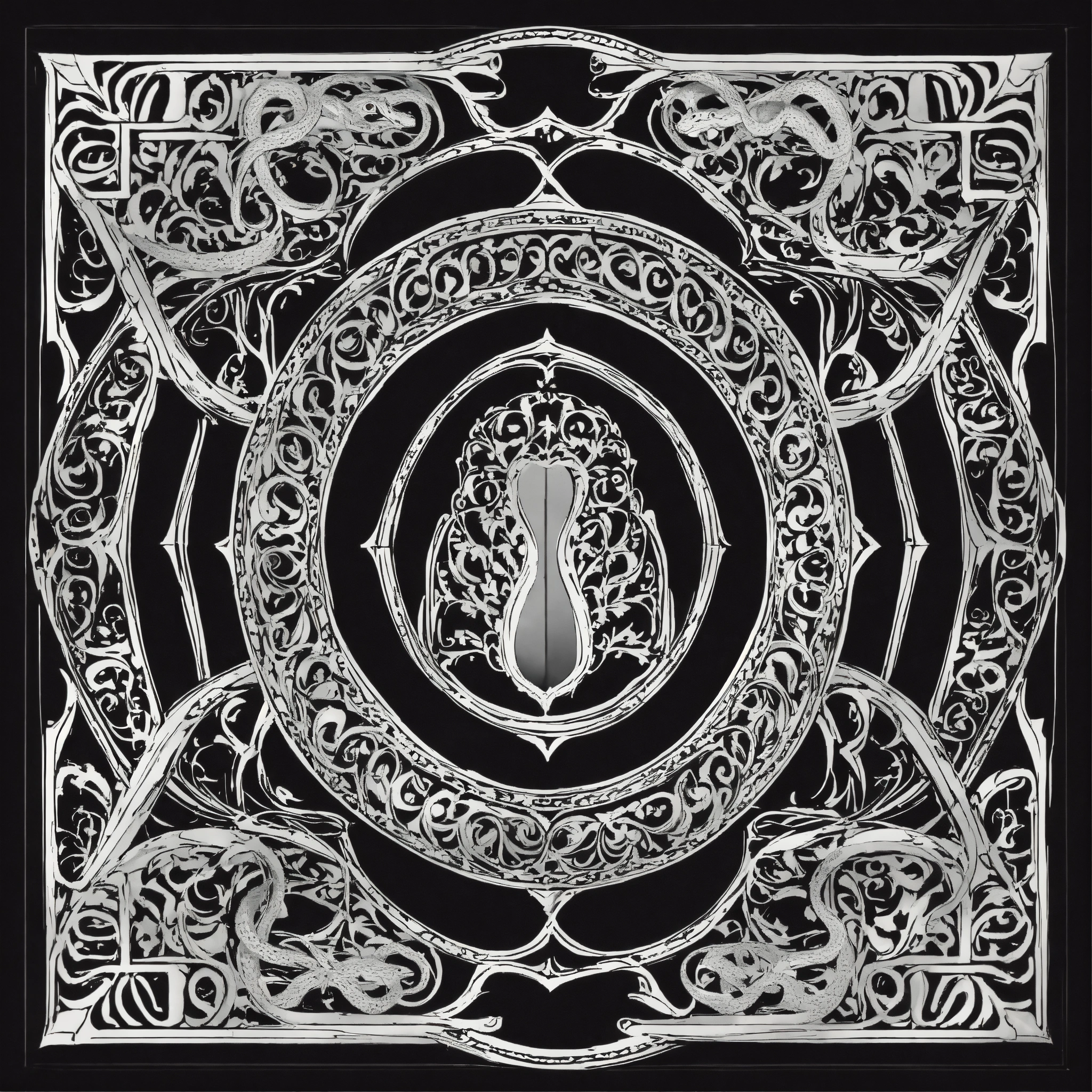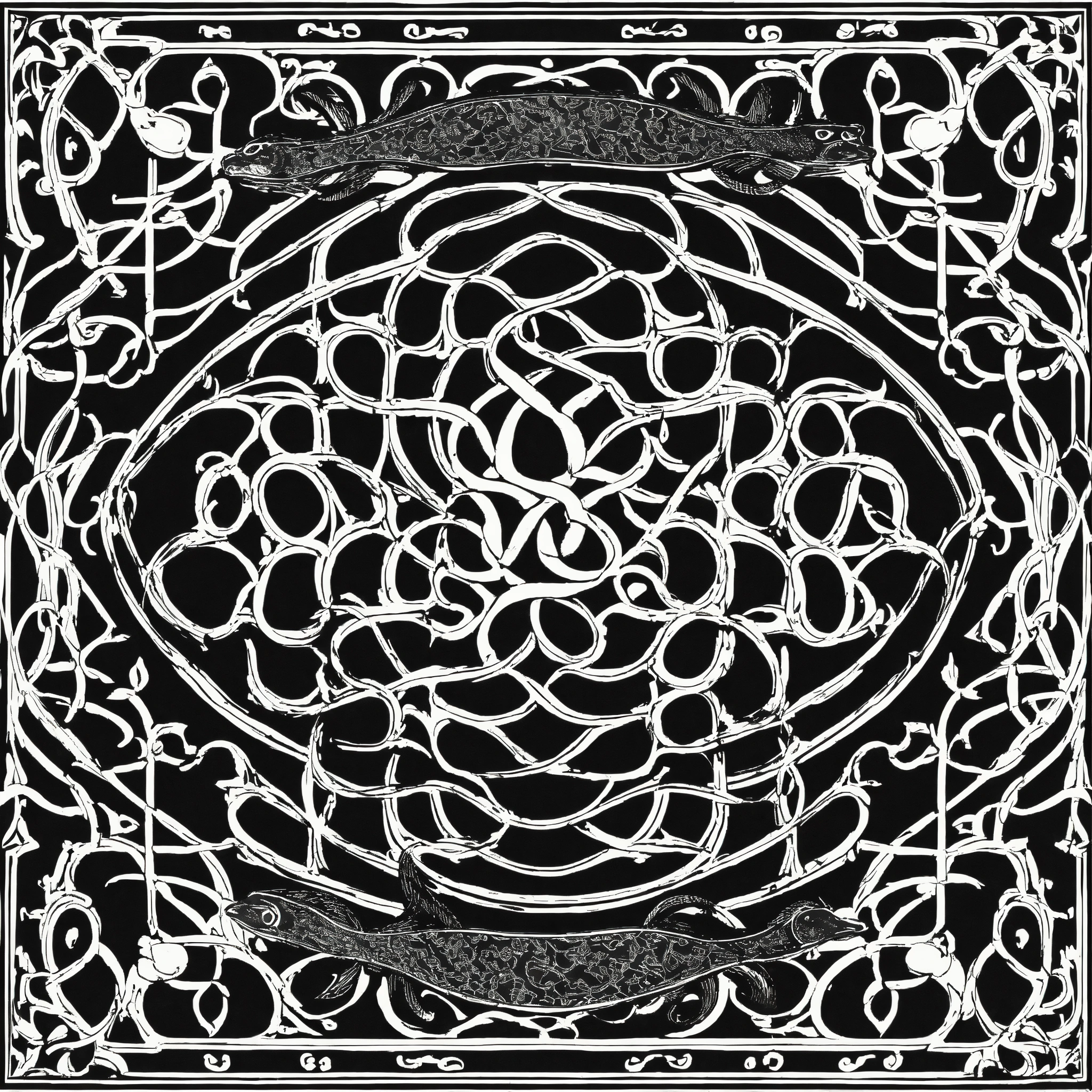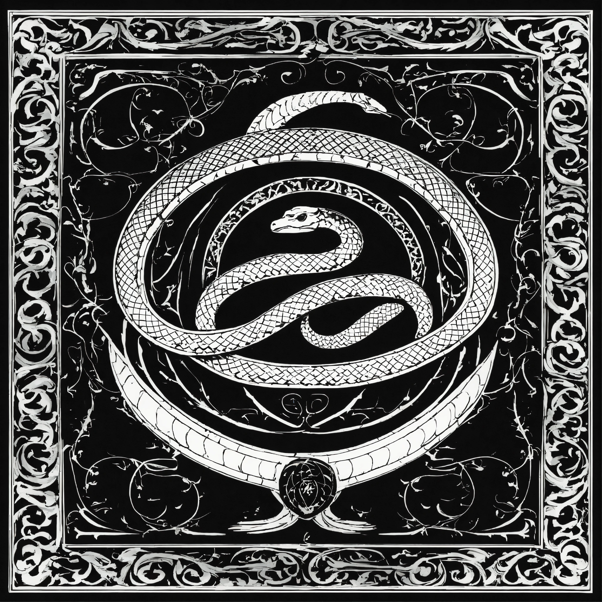 Black and white thin gothic ornament in the form of a straight line in the shape of a snake
