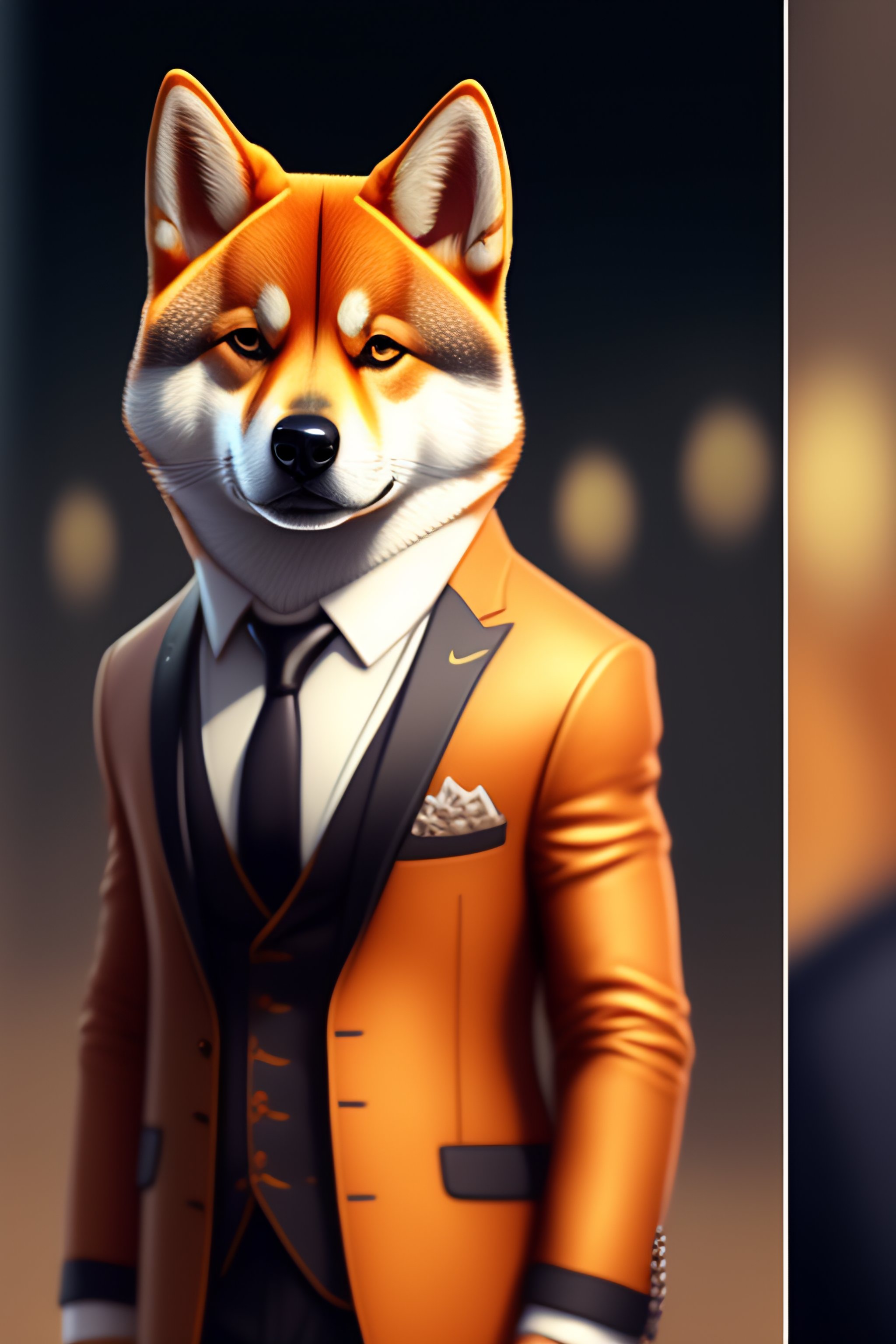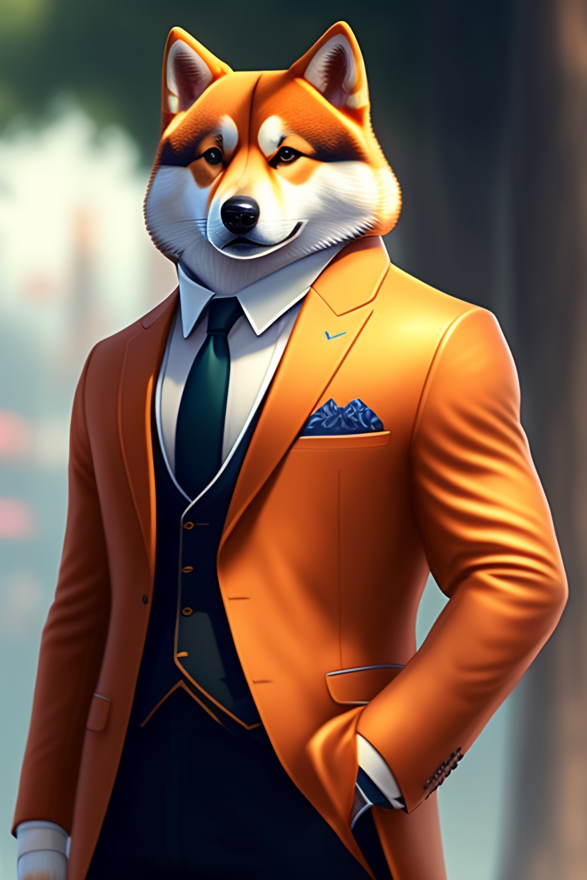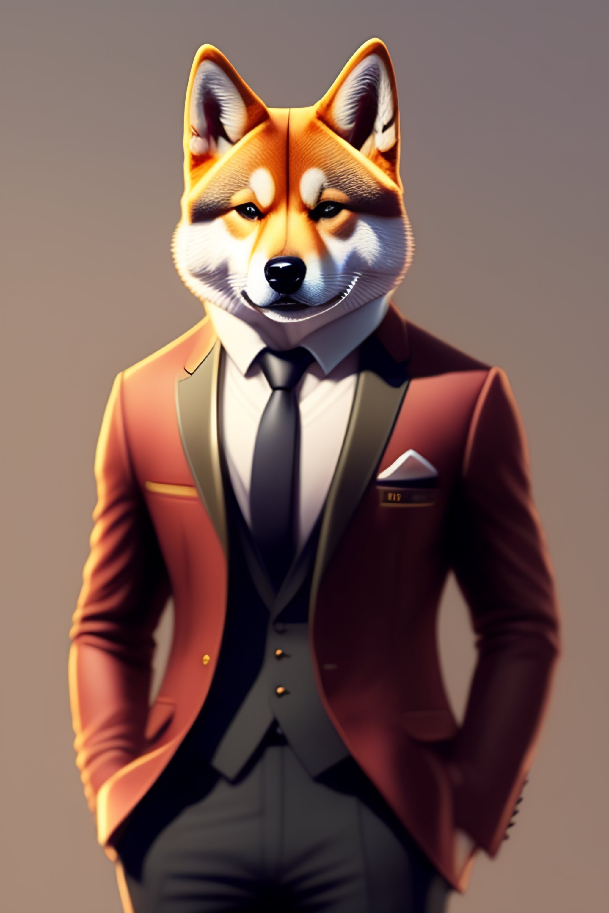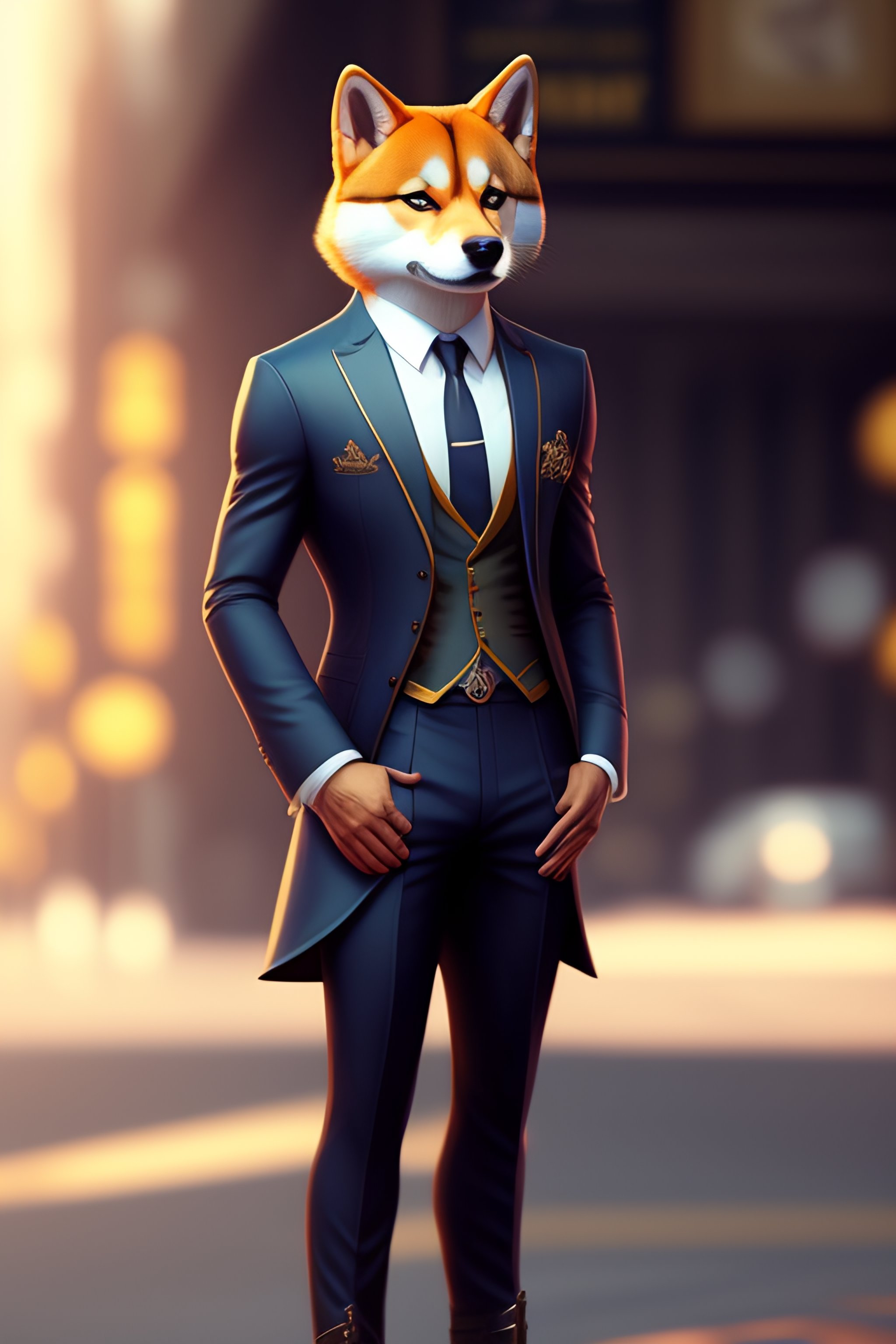 Anthro furry humanoid shiba inu, three piece suit, checking watch, character concept design, painting, detailed, vivid, trending on artstation