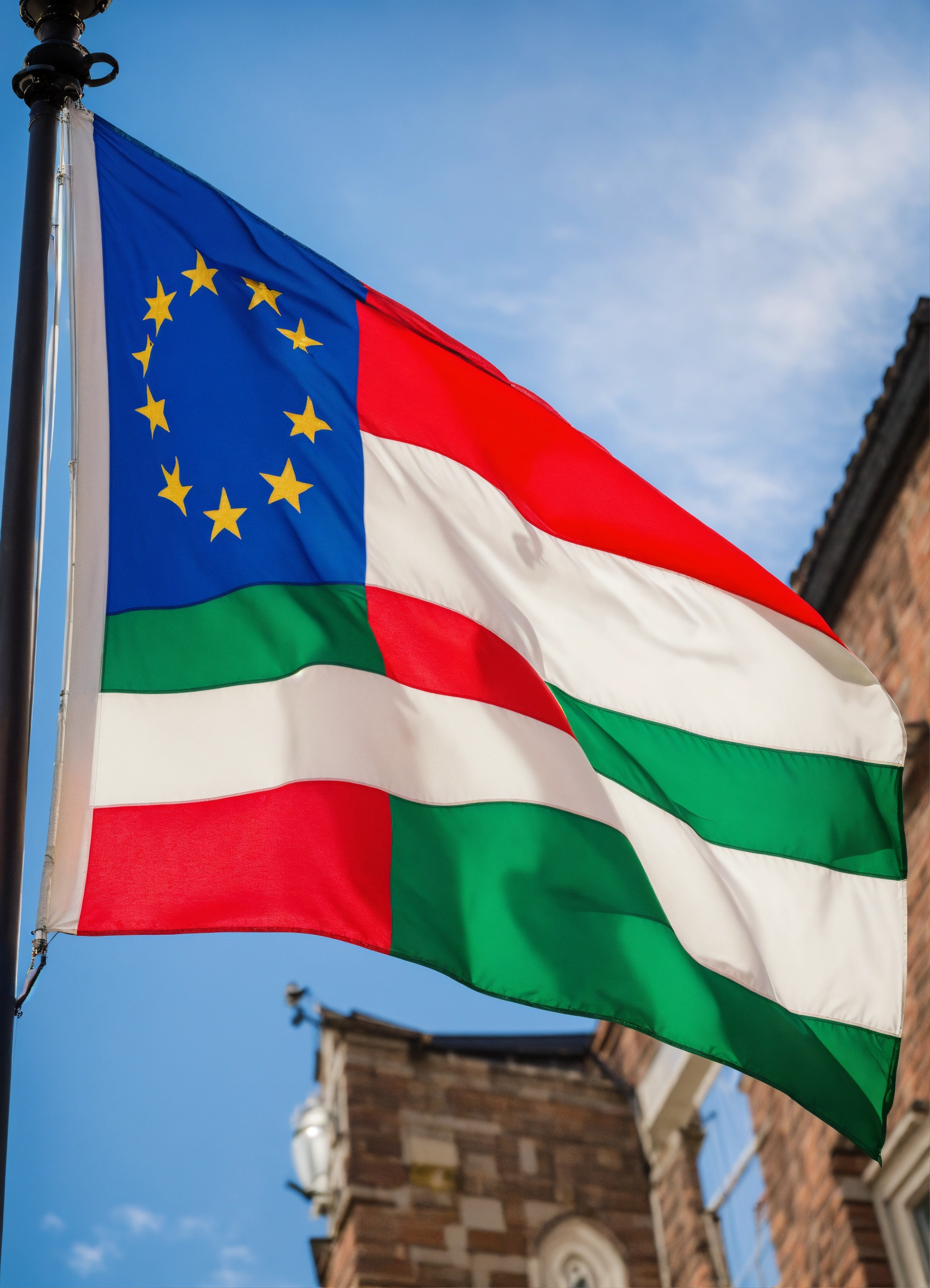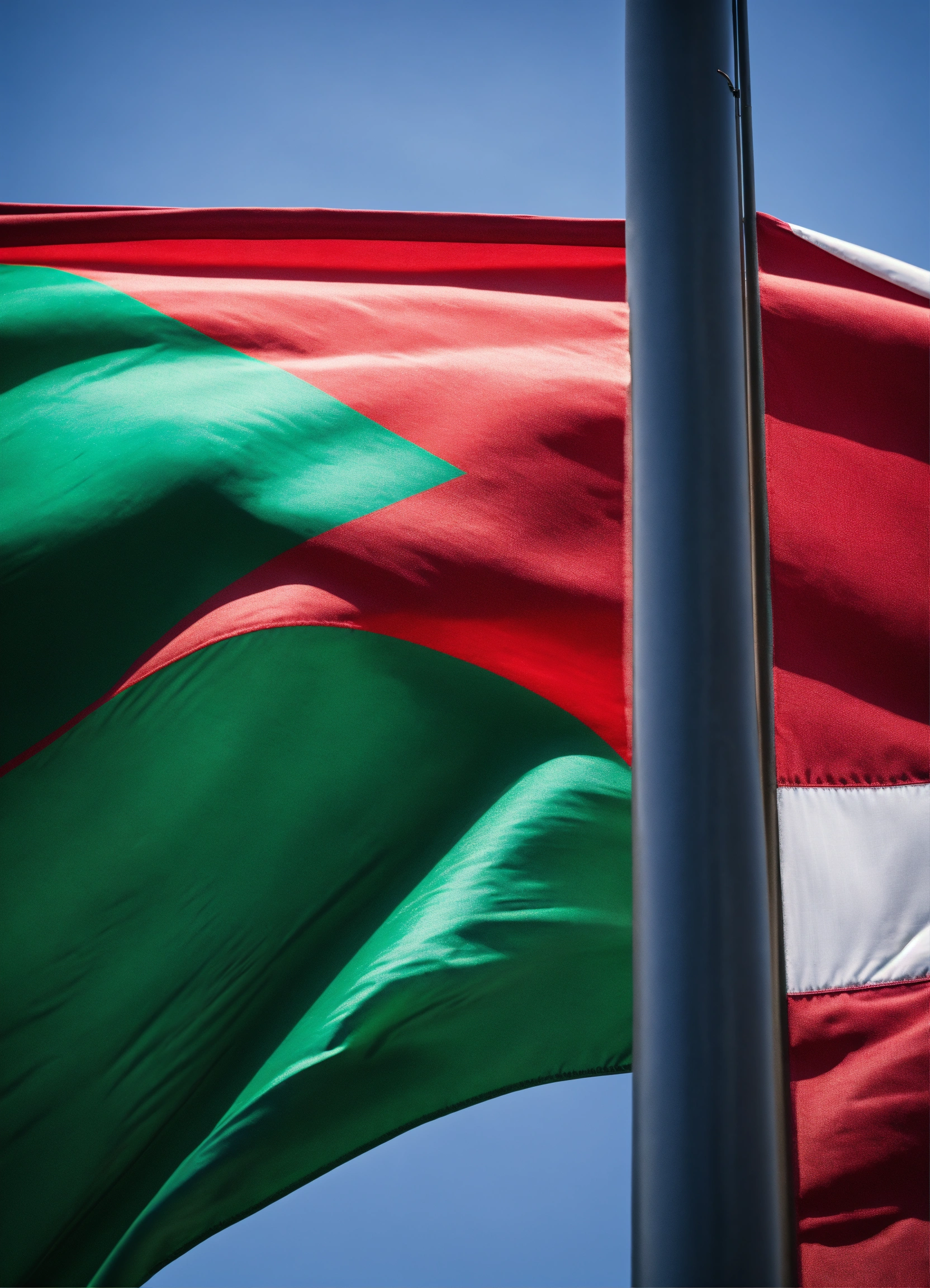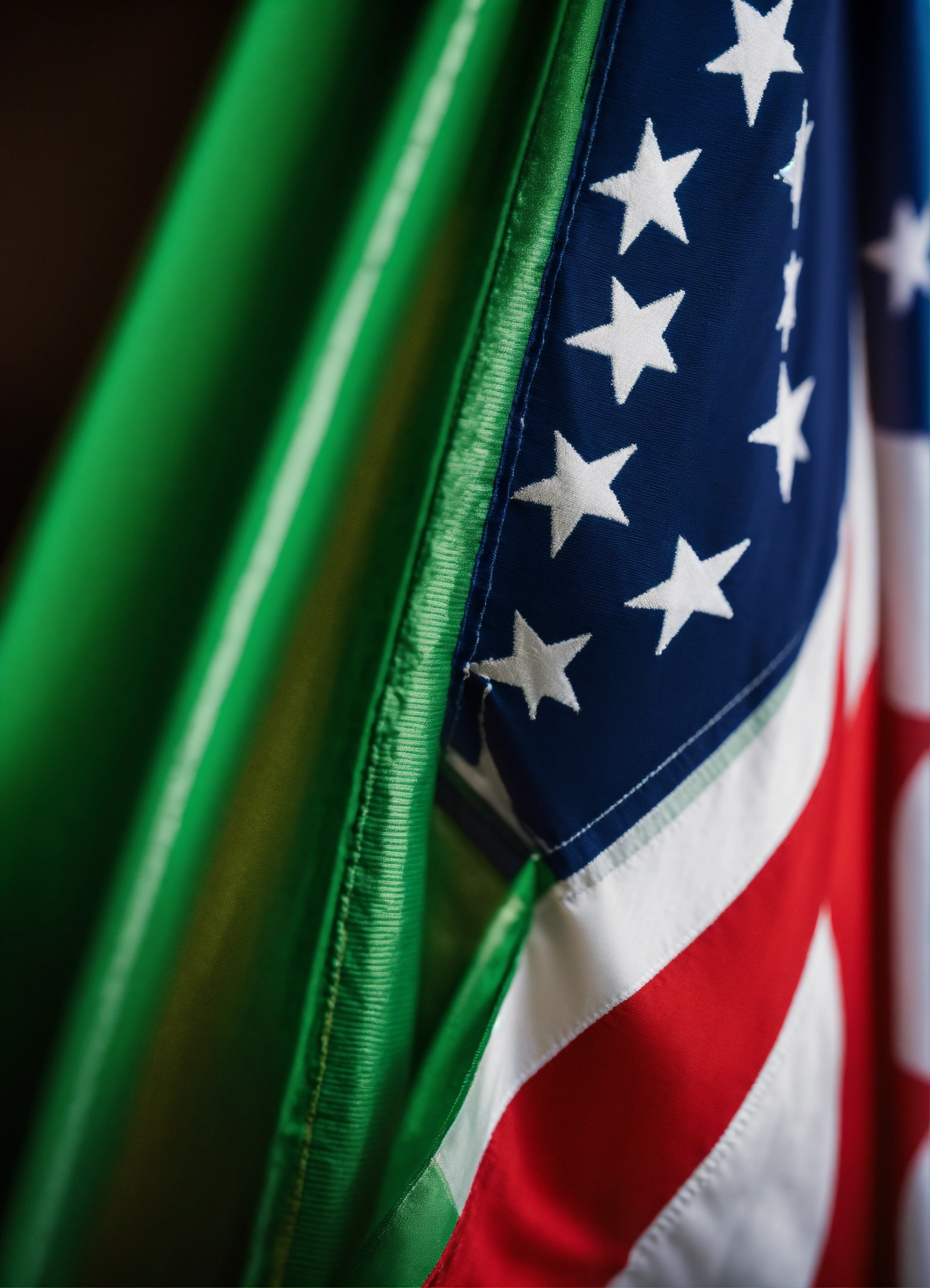 A flag, with the colors green, red and white, with the letters ffc sony fe 24-lens 70mm f/2.8 gm to ensure excellent detail and realistic photo quality, 8k, cmyk + --s 900 --style raw --ar 169