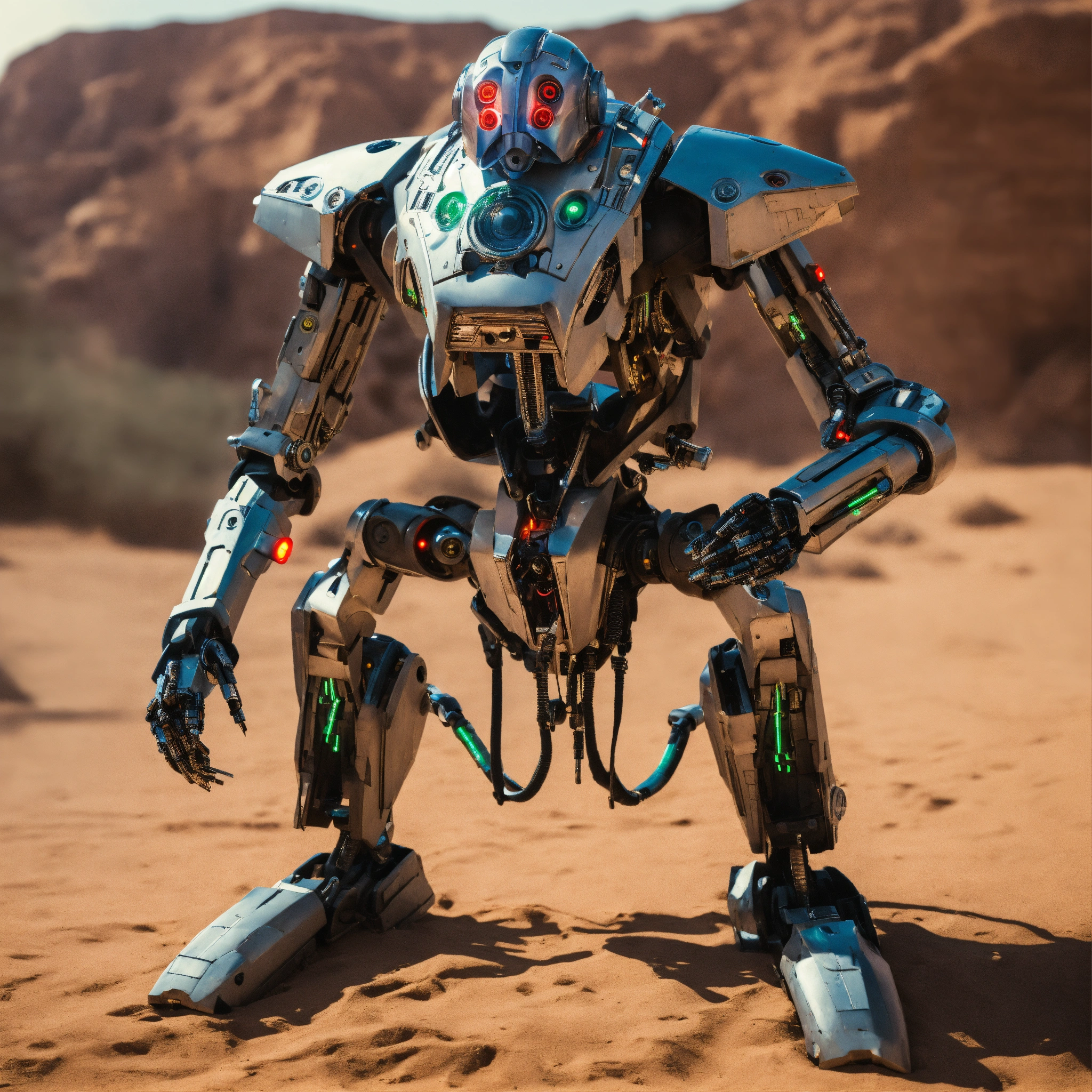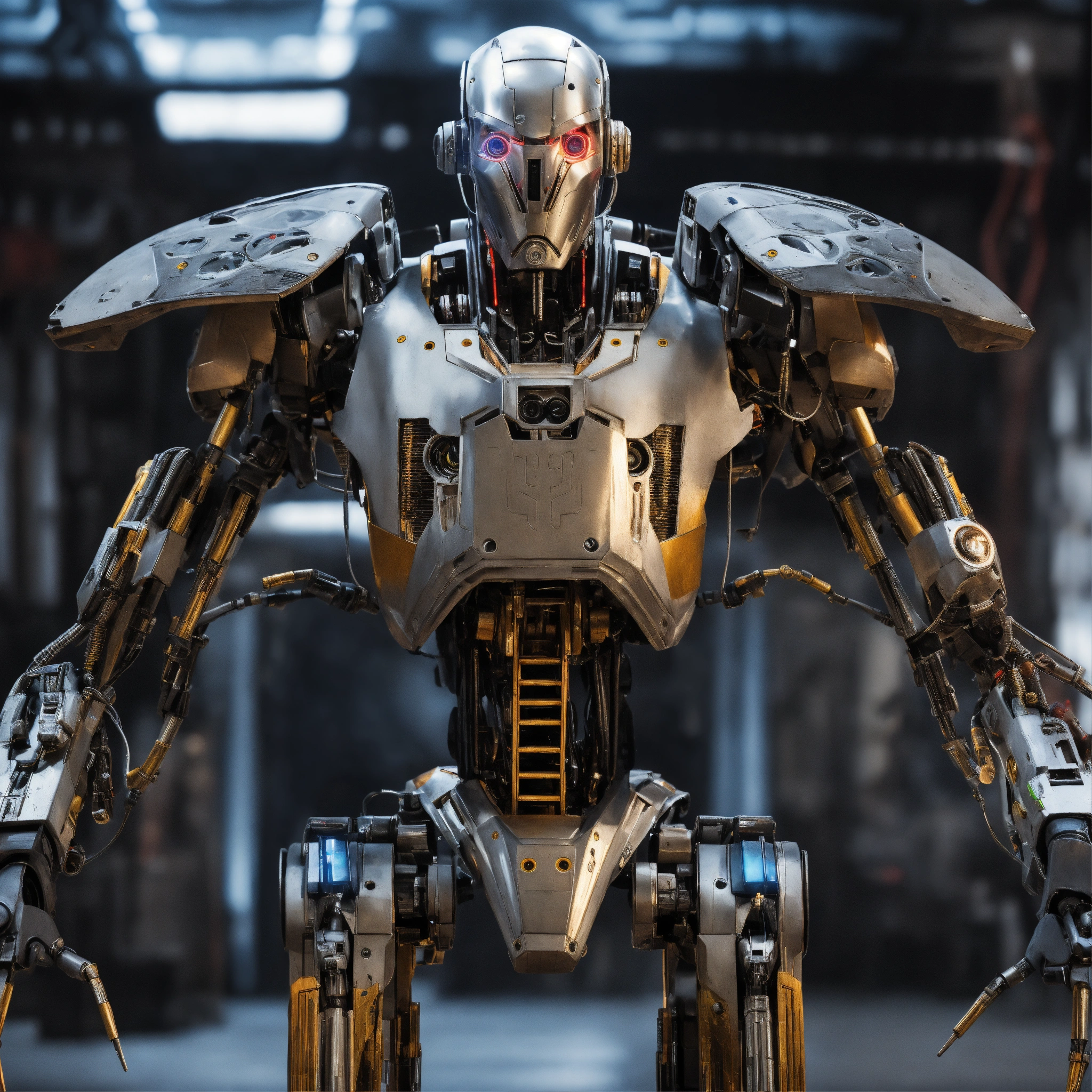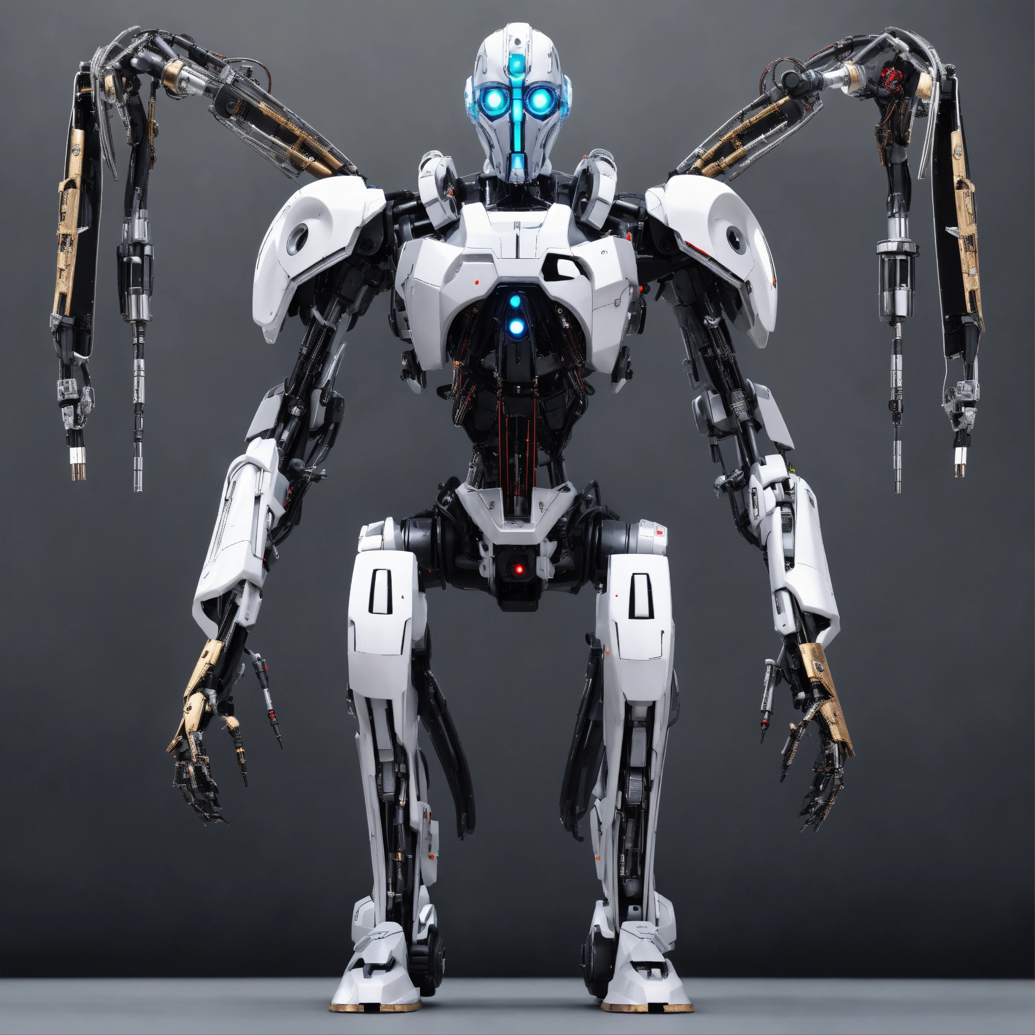 Cyborg with sample mechanisms, human eyes, like general grievous star wars, with robotic mask, four arms, killer robot