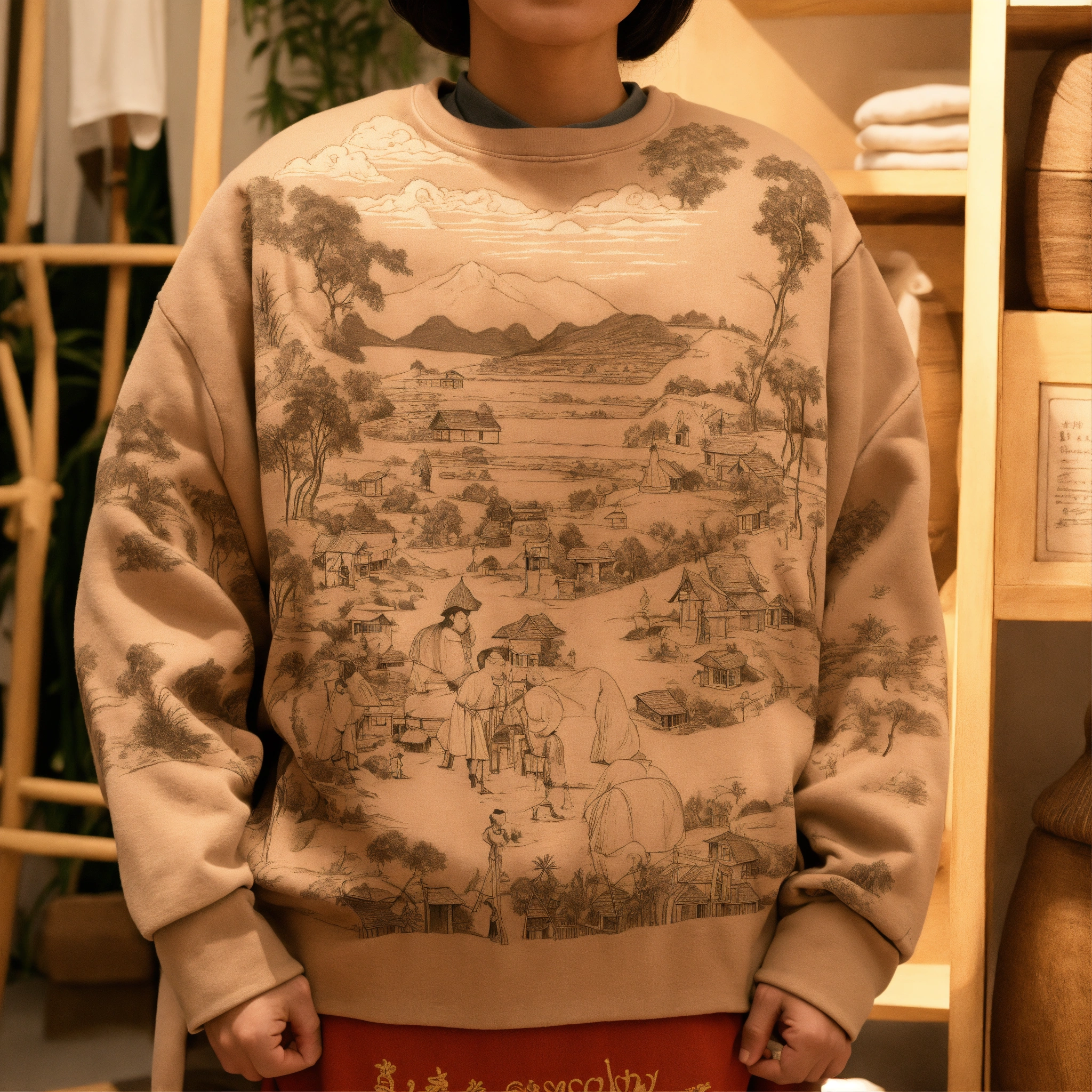 Drawing on a sweatshirt, combine scenes of massage from different historical eras to show how massage has been an integral part of various cultures and societies throughout time