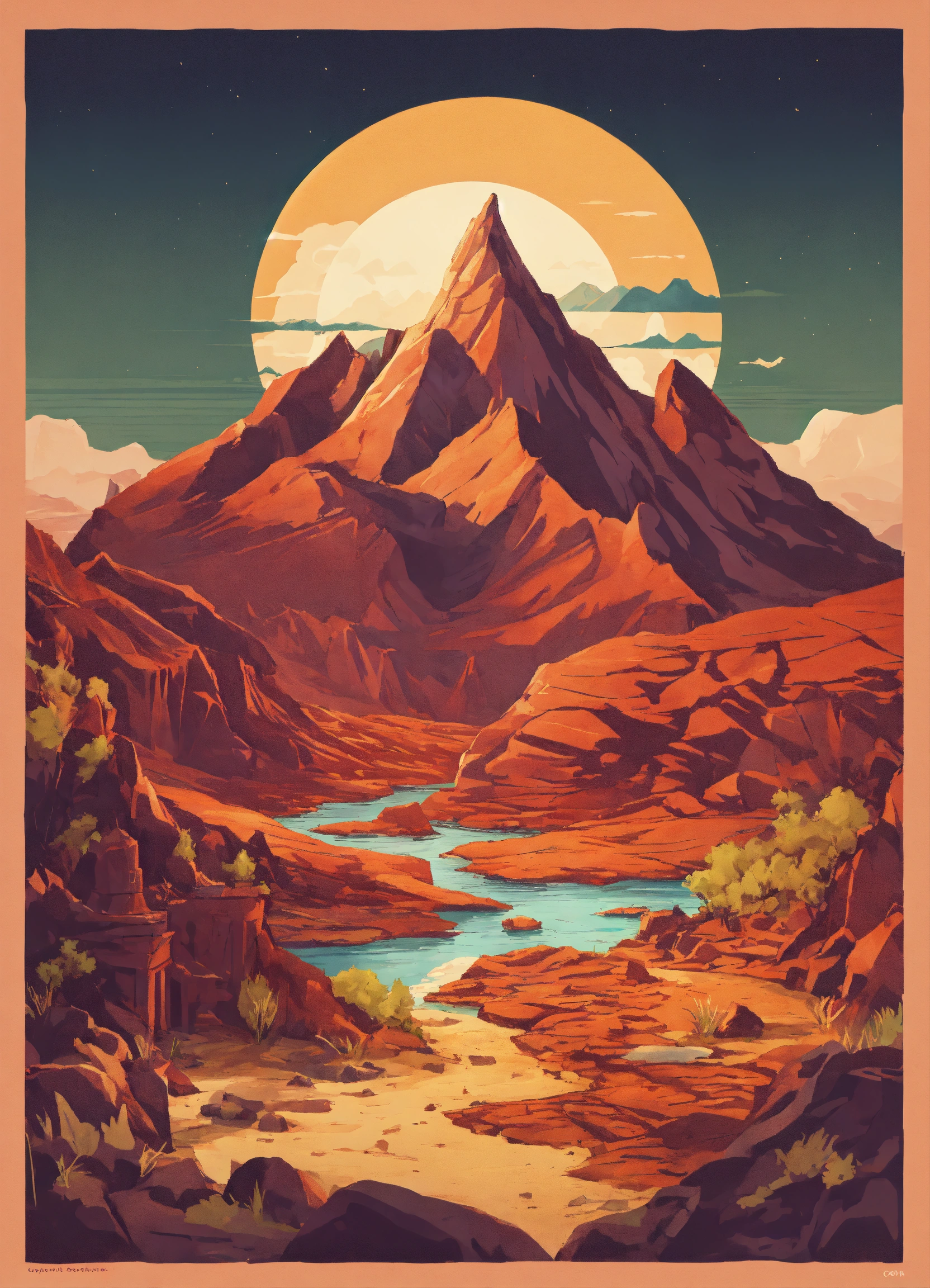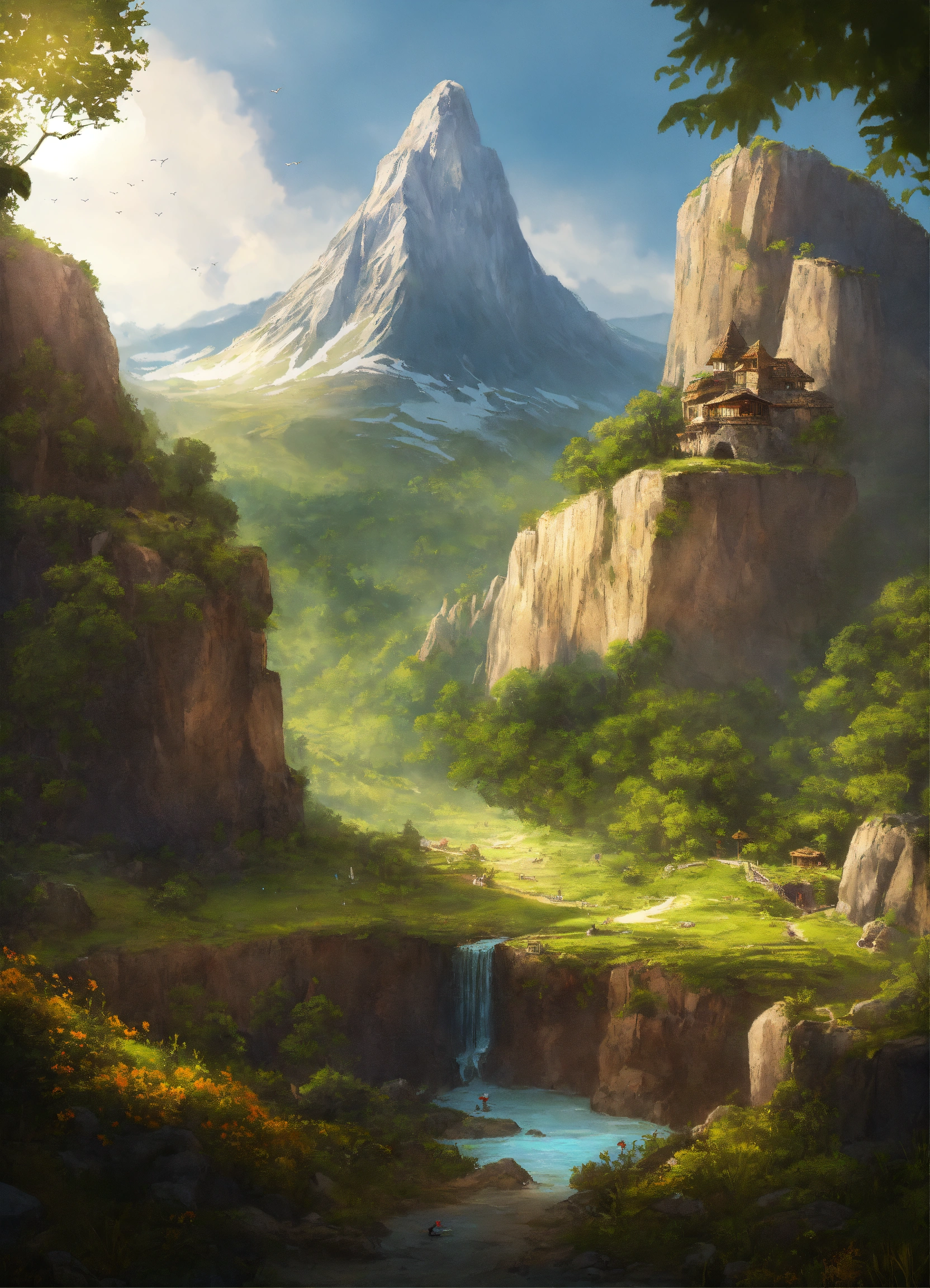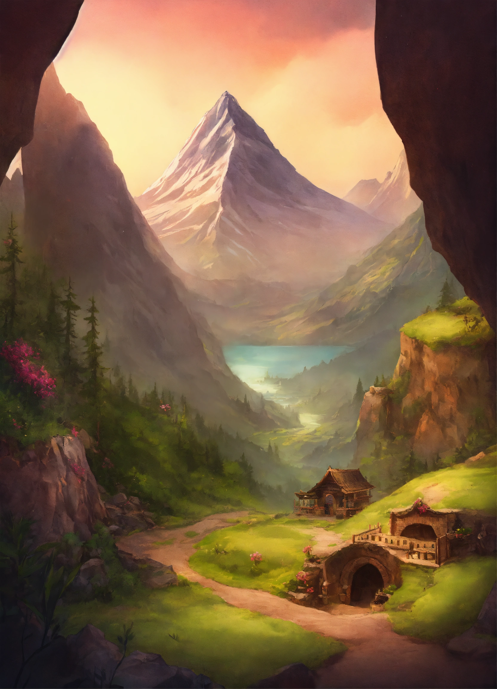 Captivating cocver design view background to the upper right, we see one mountain, with a cave near the top.