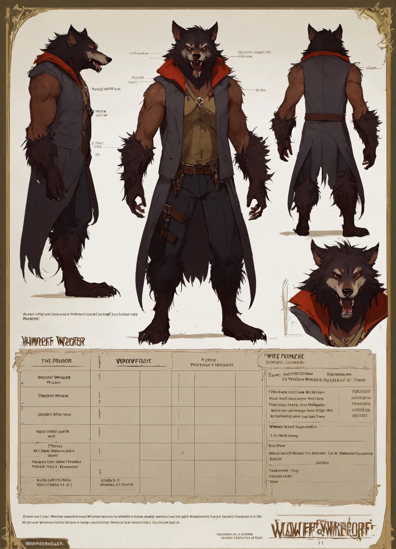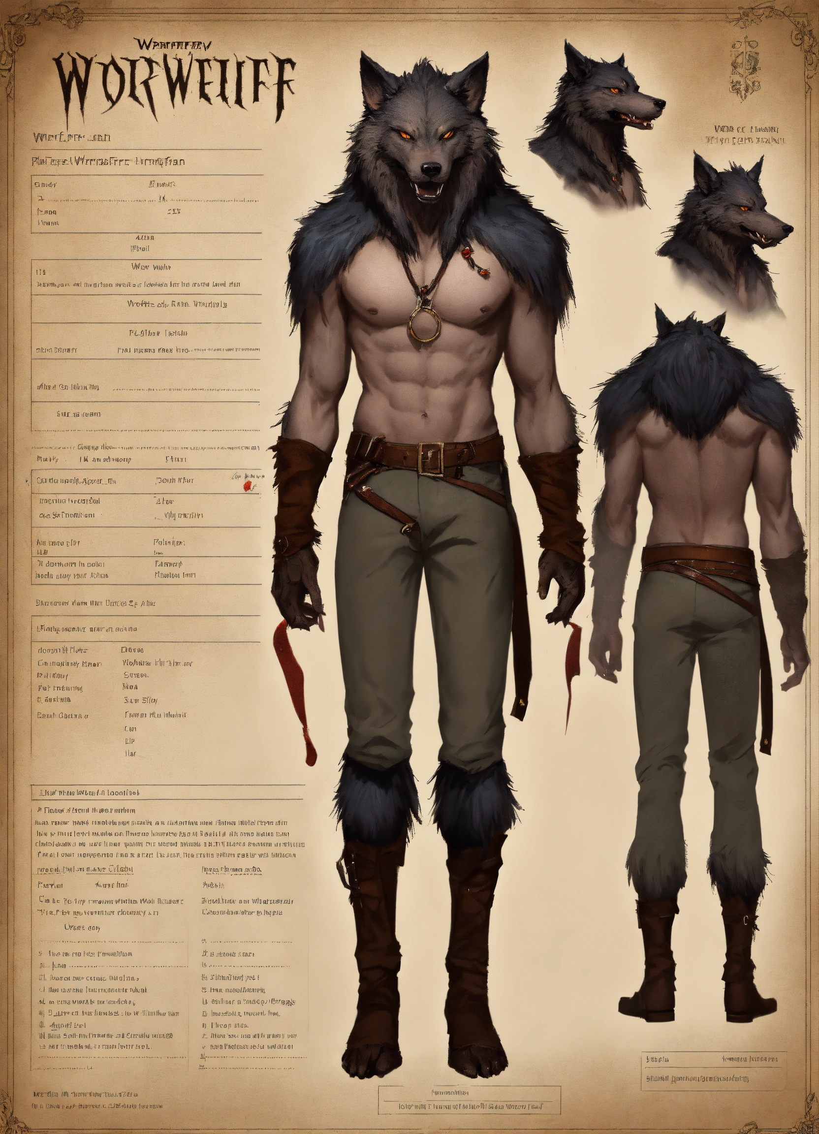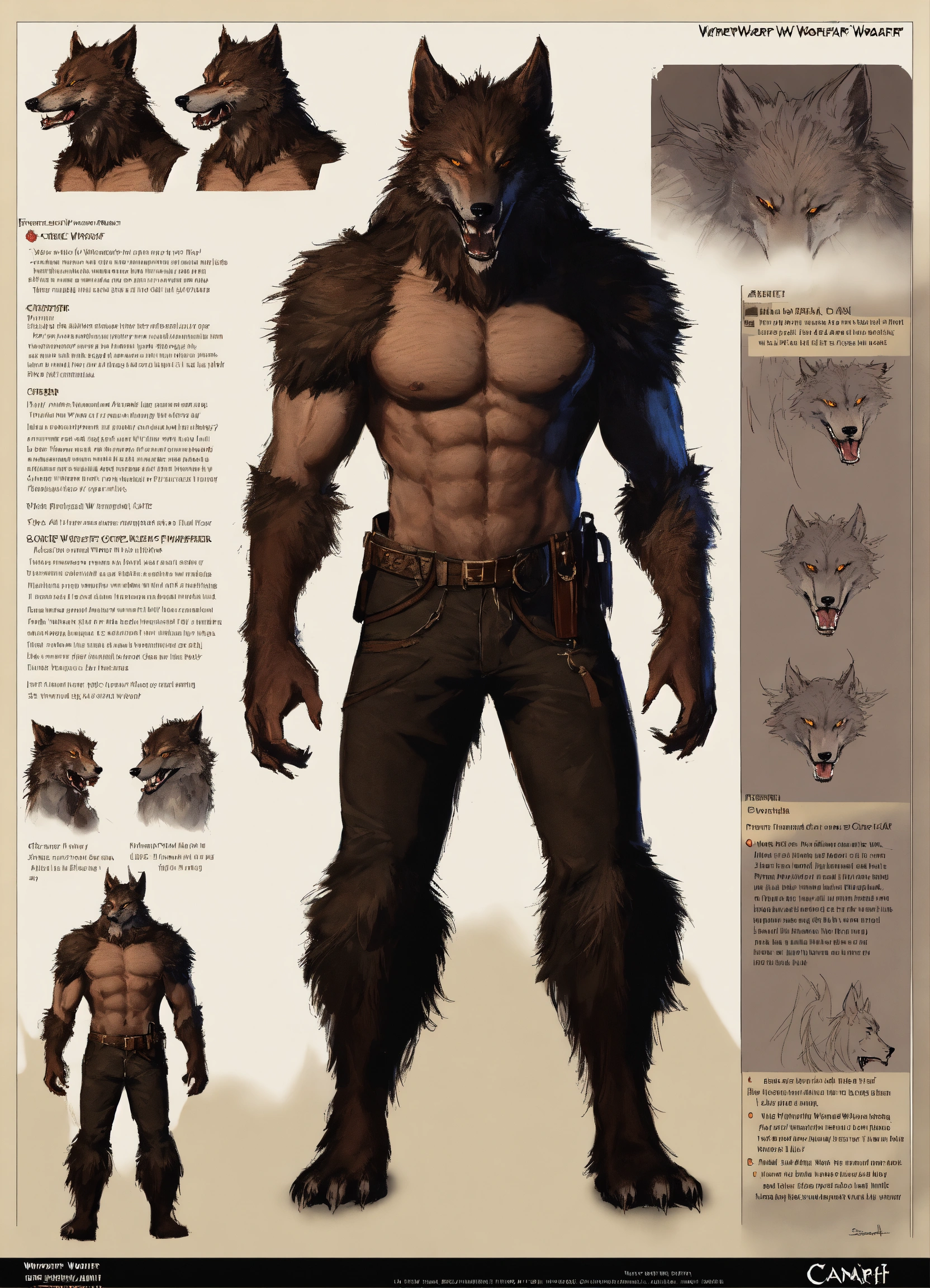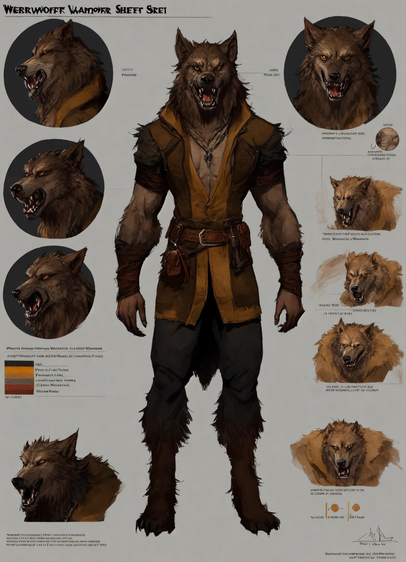 Werewolf vampire, character sheet, character design, chart, reference sheet, multiple views, high detail, fine details, concept art