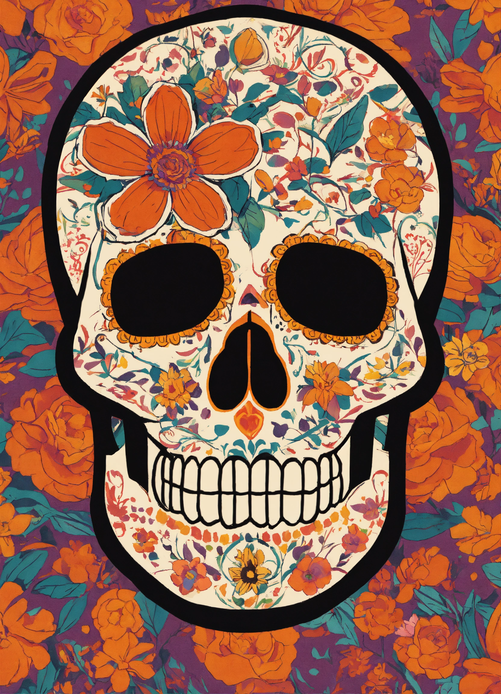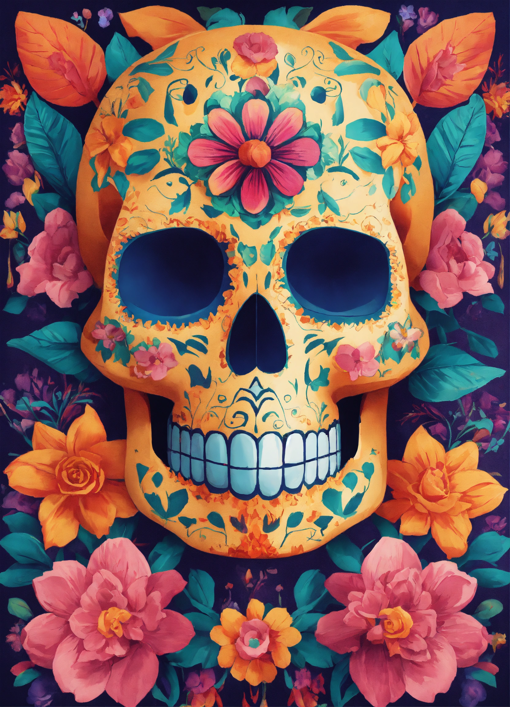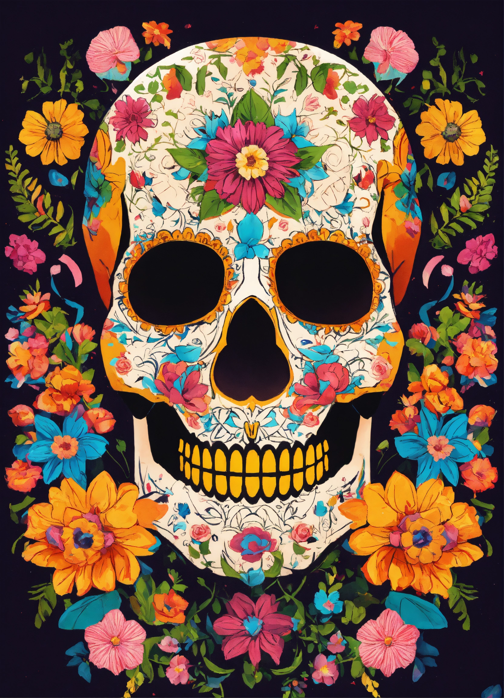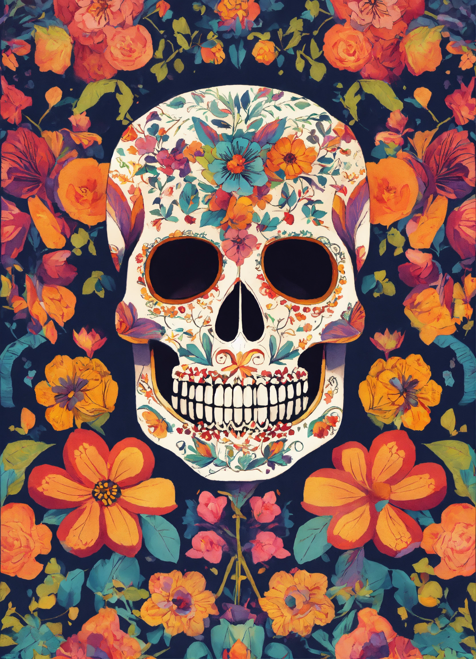 Calavera con flores estilo cubista