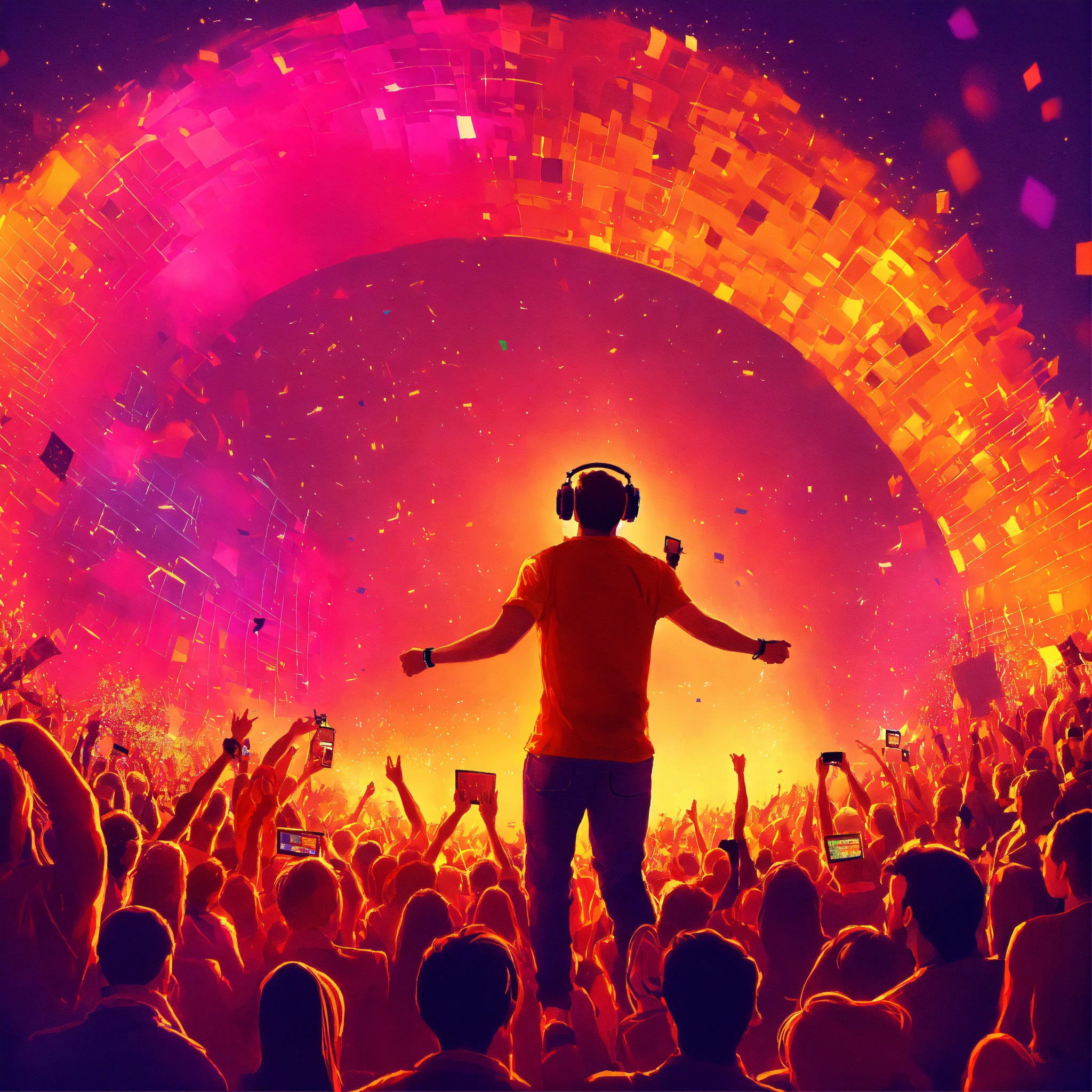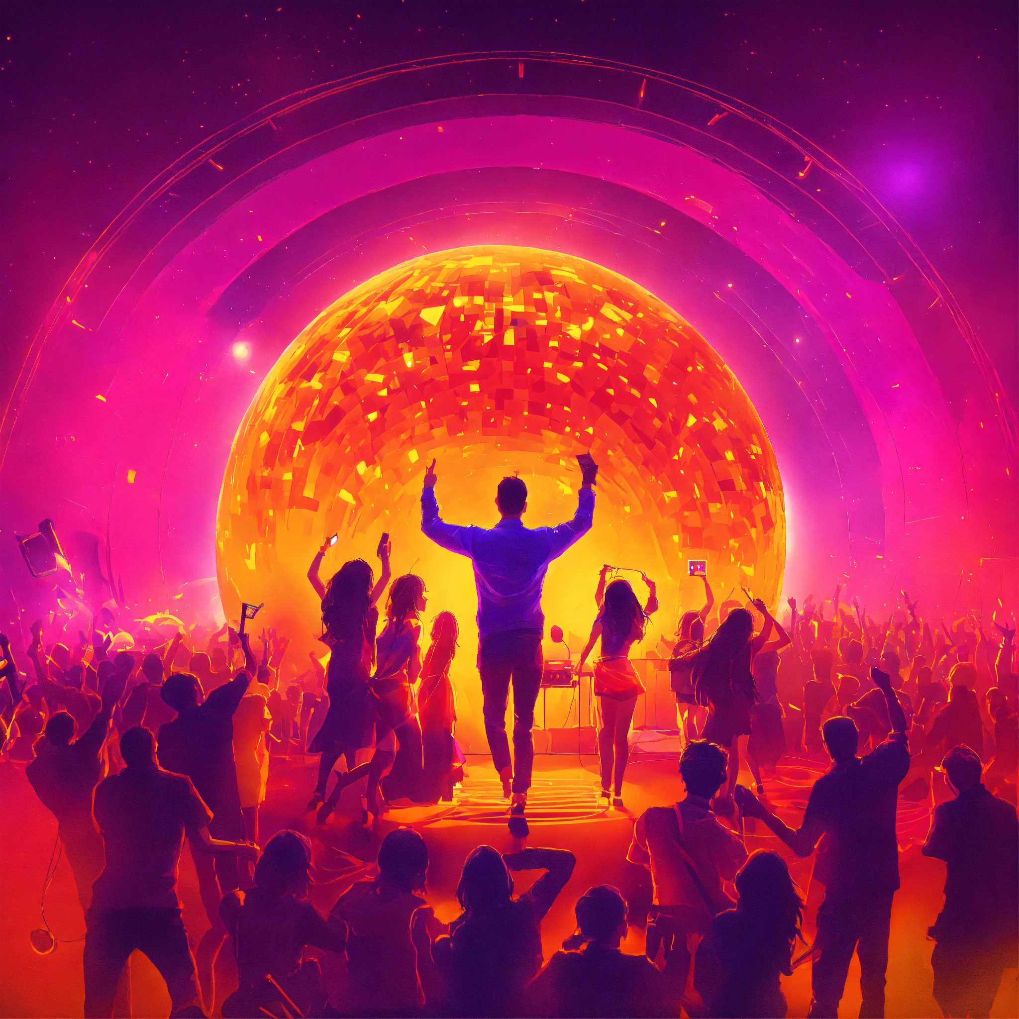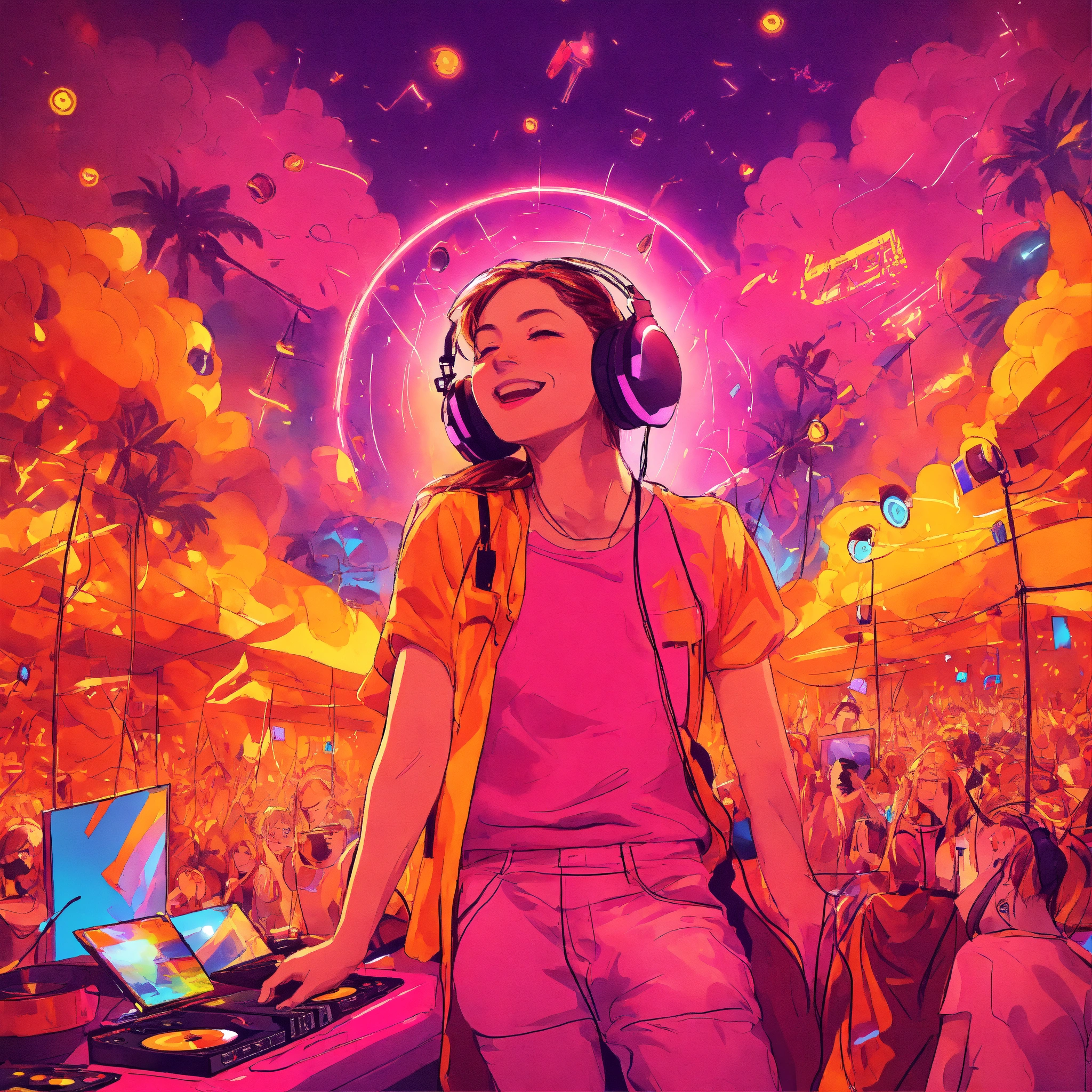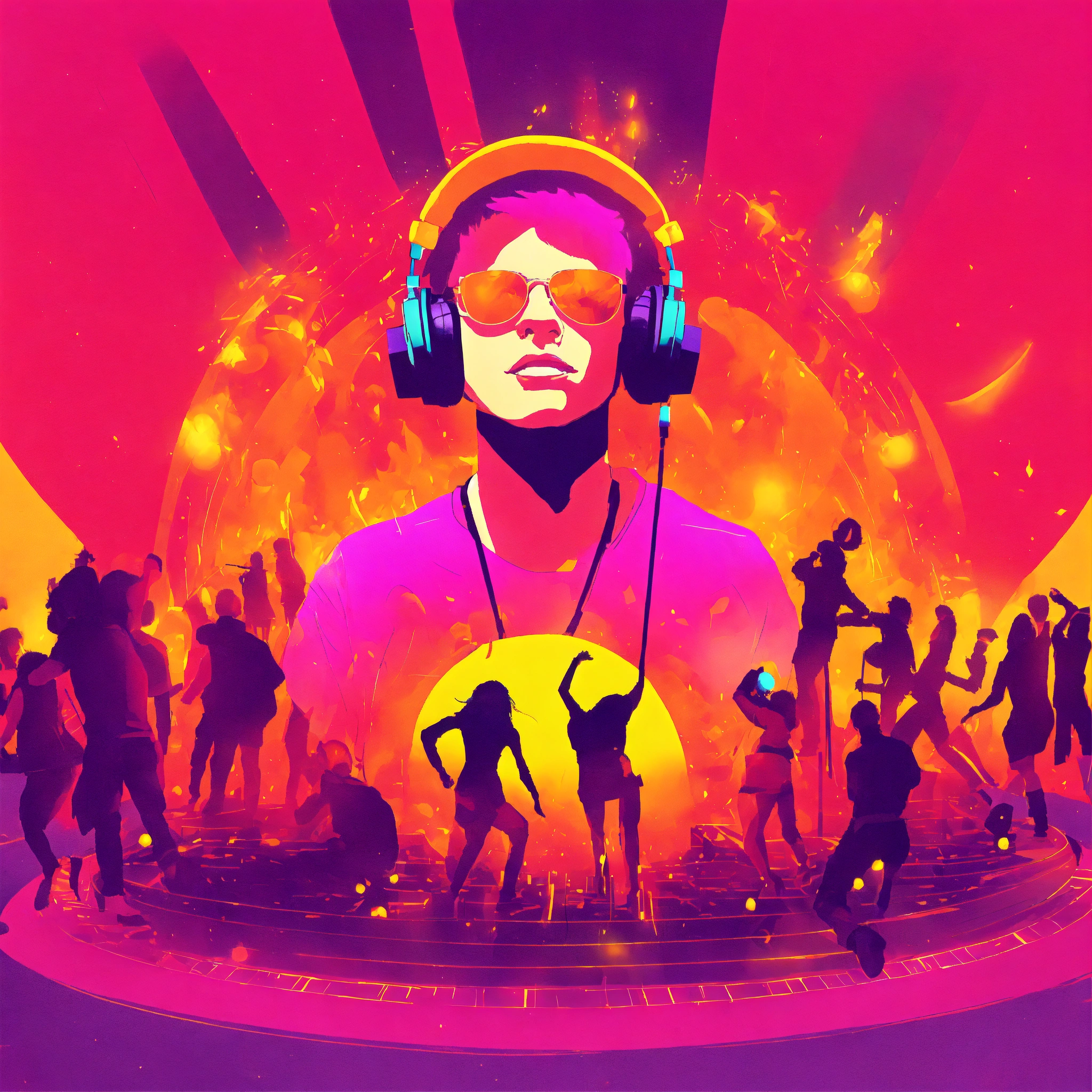 Ambition, relationships, confidence, fire, creativity, red, yellow, electronic music, festival, music, good career, be with good people, people dancing with the dj, puple, orange, pink, earth. people face happy with music, dj on the back