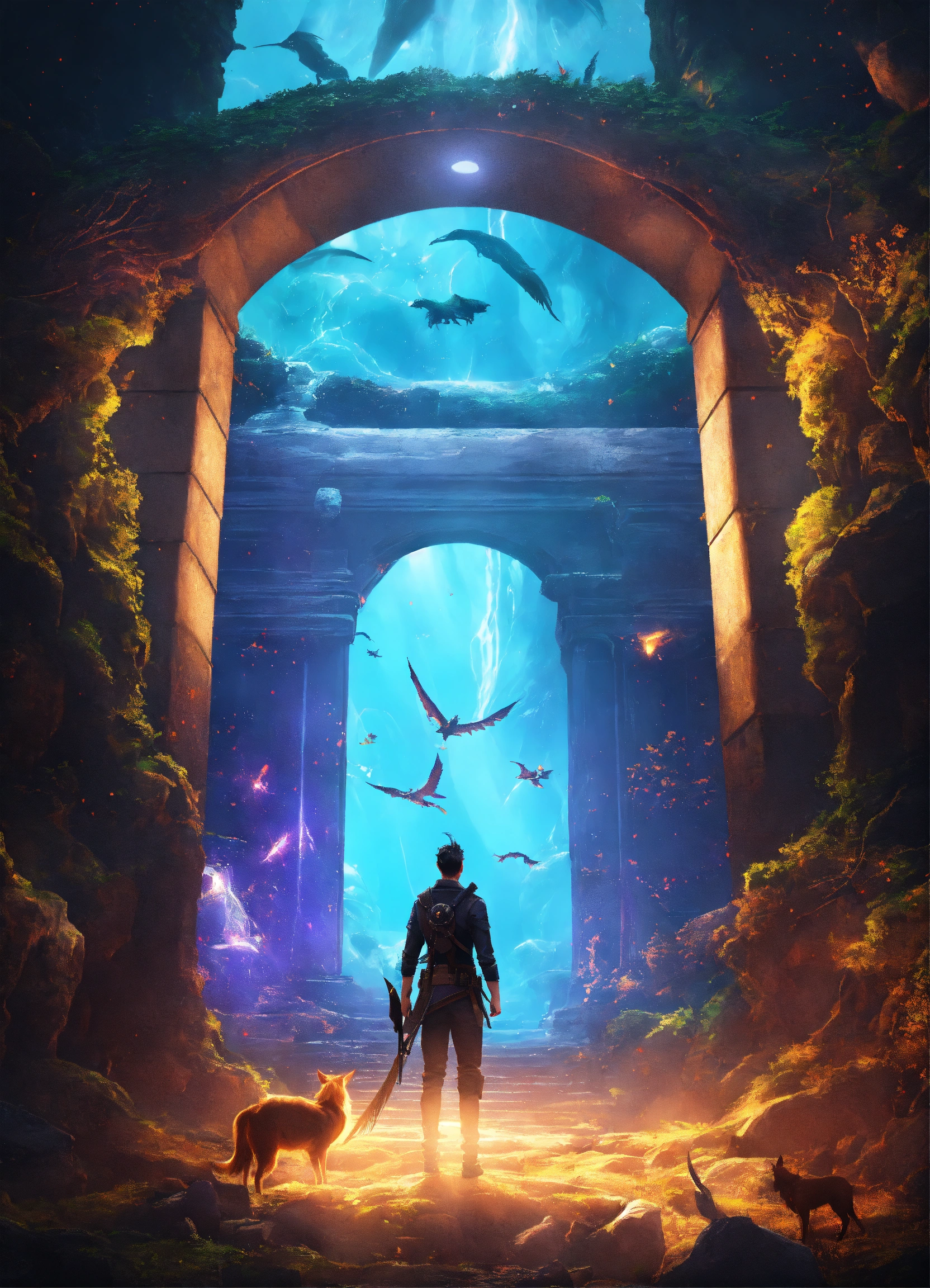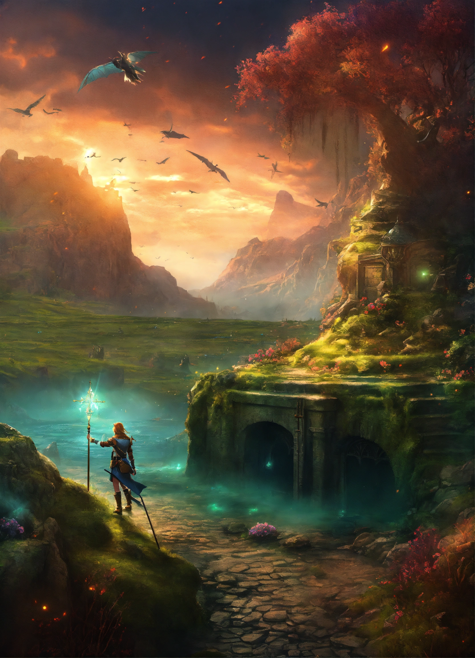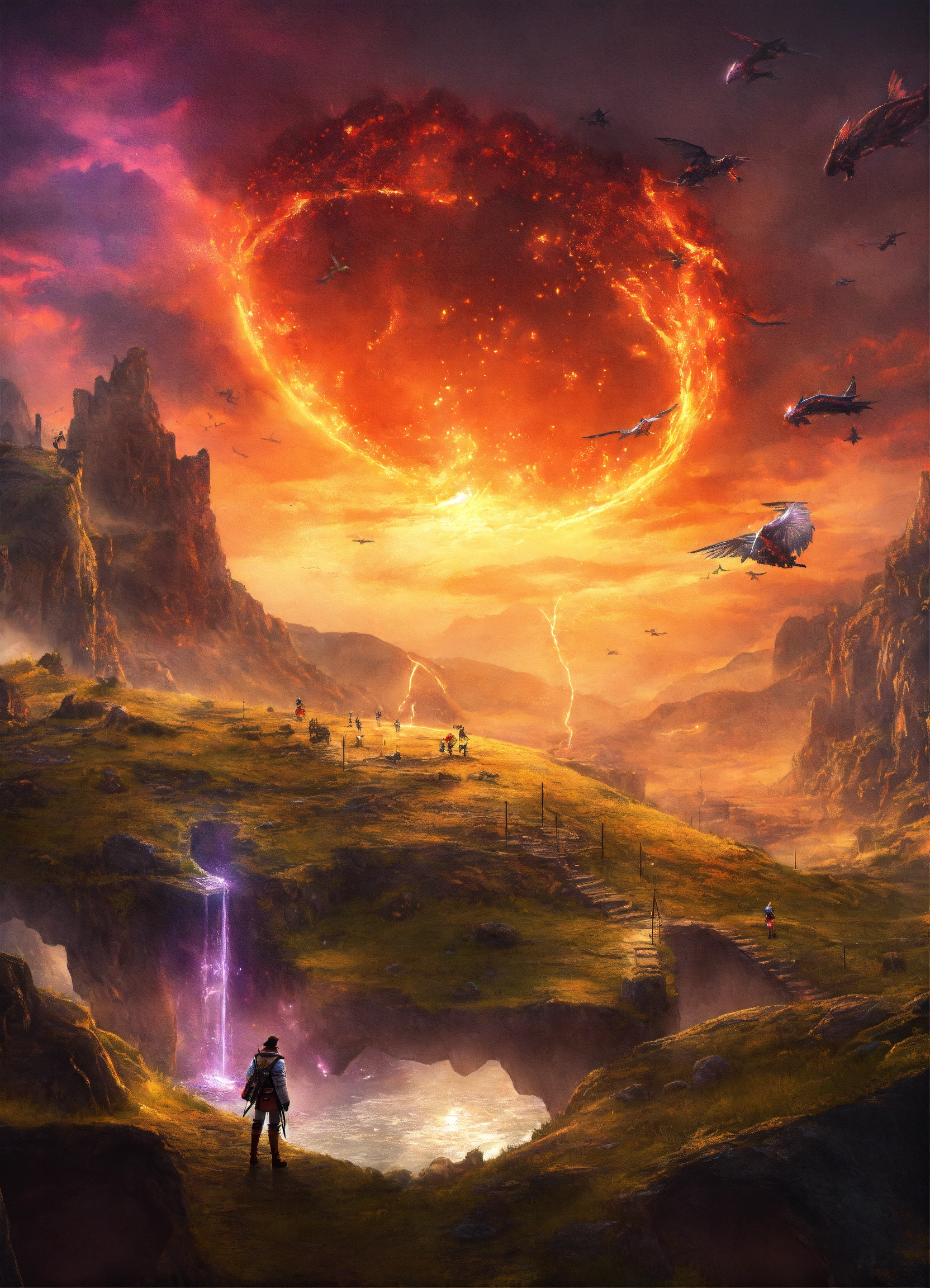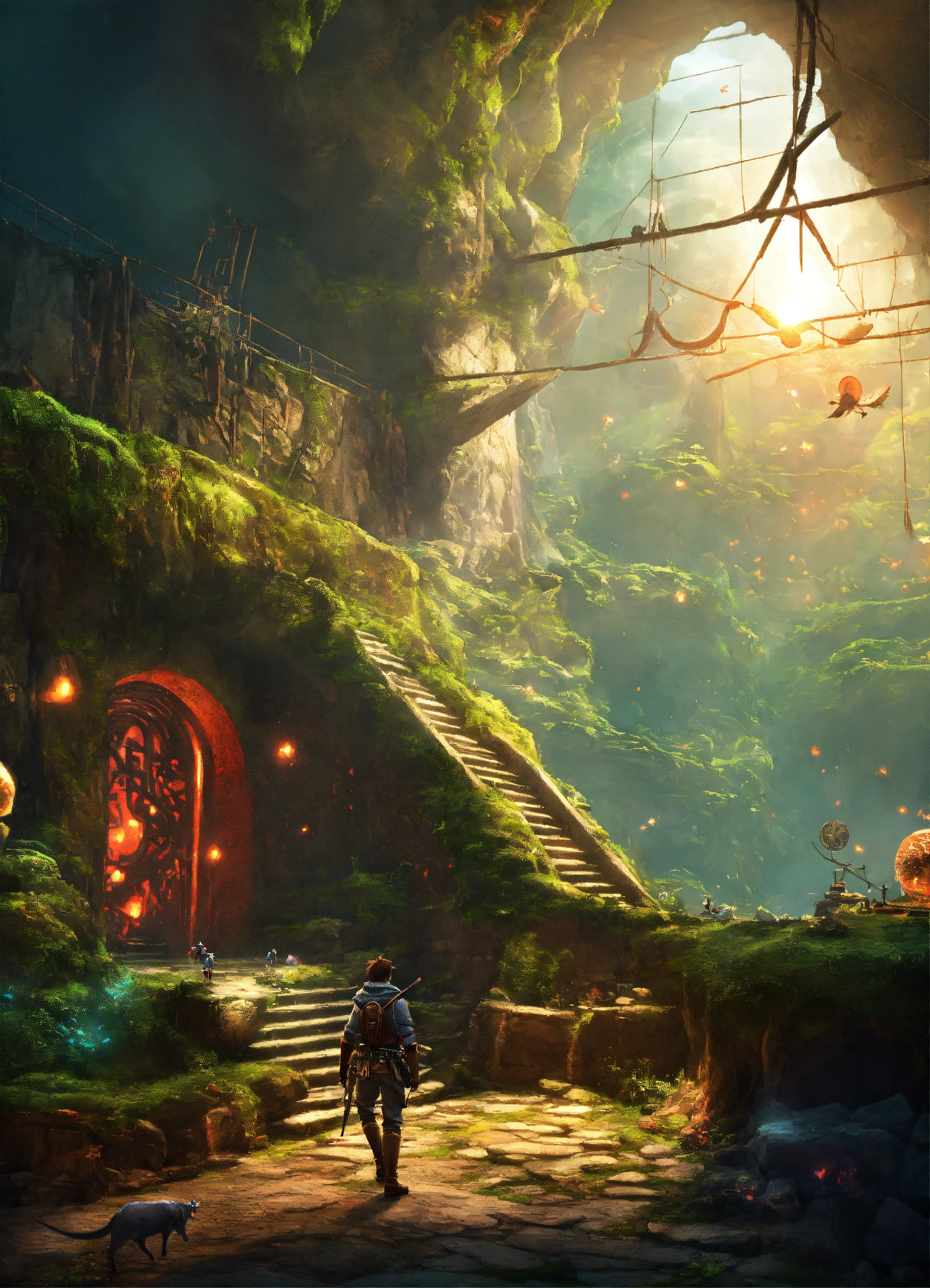 Epic fantasy revolution in an underground bunker with magical creatures in the virtual landscape
