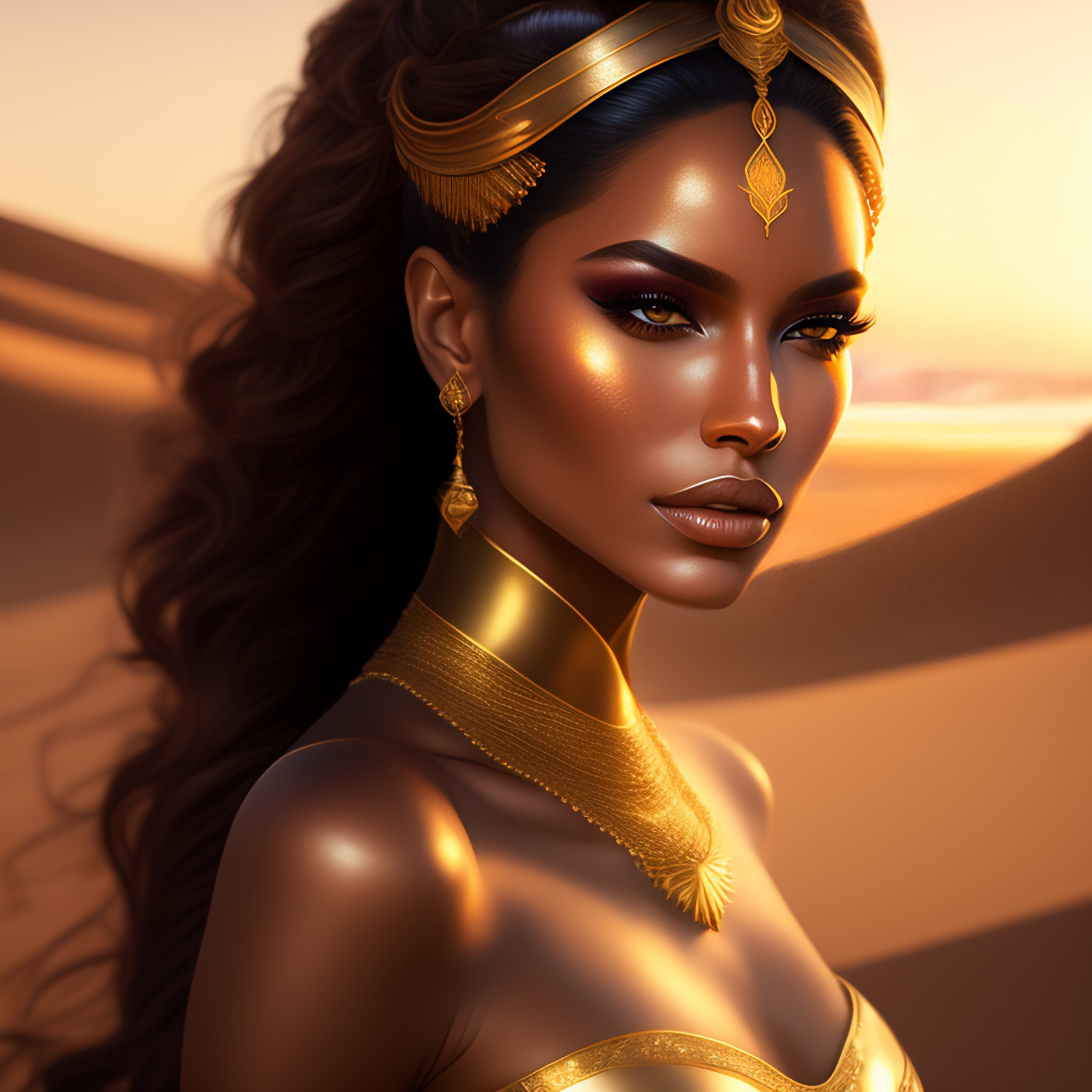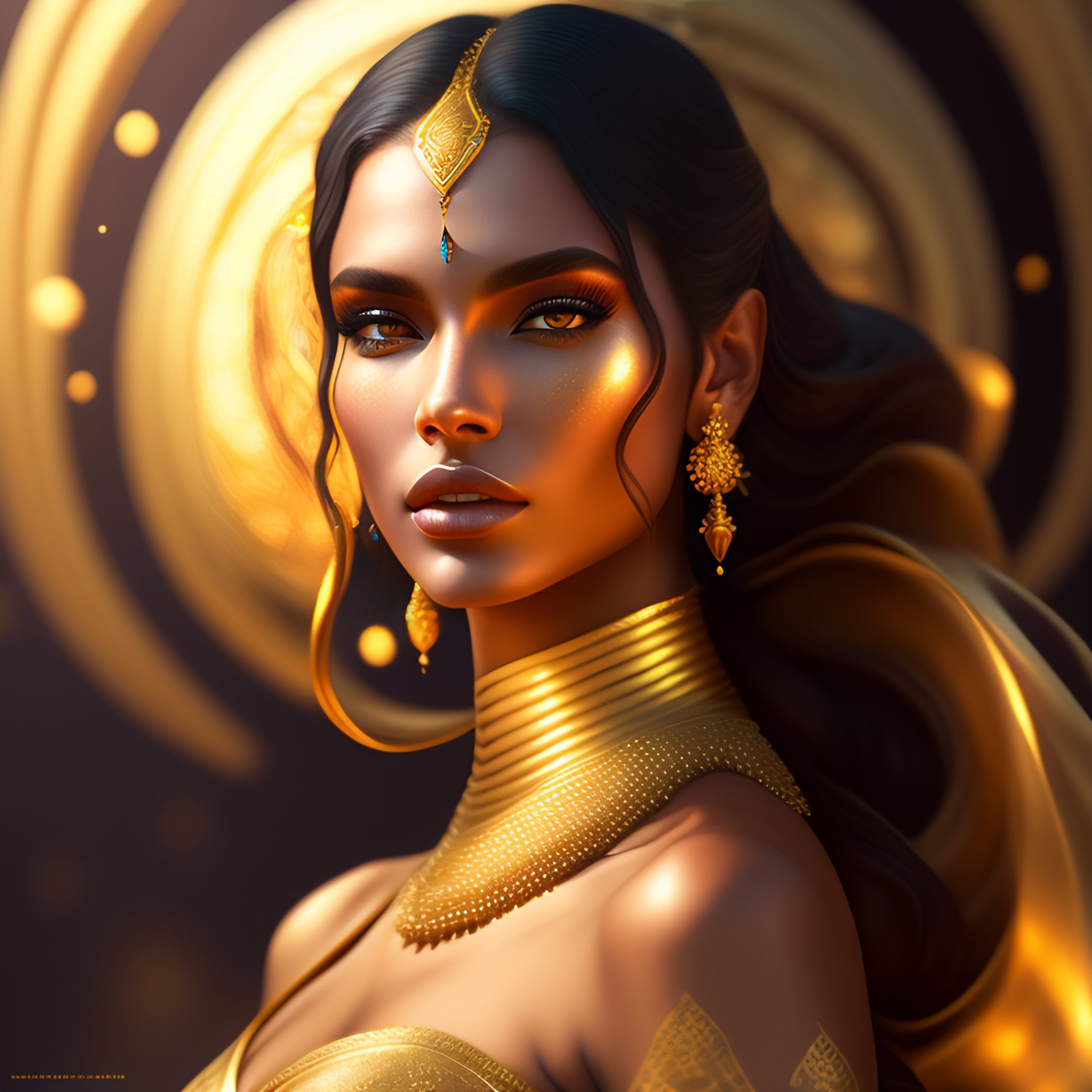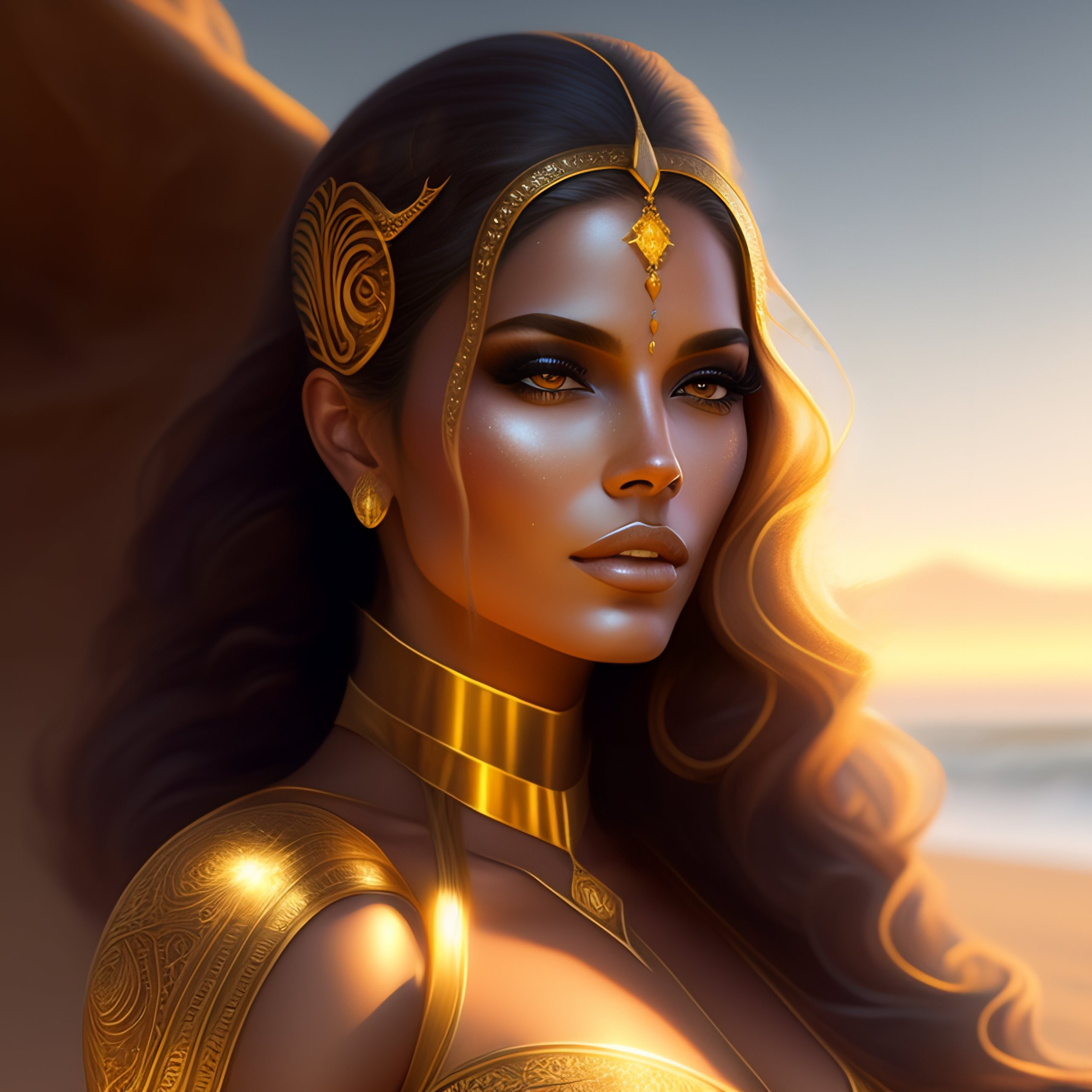 A beautiful cinematic female sand goddess, golden dress, glow golden tatto, galatic shamen with quantum energy fantasy, fantasy magic, undercut hairstyle, dark light night, intricate, elegant, sharp focus, illustration, highly detailed, digital painting, concept art, matte, art by wlop and artgerm and greg rutkowski and alphonse mucha, masterpiece