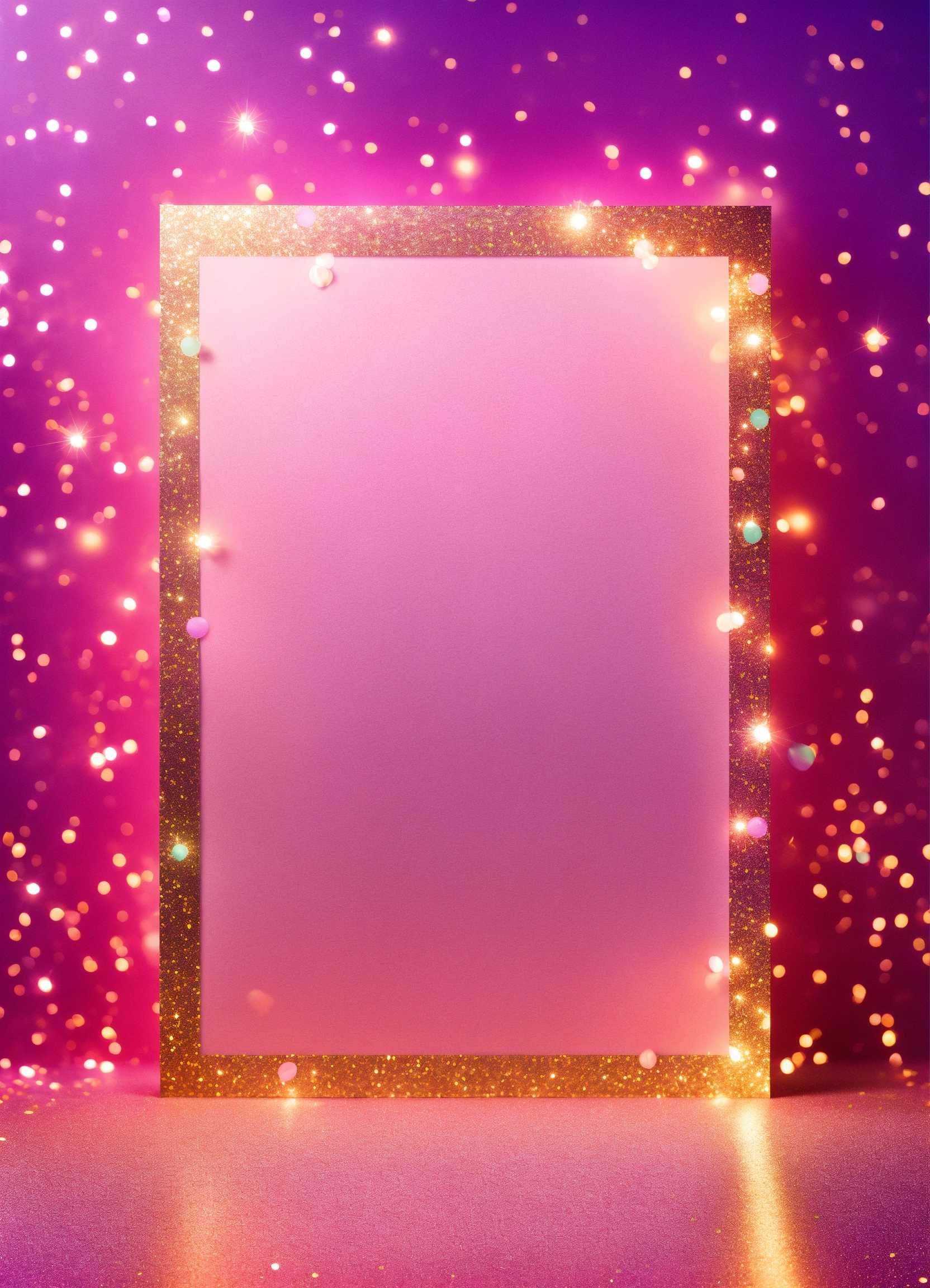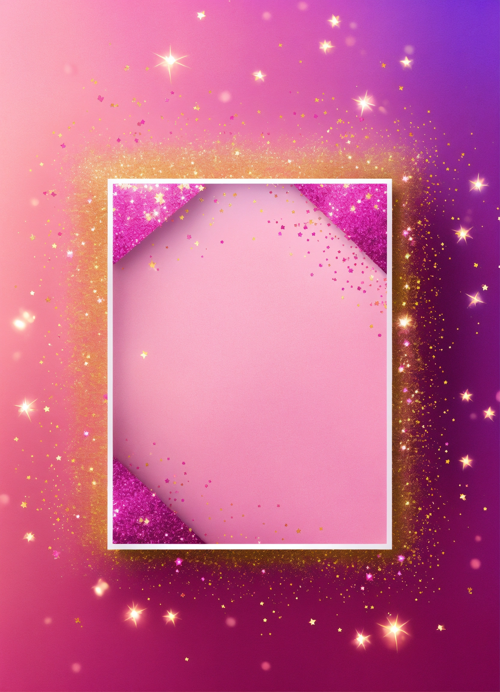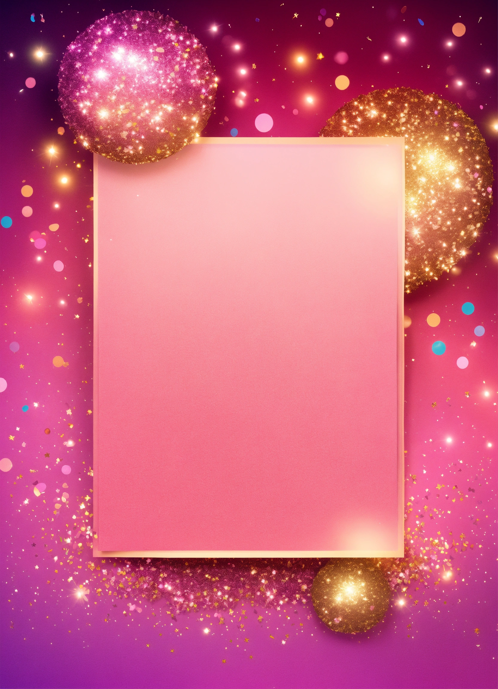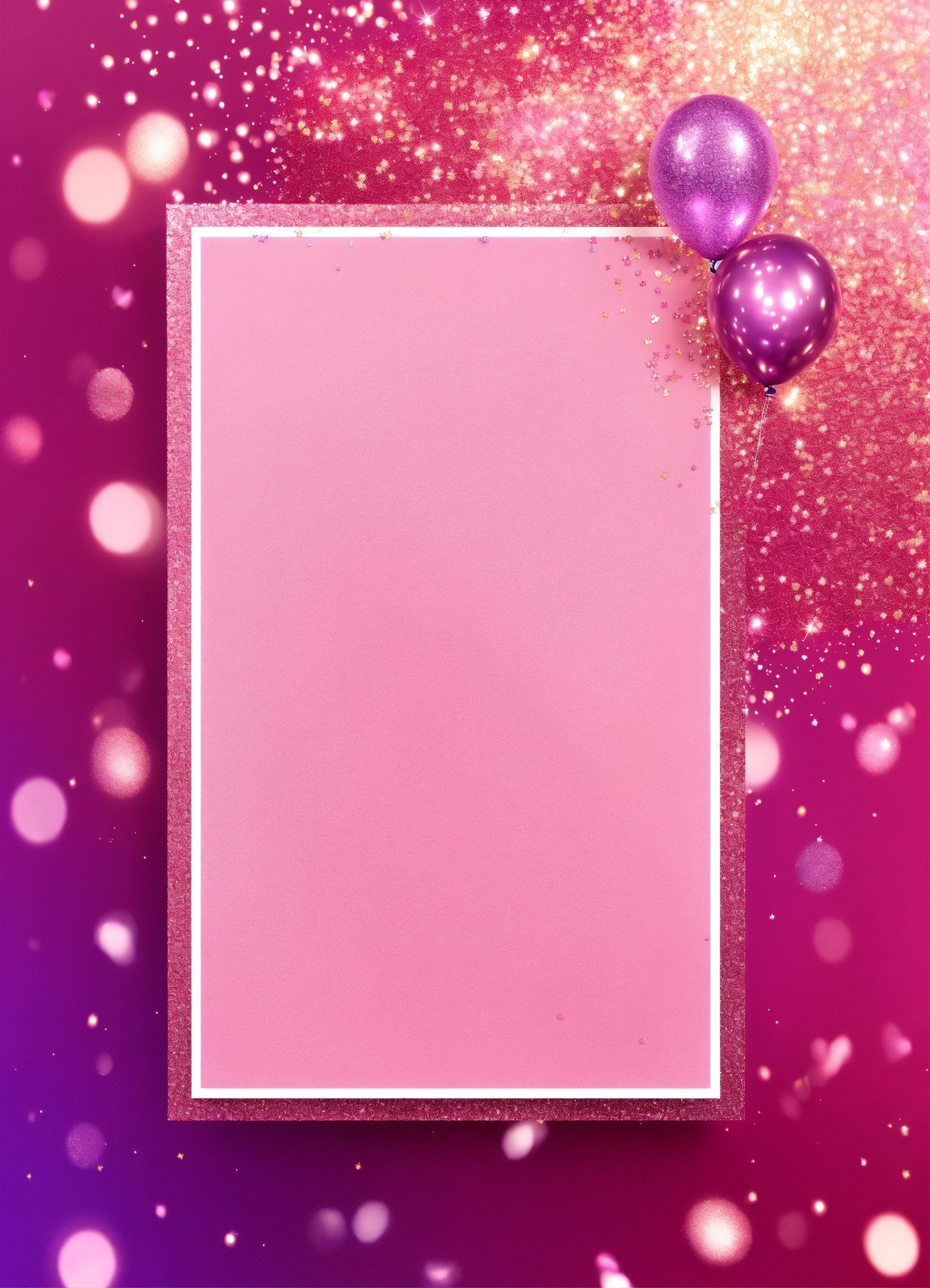 Create a cute fun birthday blank banner to add information to a birthday card template pastel pink and purple gradient background wallpaper with glitter and glittery decoration. vibrantly shining colors, amazing lights