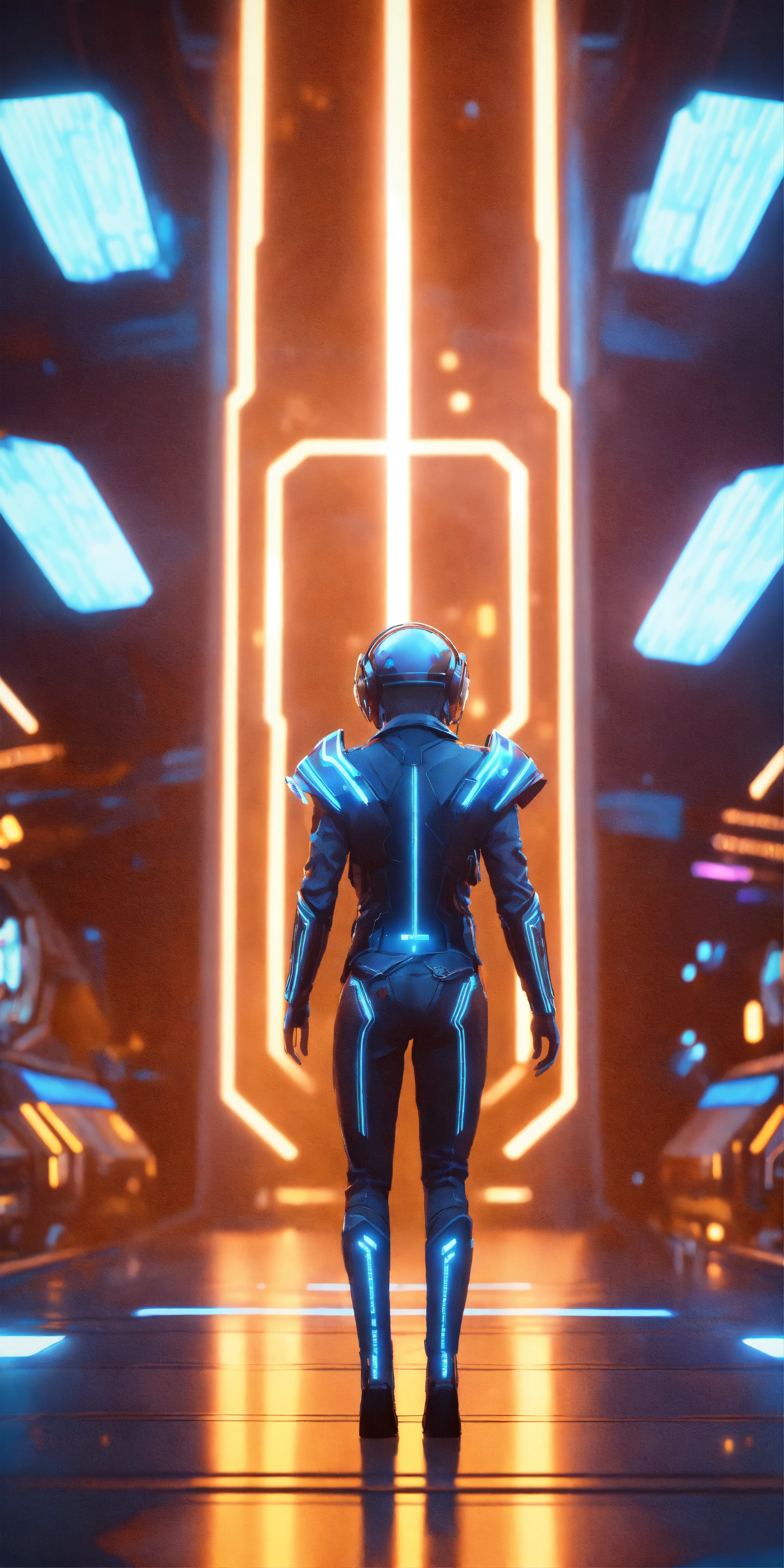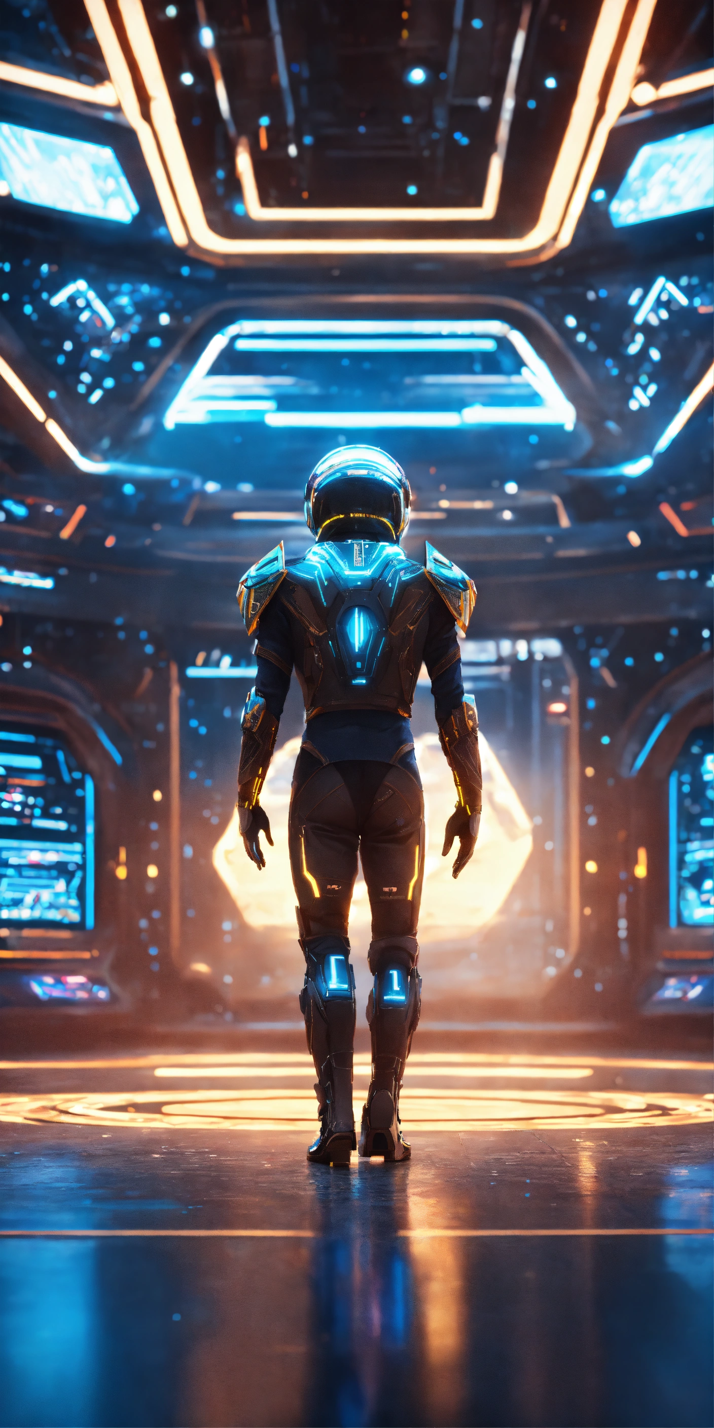 Zoom out of a wise fuzzy alien dancing wearing star federation general unirorm rank markings, in a open space, hi tech mothership, realistic, futuristic, sci-fi, tron, 8k