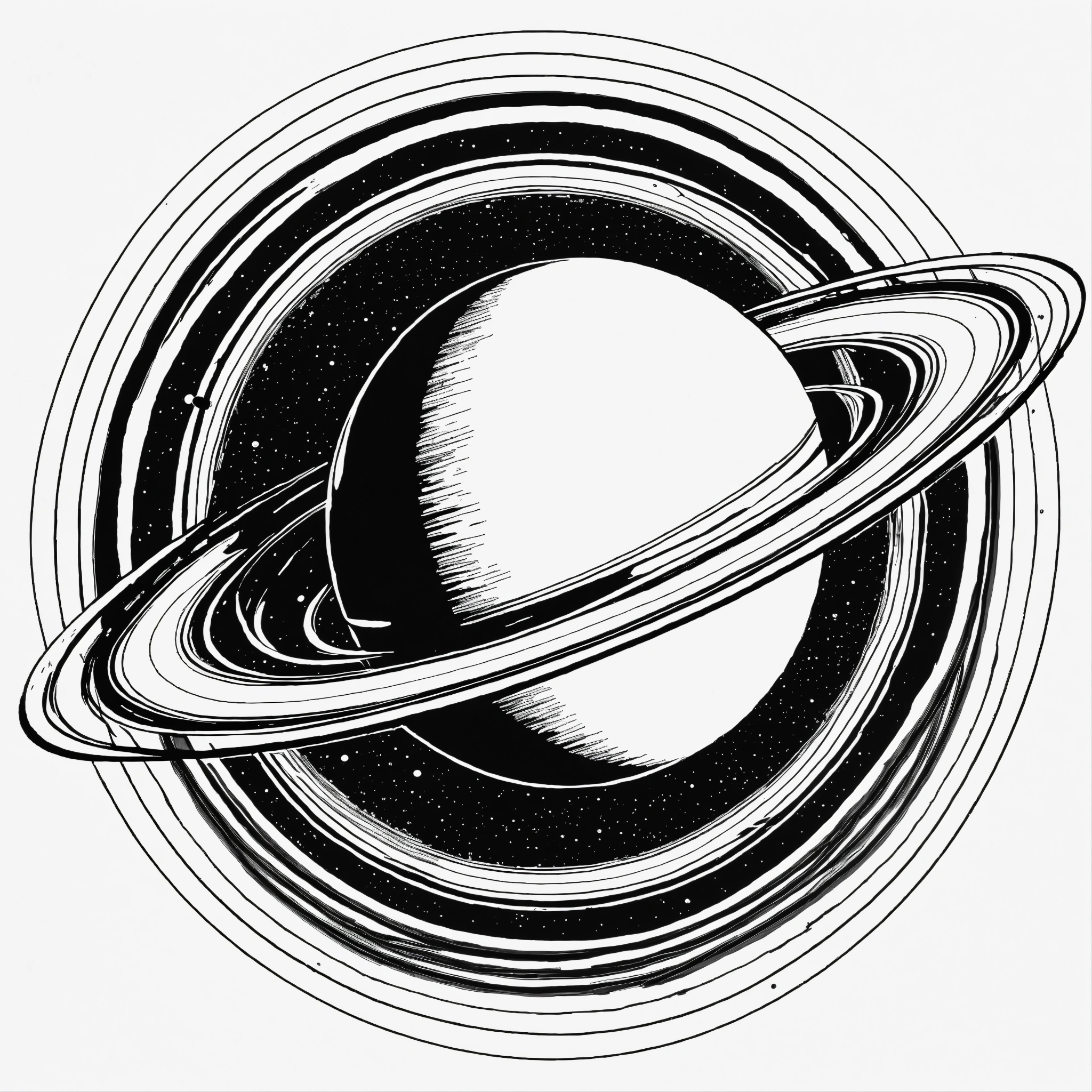 Create a sketch of a black and white planet saturn with angled rings in a minimal and lineal style. the tattoo should be simple, with clean lines and minimal detail. the sketch should be done in pen or pencil on a blank sheet of paper. plain background. transparent background.