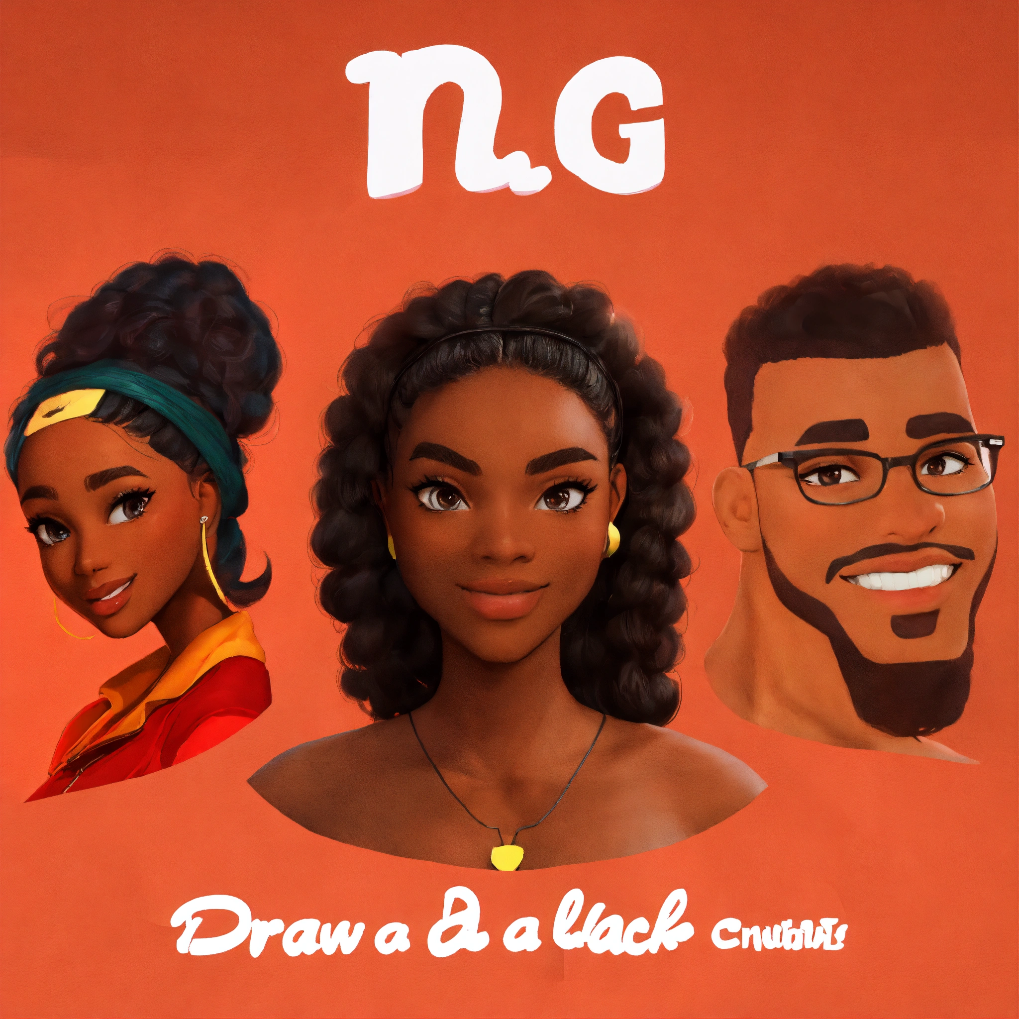 Draw as a black cartoon characters