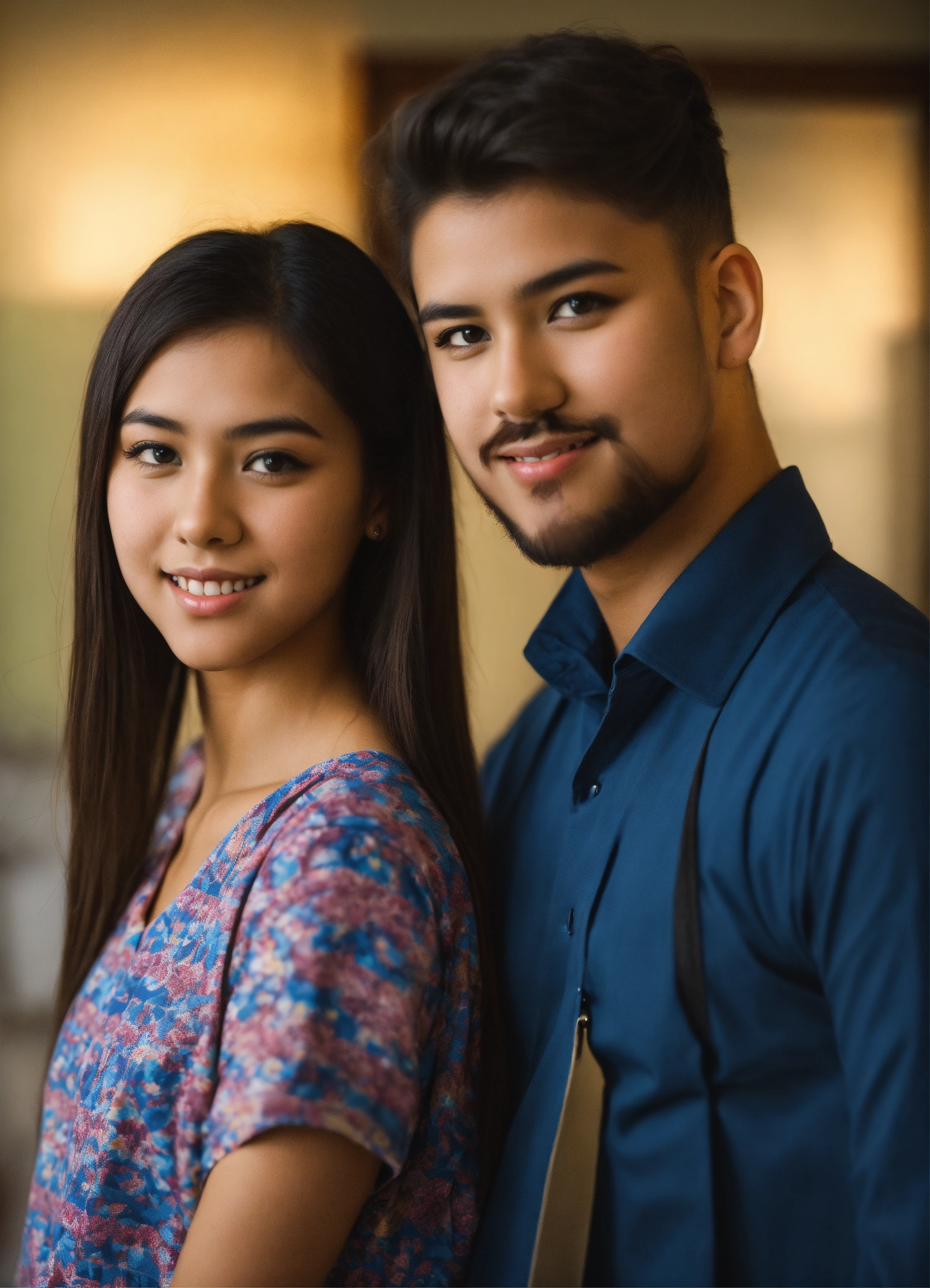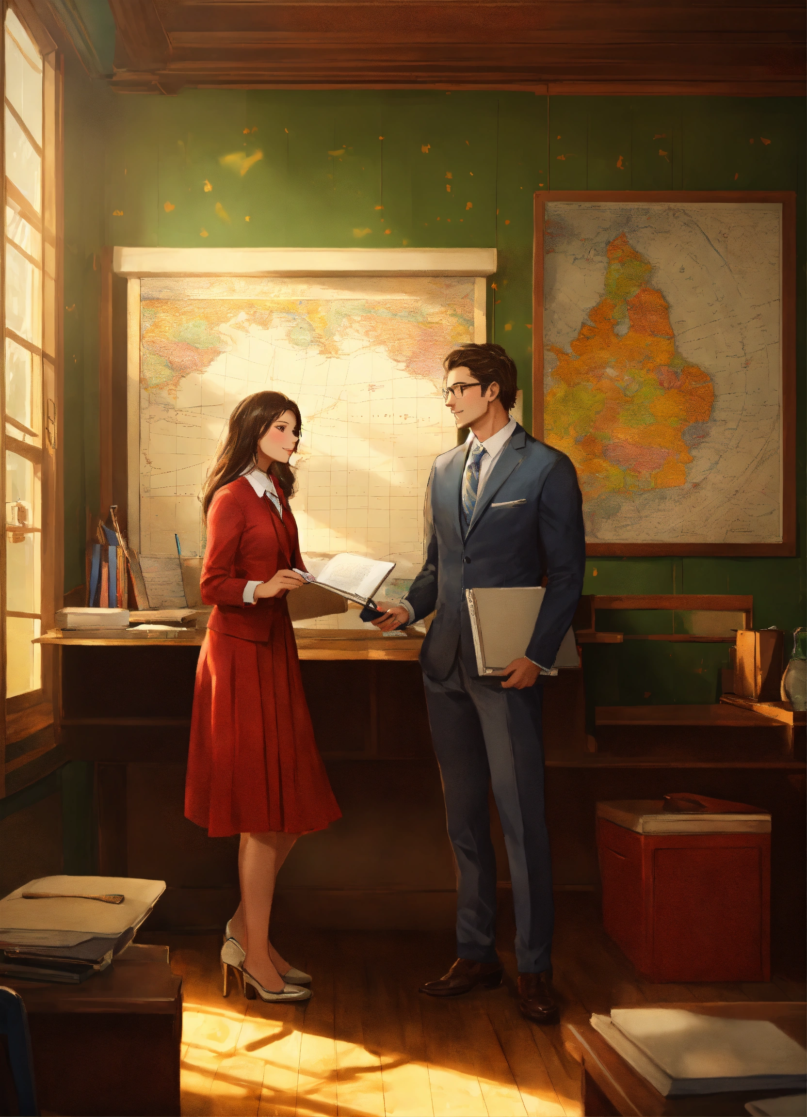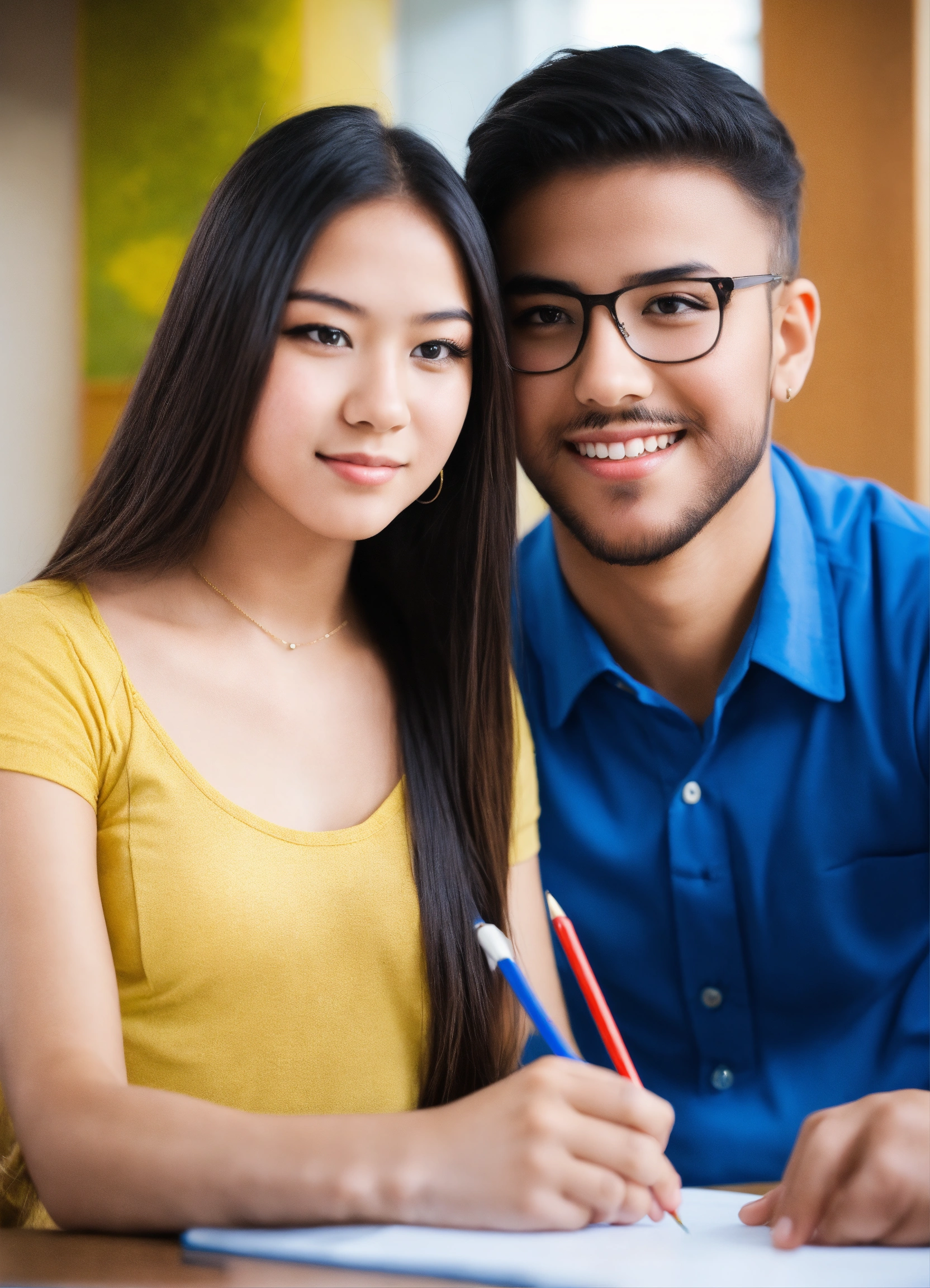 A beautiful young student with handsome teacher