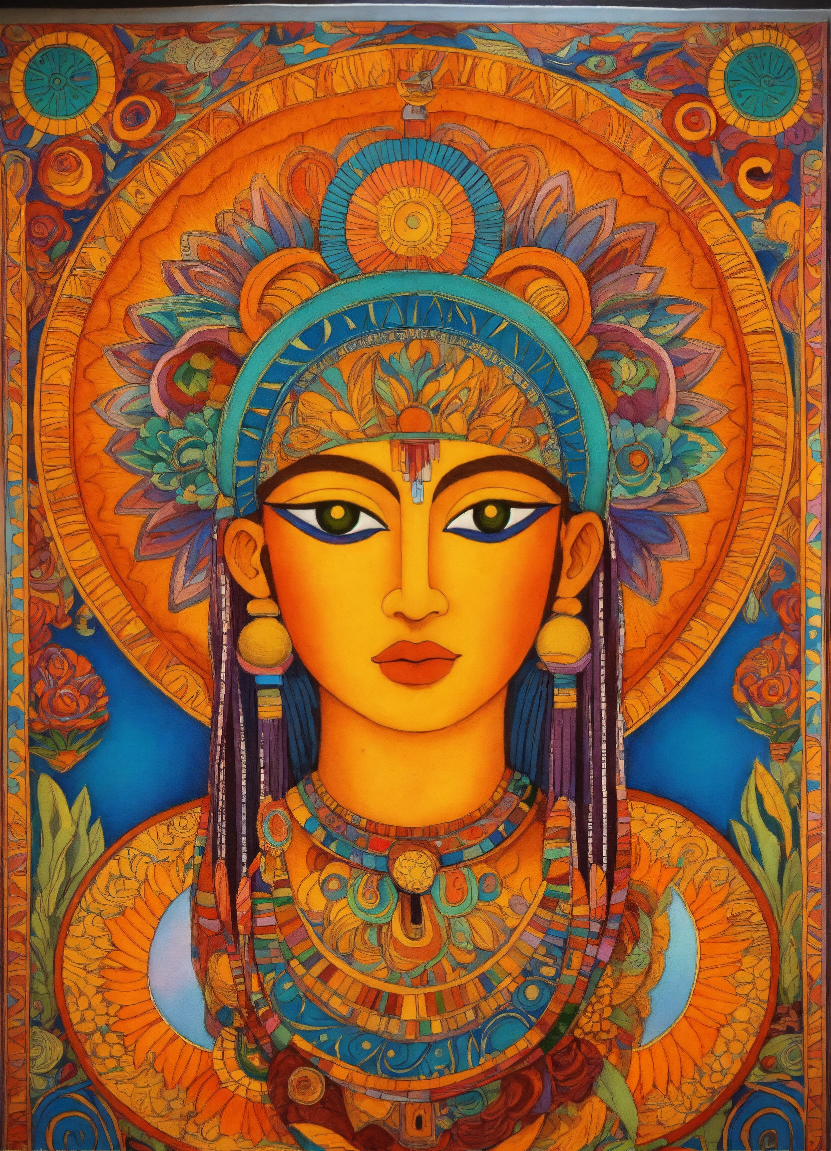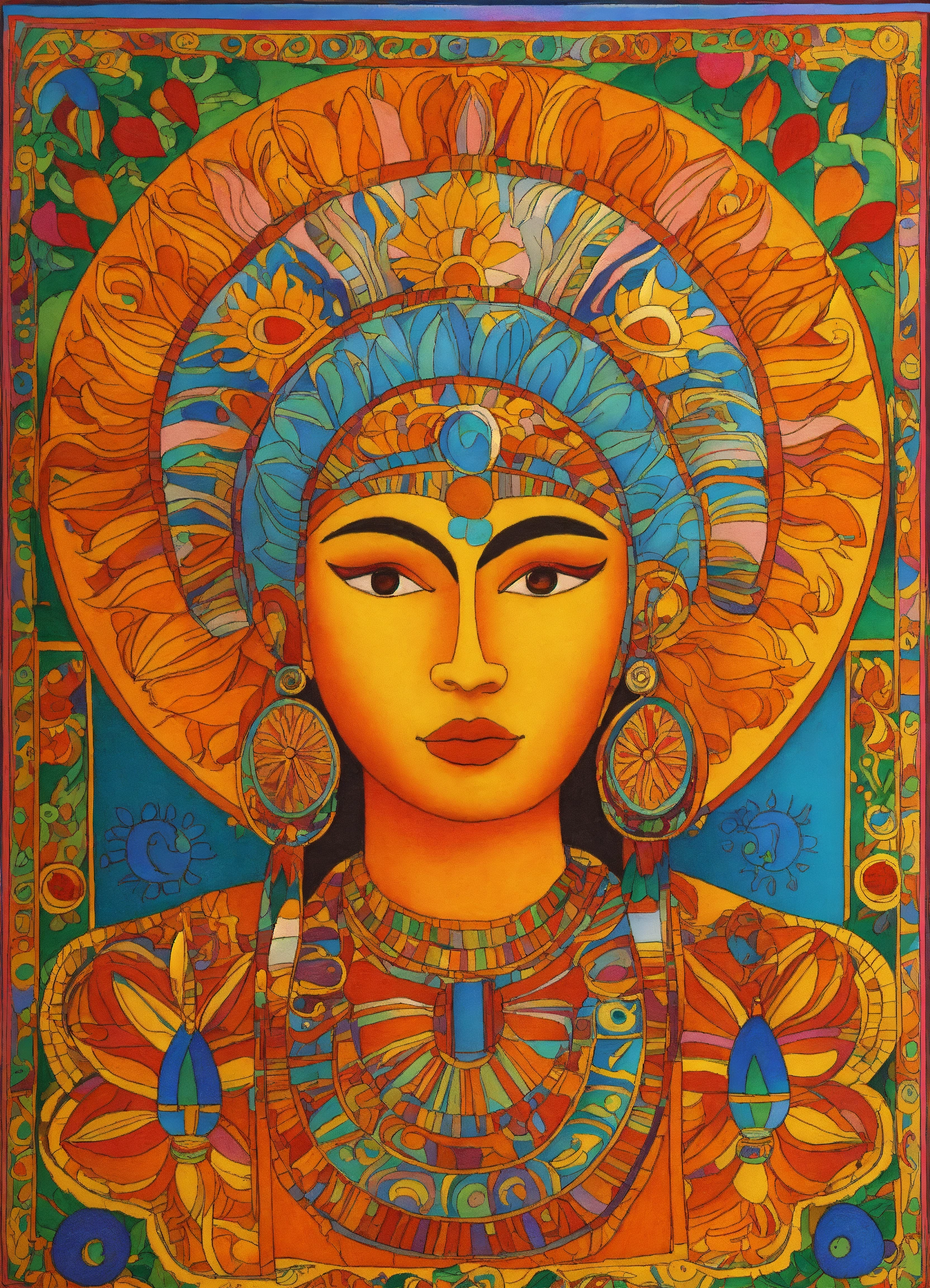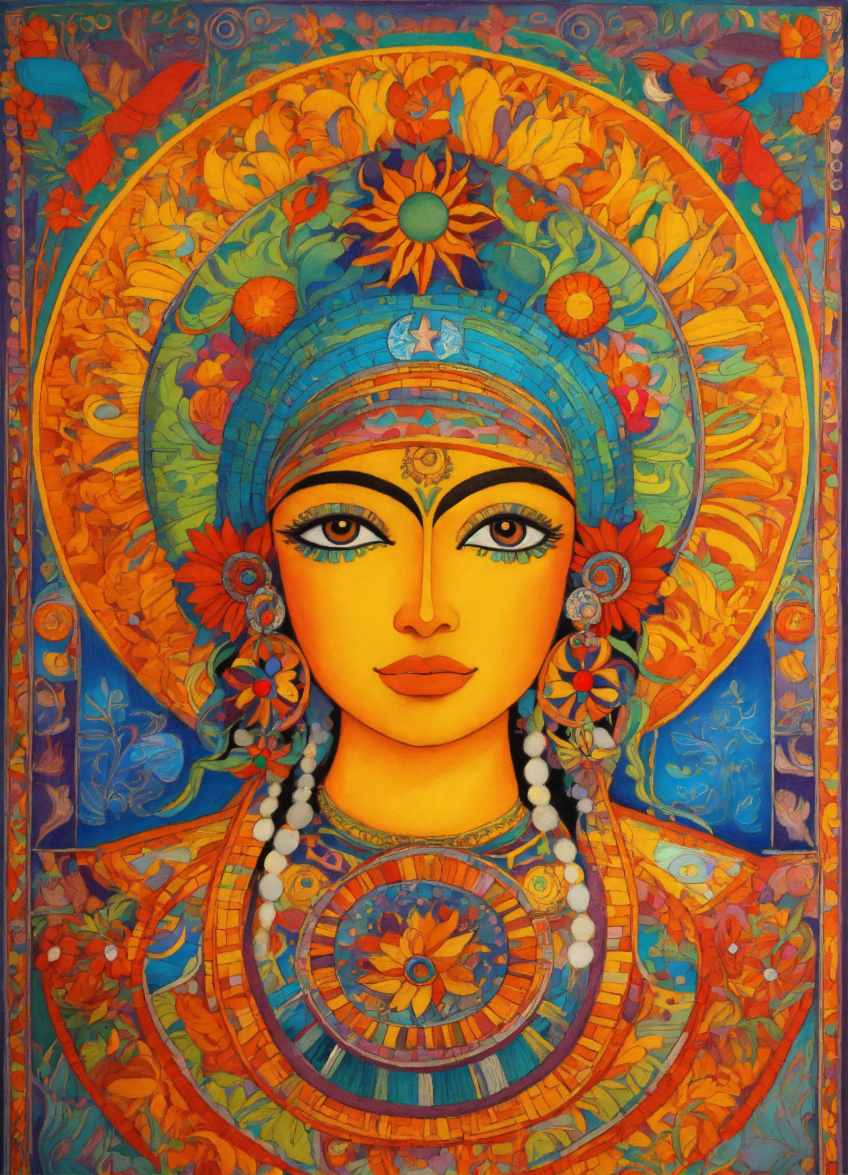 Mexican folk art art drawing the spirit of the sun and the moon. crystal clear, line drawing, clean clear lines, coloring book style, bright colors, intricate details, mexican patterns elements and symbols, elegant, magical, serene, fine details, pastel pencils, winsor mccay style