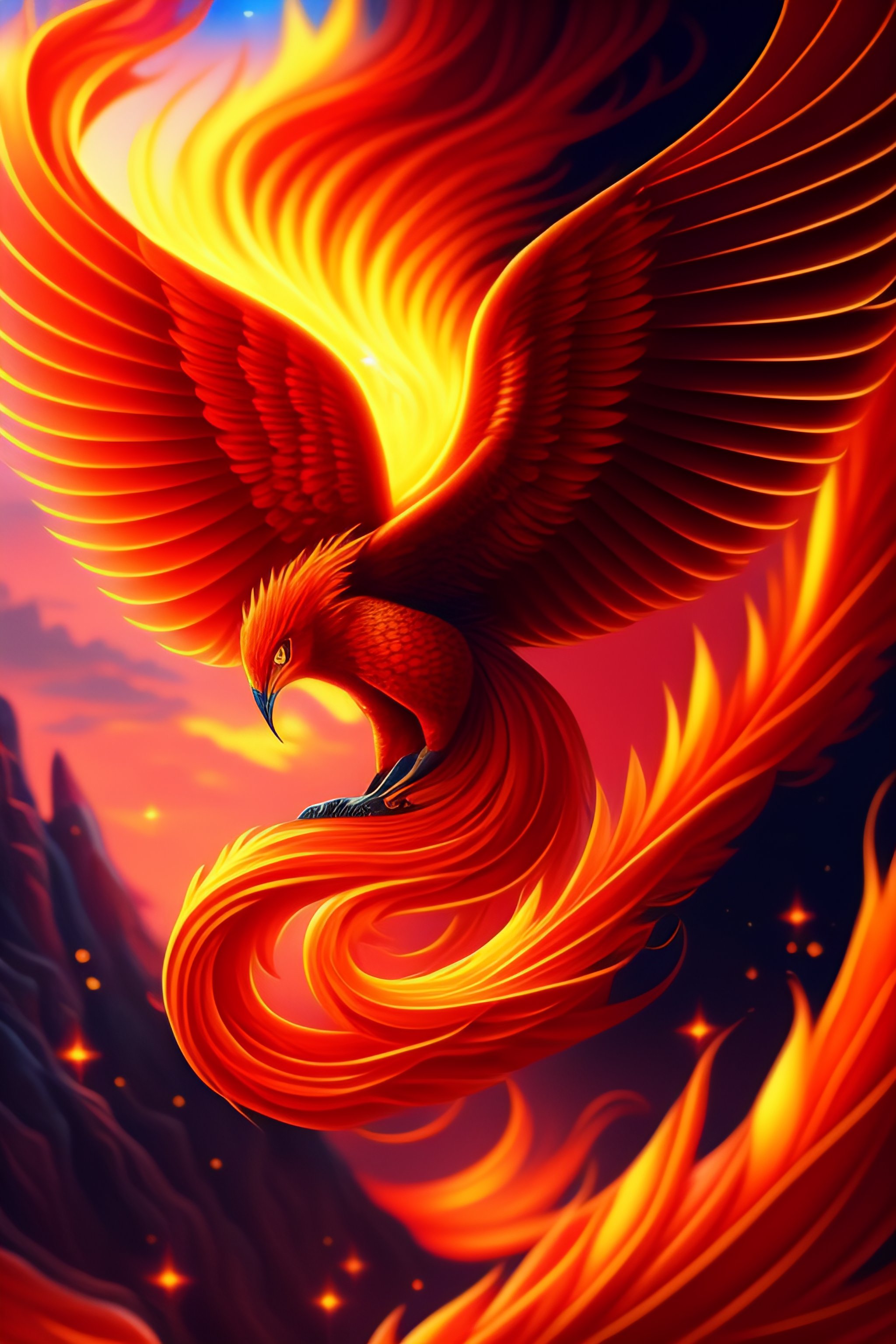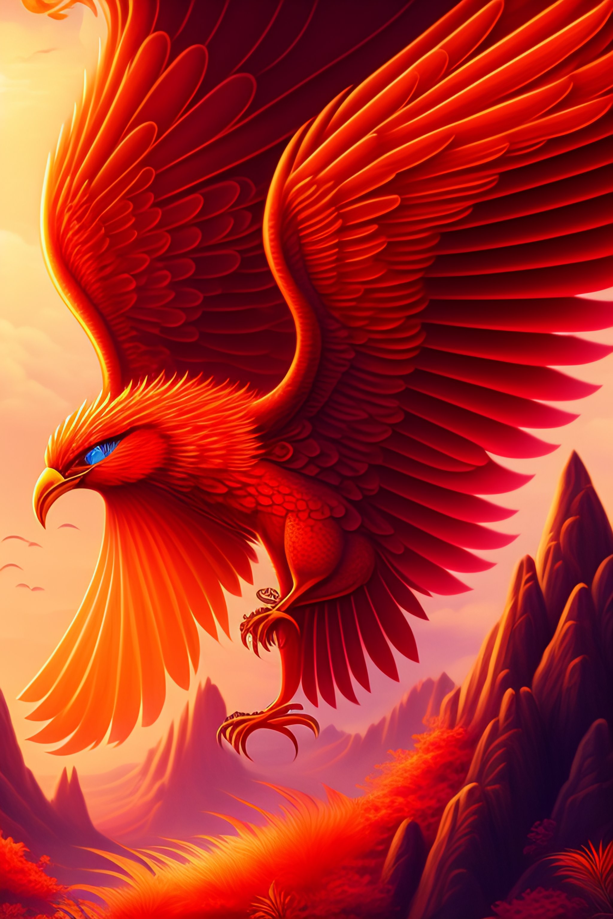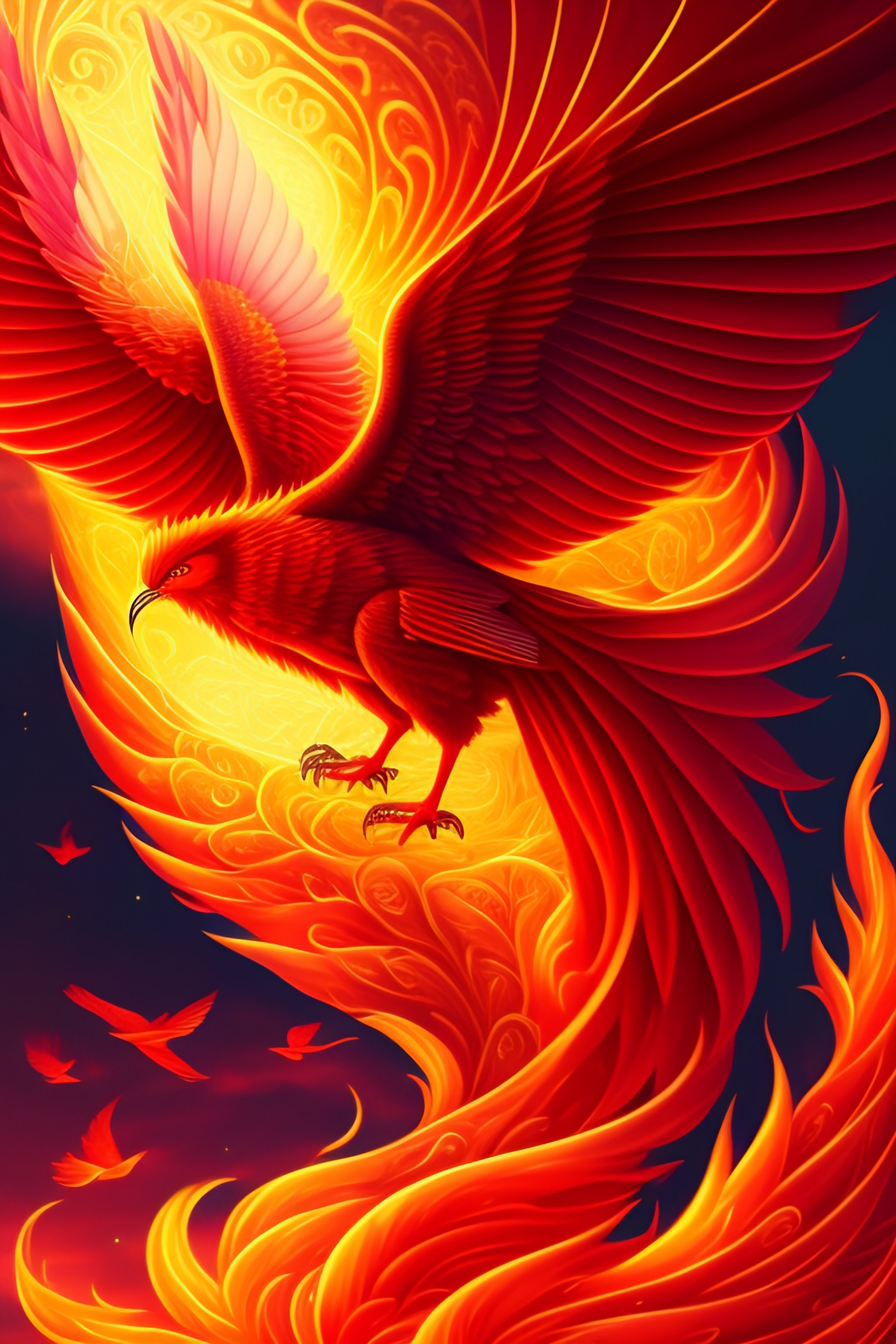 Red paper + an intricate phoenix depiction + elaborate golden illustration, very detailed, deviantart, 8 k vertical wallpaper, tropical, colorful, airy, anime illustration, anime nature