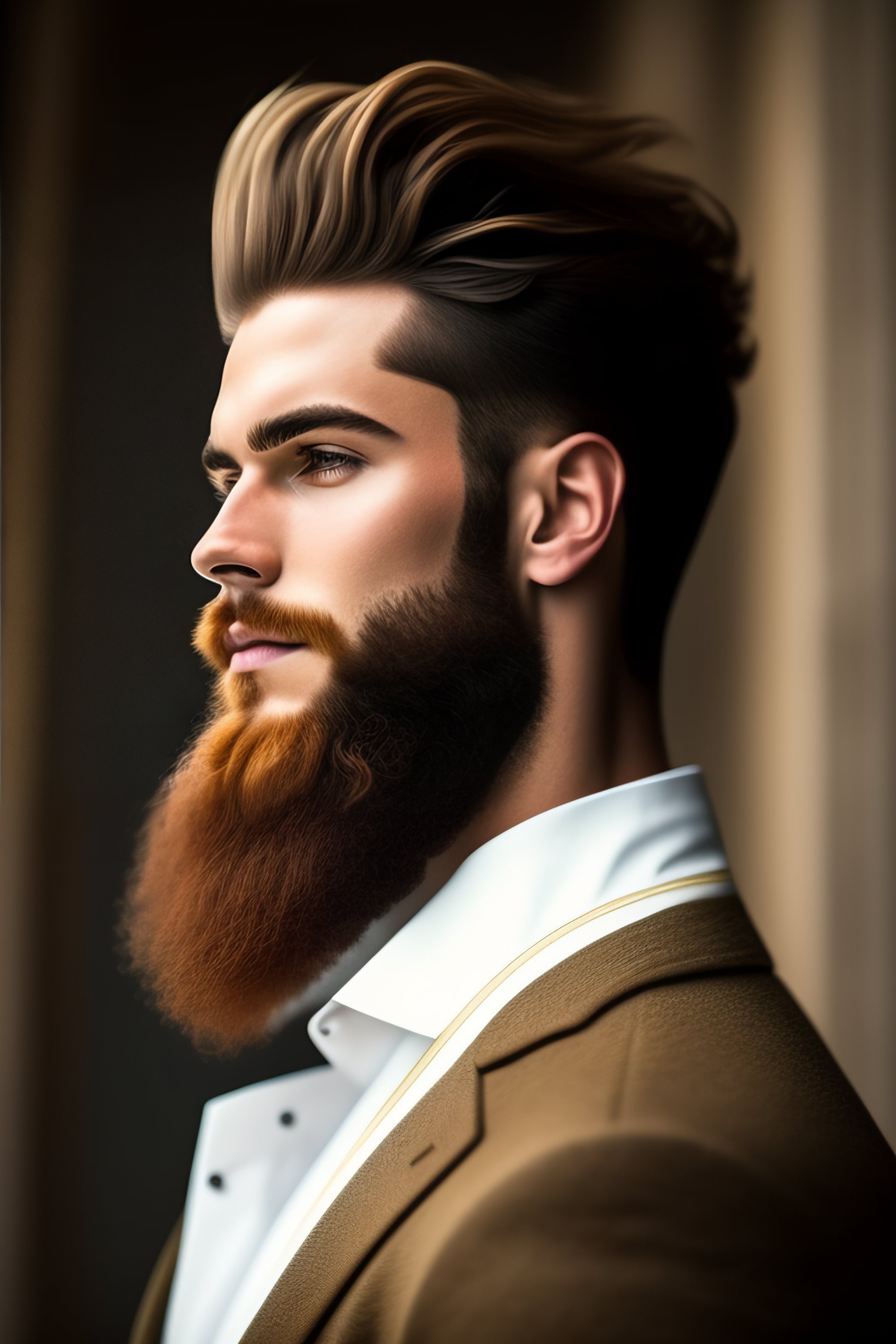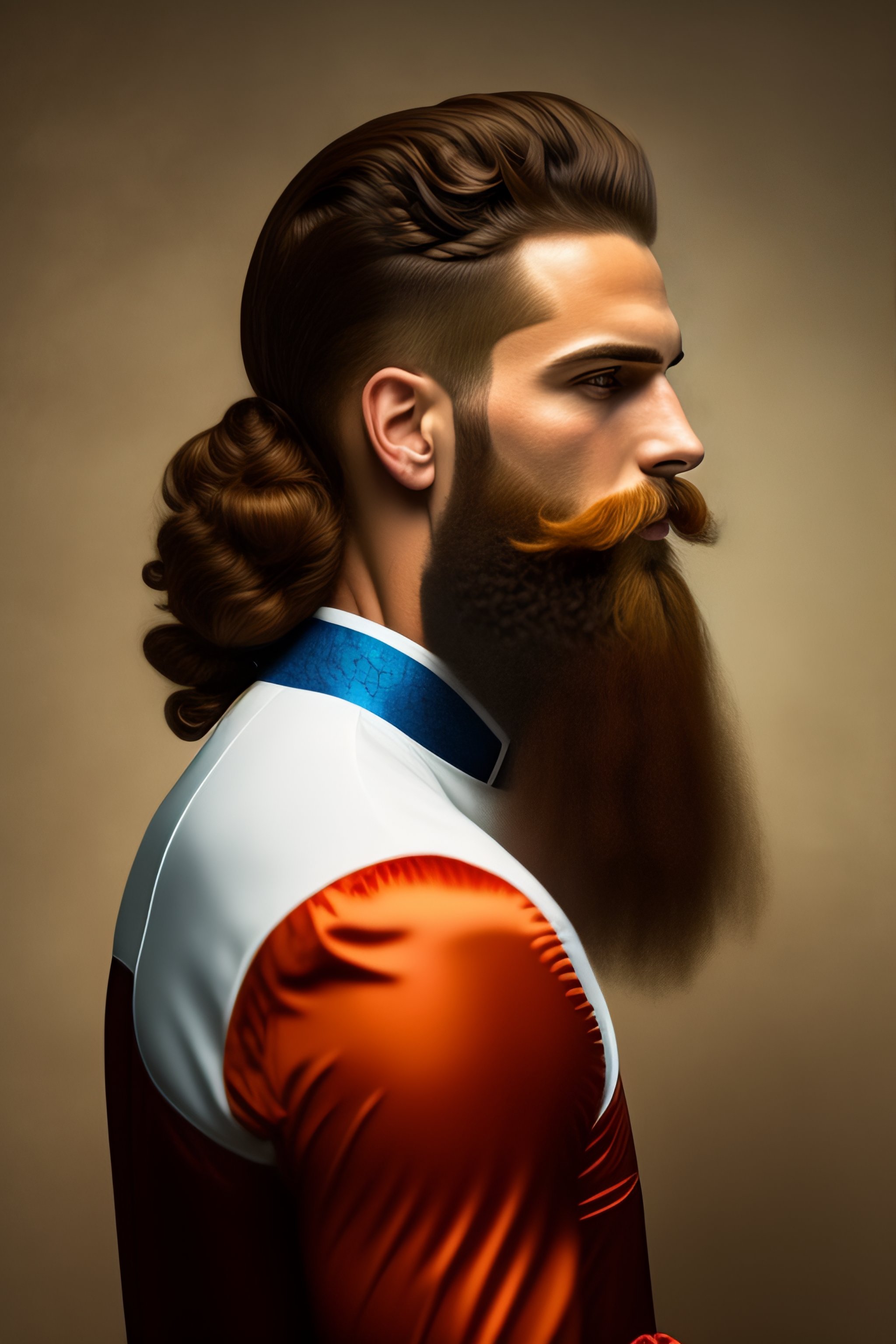 Un jeune homme roux avec une barbe courte et des cheveux long