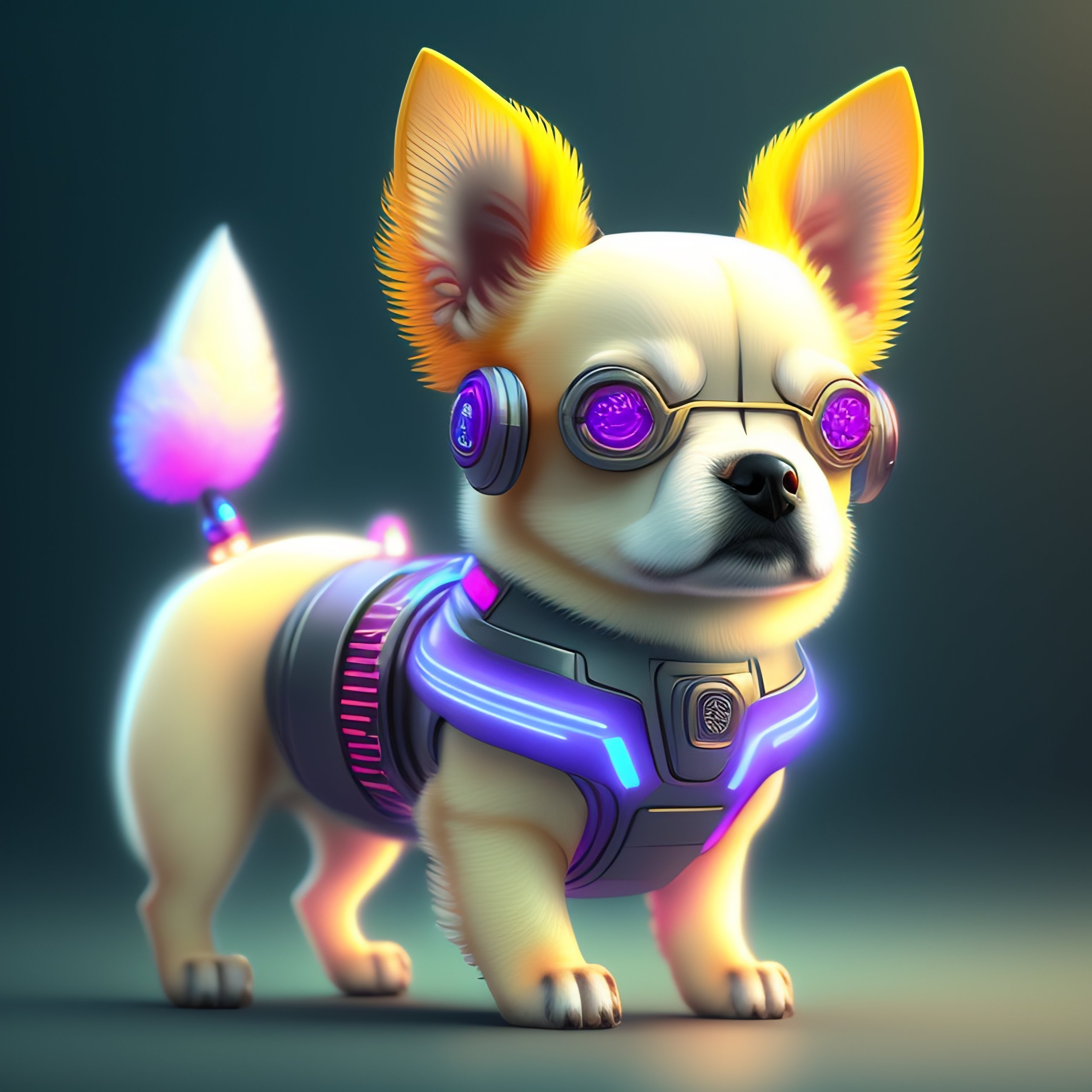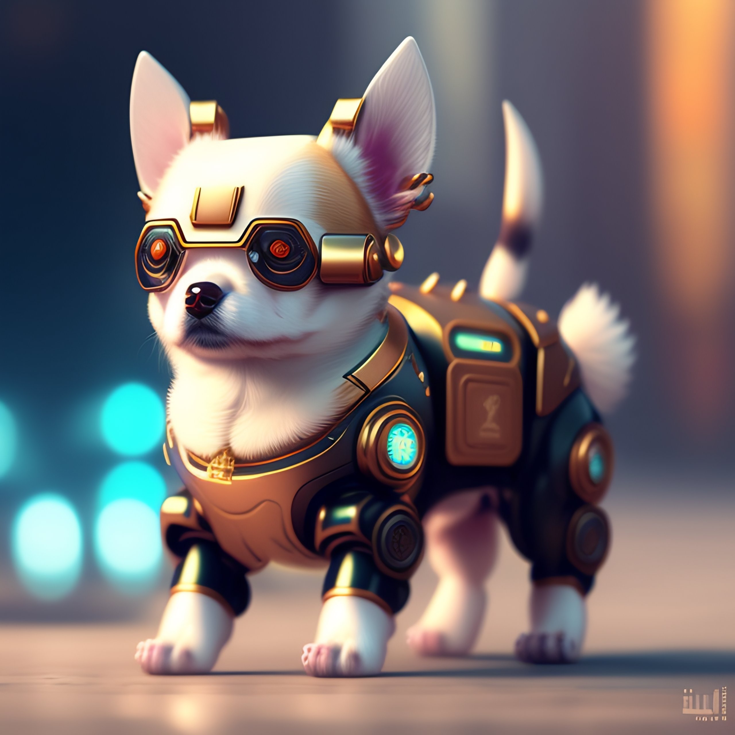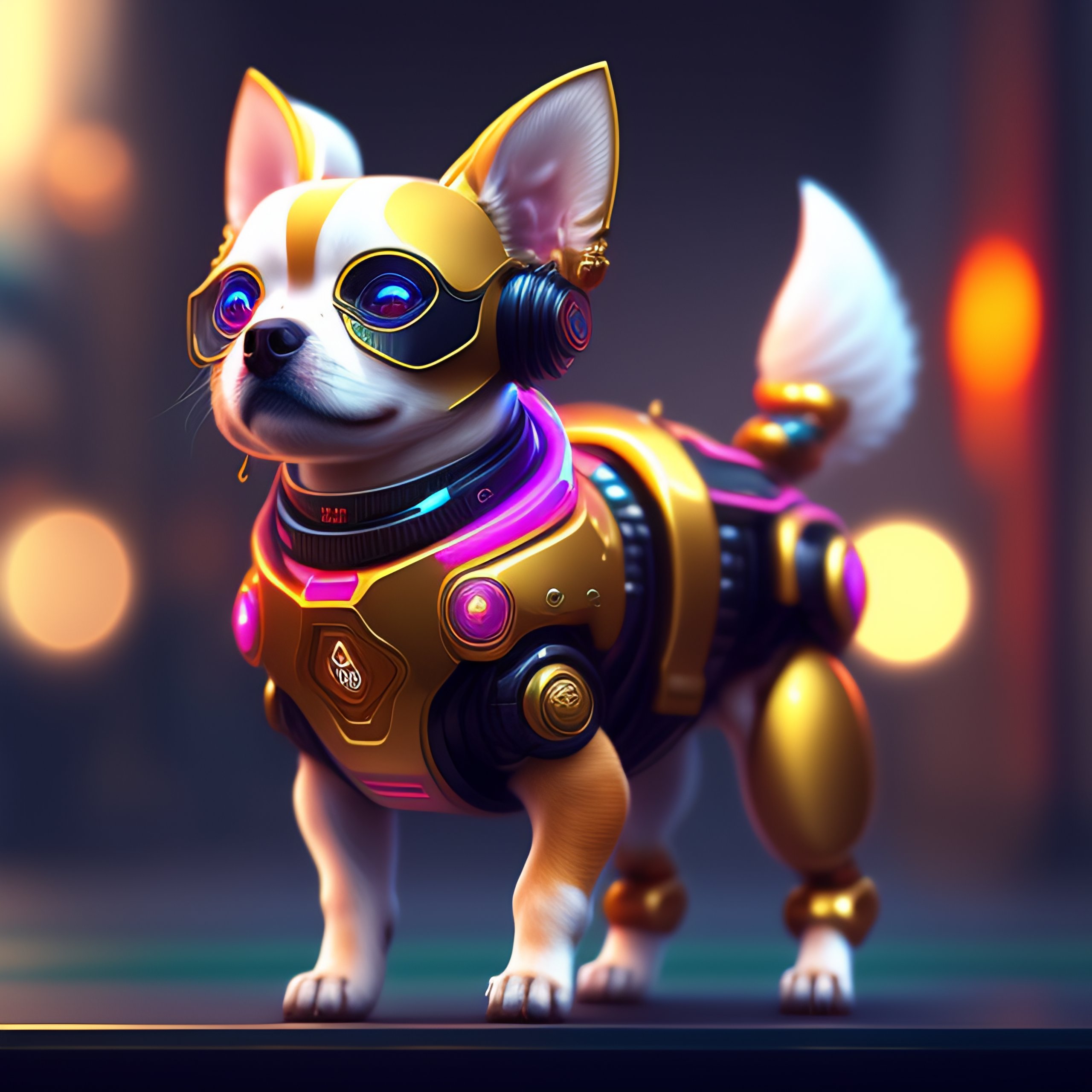 Cute and adorable robot cyberpunk chihua dog, fantasy, dreamlike, surrealism, super cute, trending on artstation